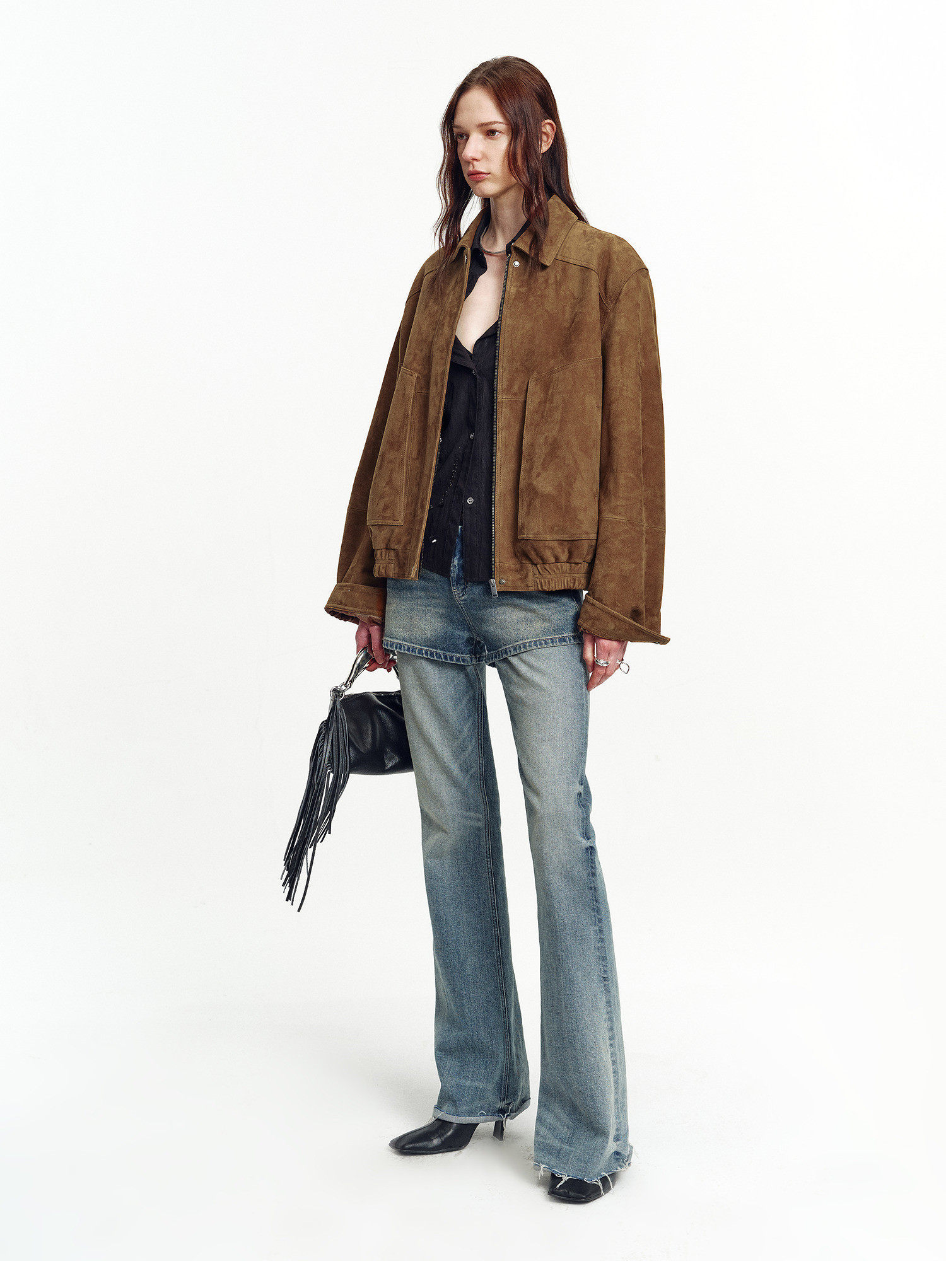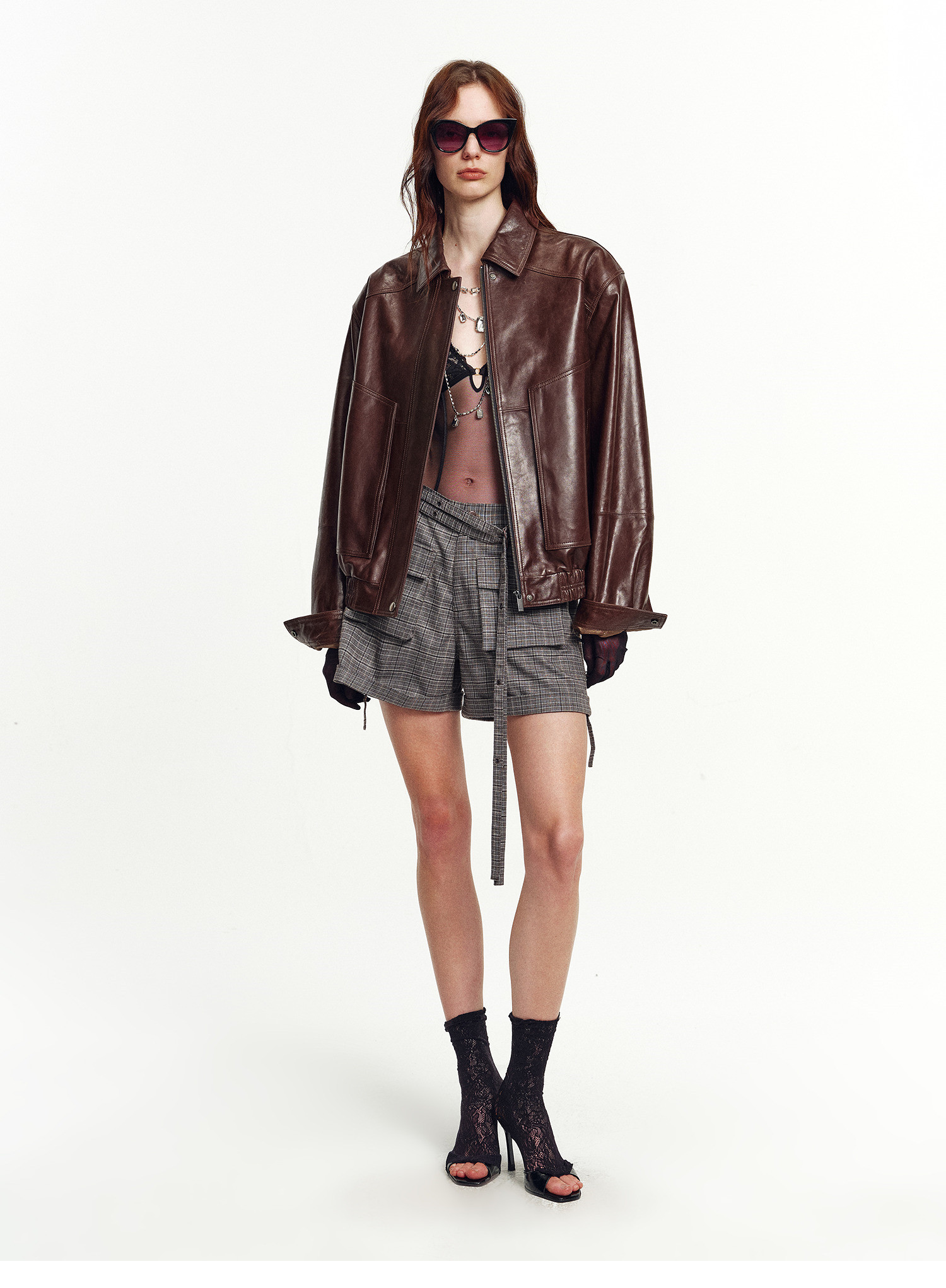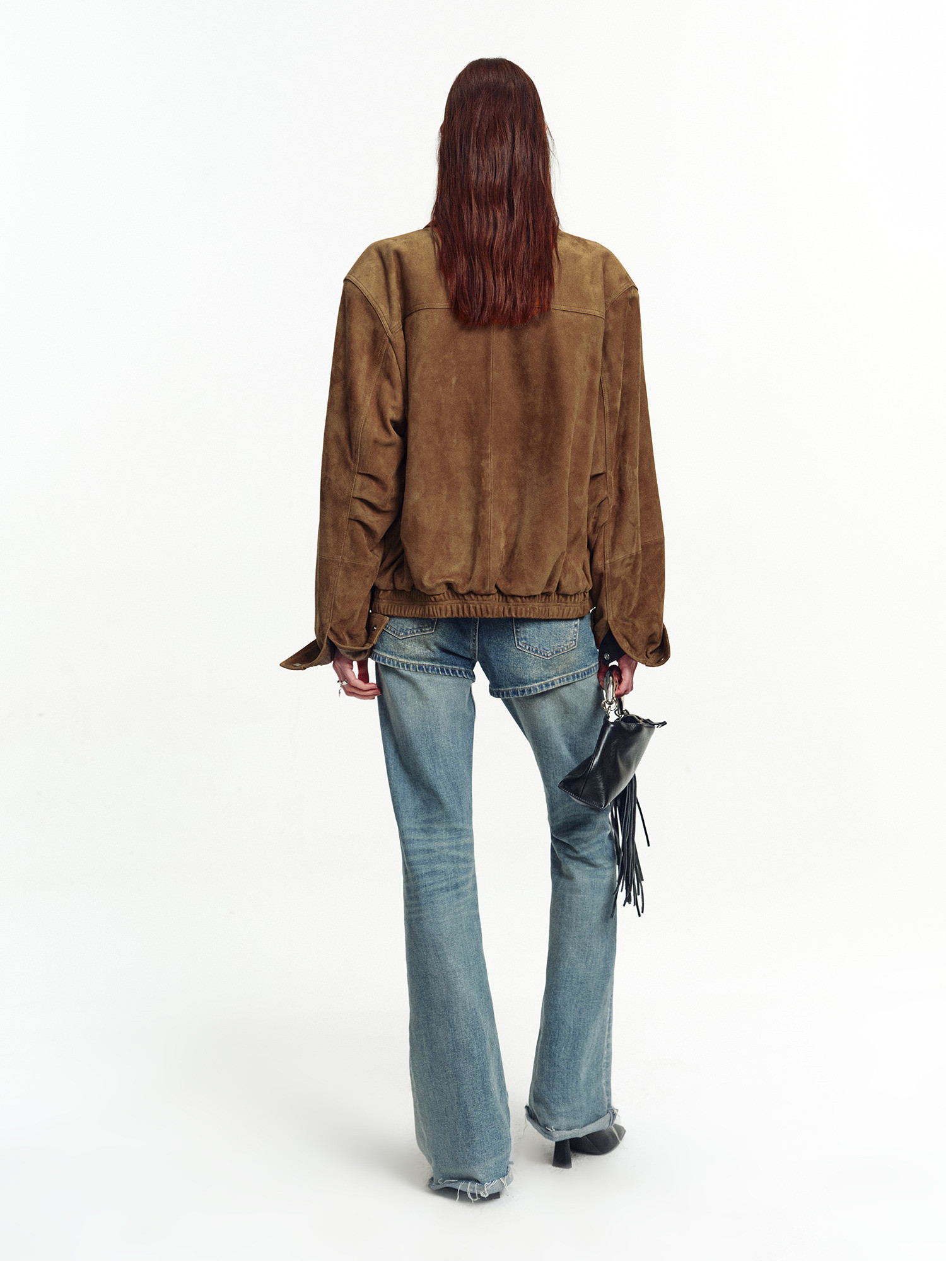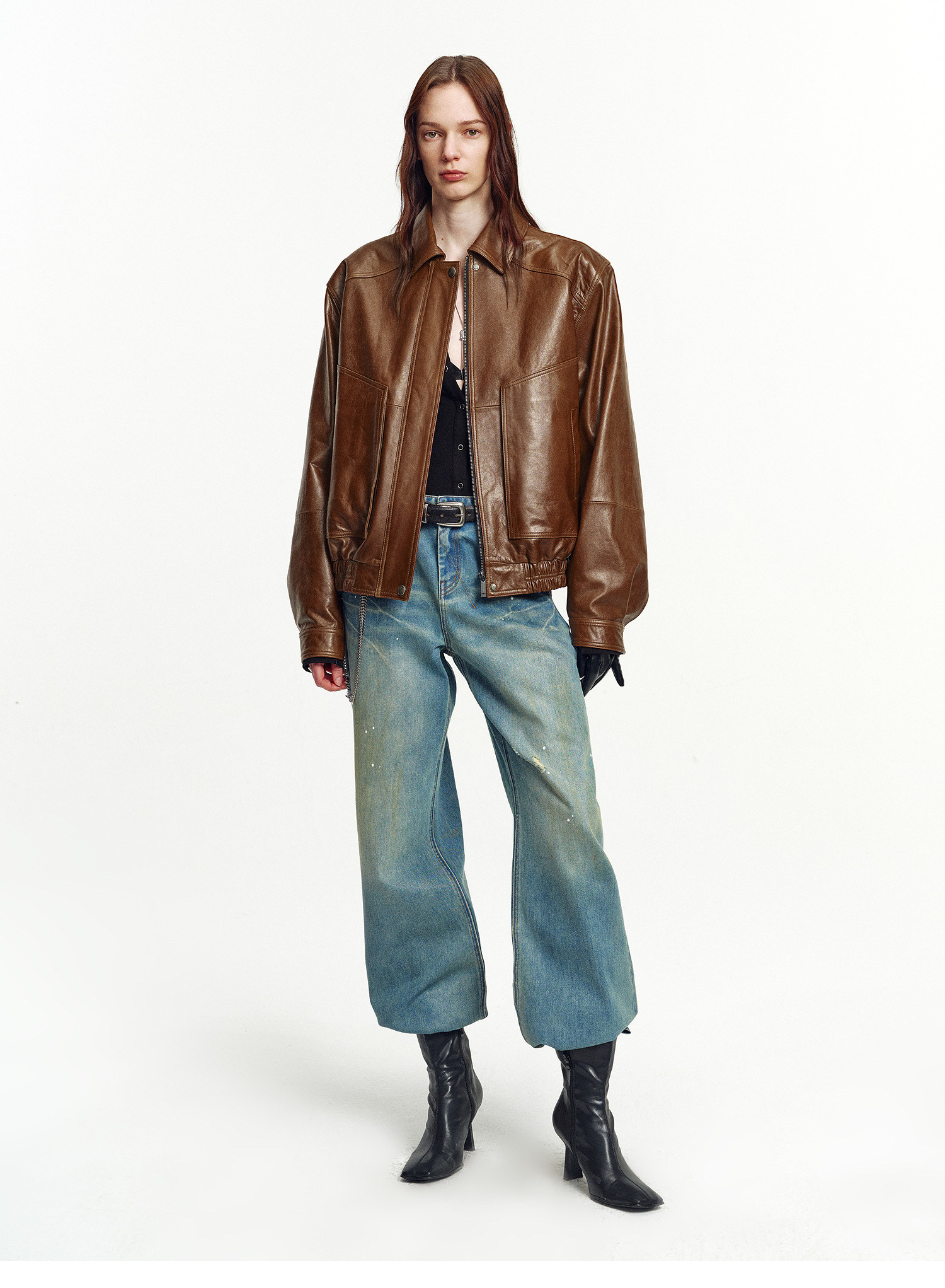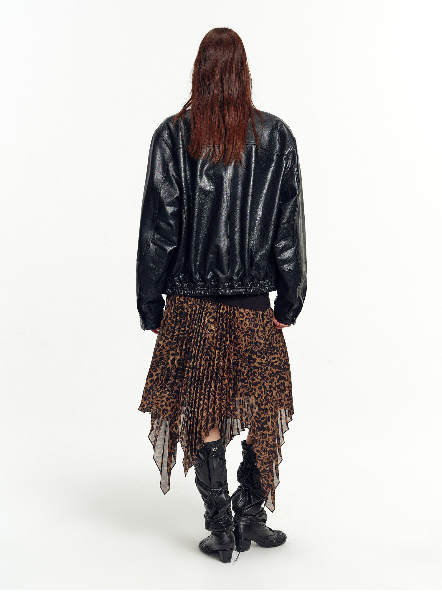[Same Style as Huang Baobao] Fu Zhi'En Fashion Recorder Imported Waxed Vegetable-Tanned Sheepskin Genuine Leather Jacket