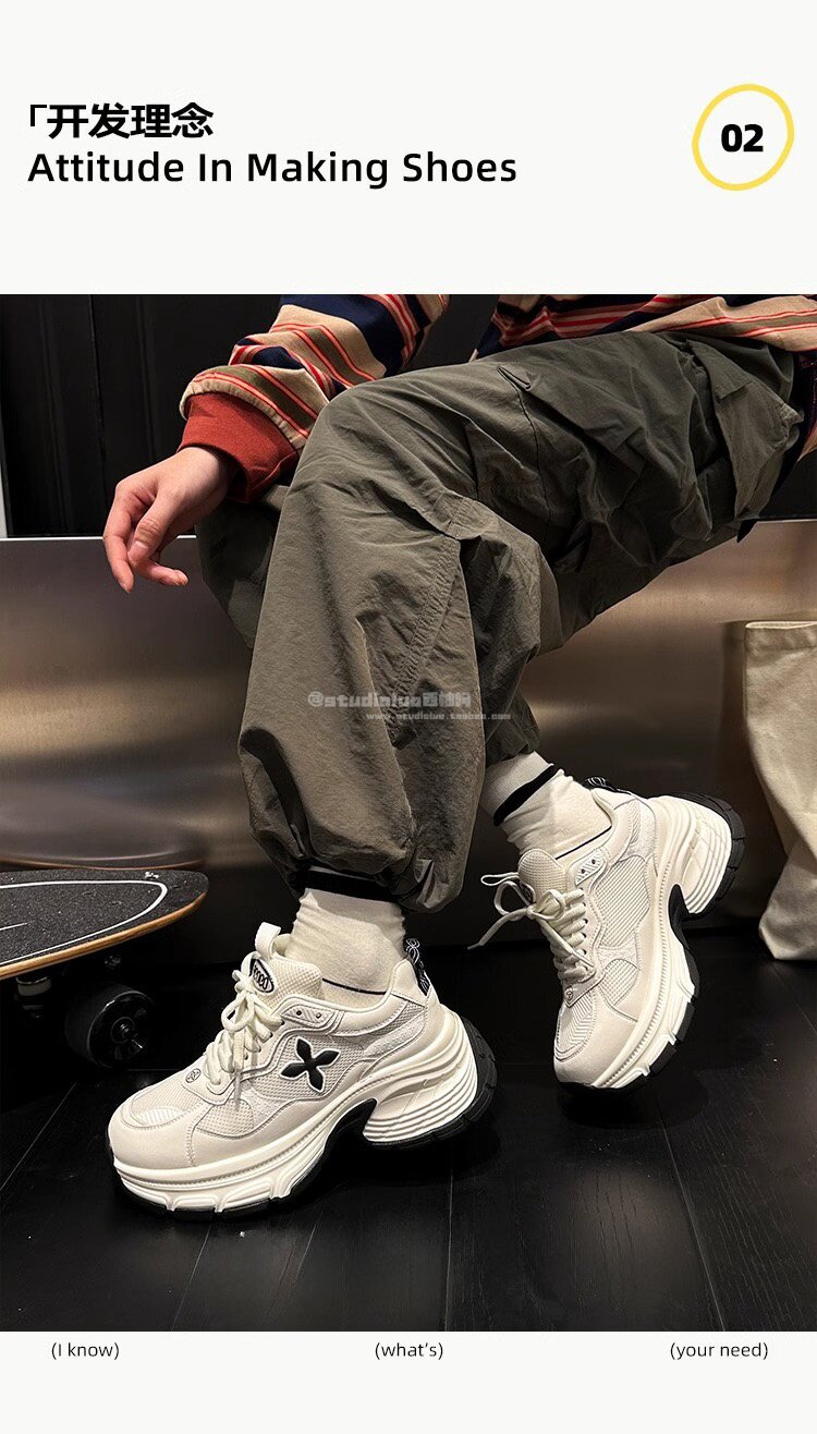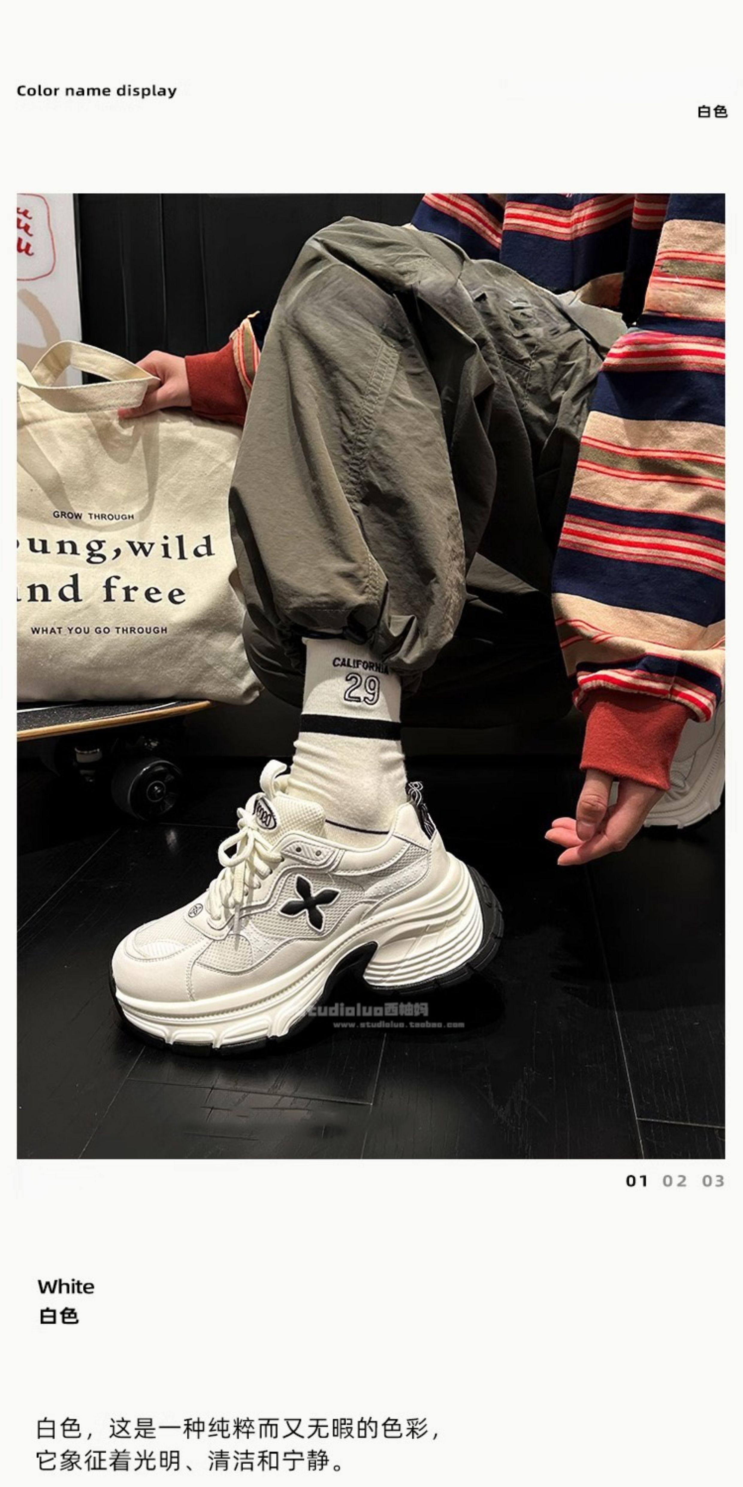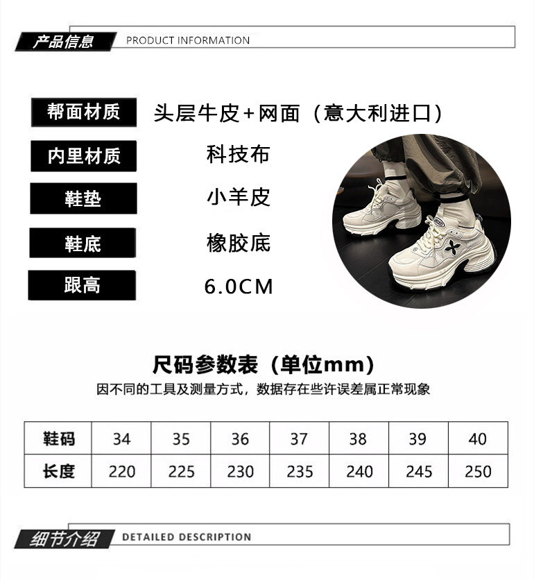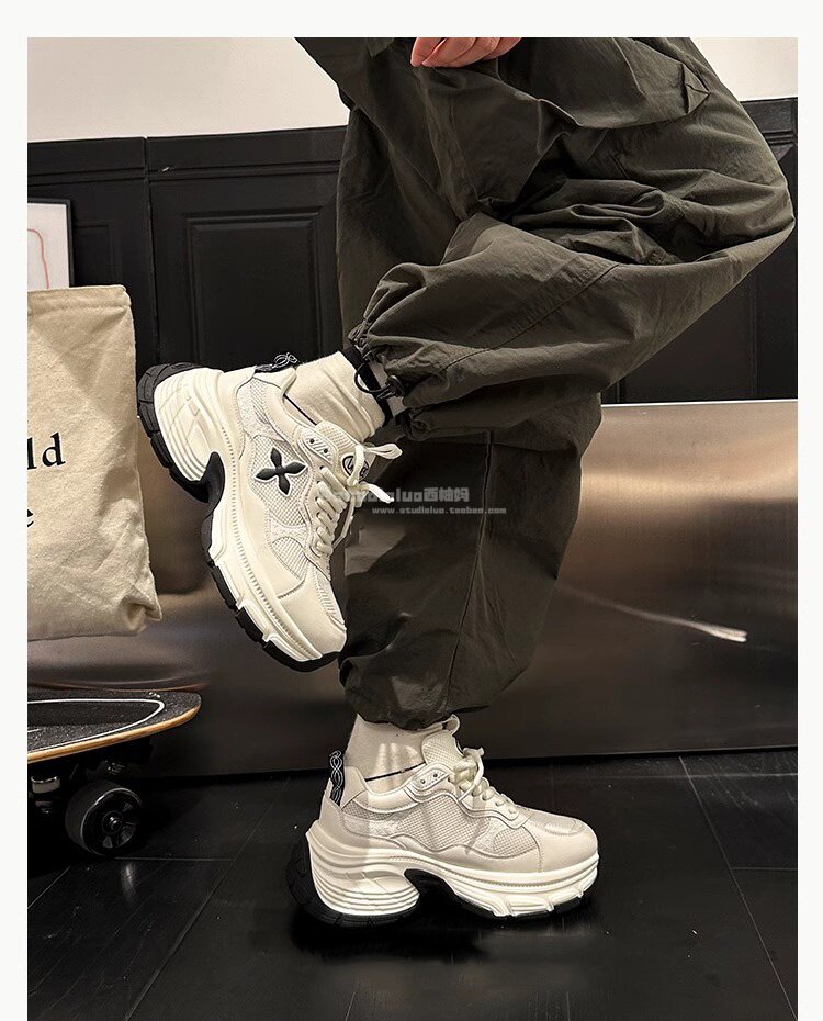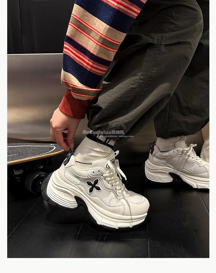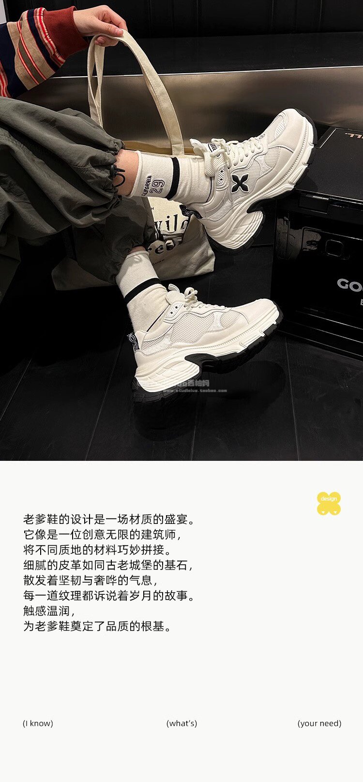 Hong Kong Genuine Leather Dad Shoes for Women, 2026 Spring and Autumn Models, Versatile Internet-Famous Thick-Soled Sneakers, Make Feet Look Smaller, Lightweight Running Shoes