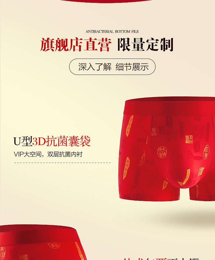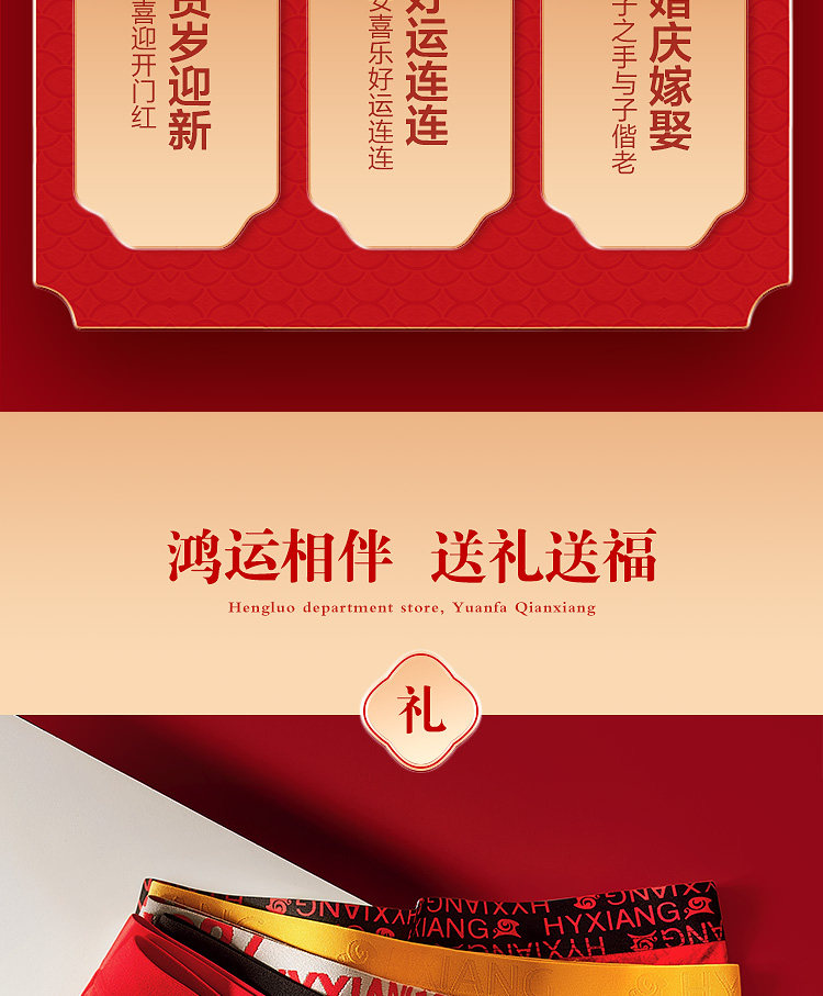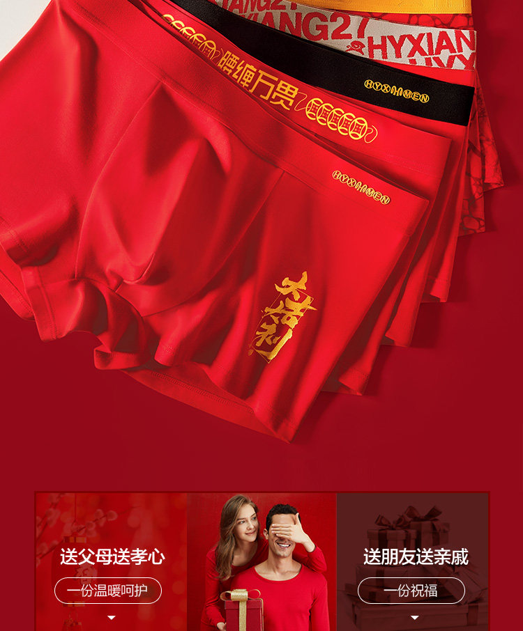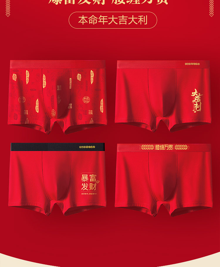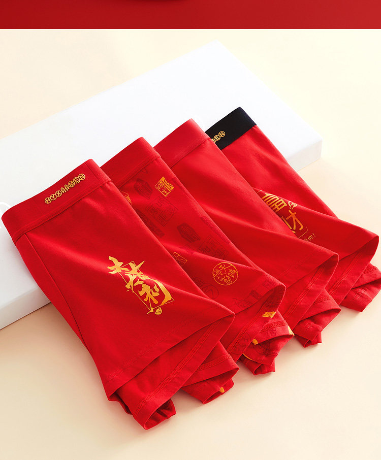 Hengyuanxiang Men's Underwear Pure Cotton Men's 2026 New Model Brand-Name Genuine High-End Red Shorts for the Year of the Horse