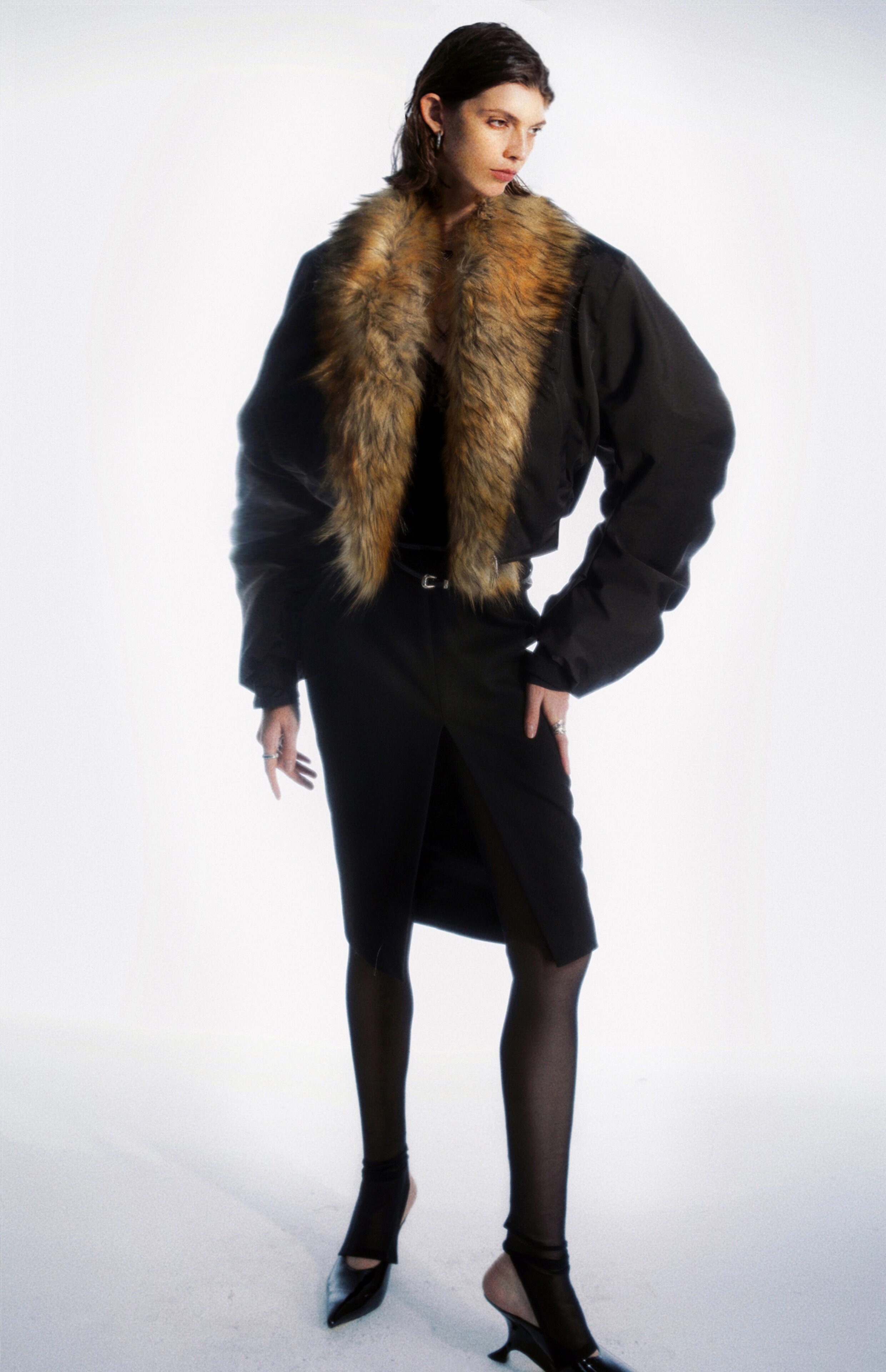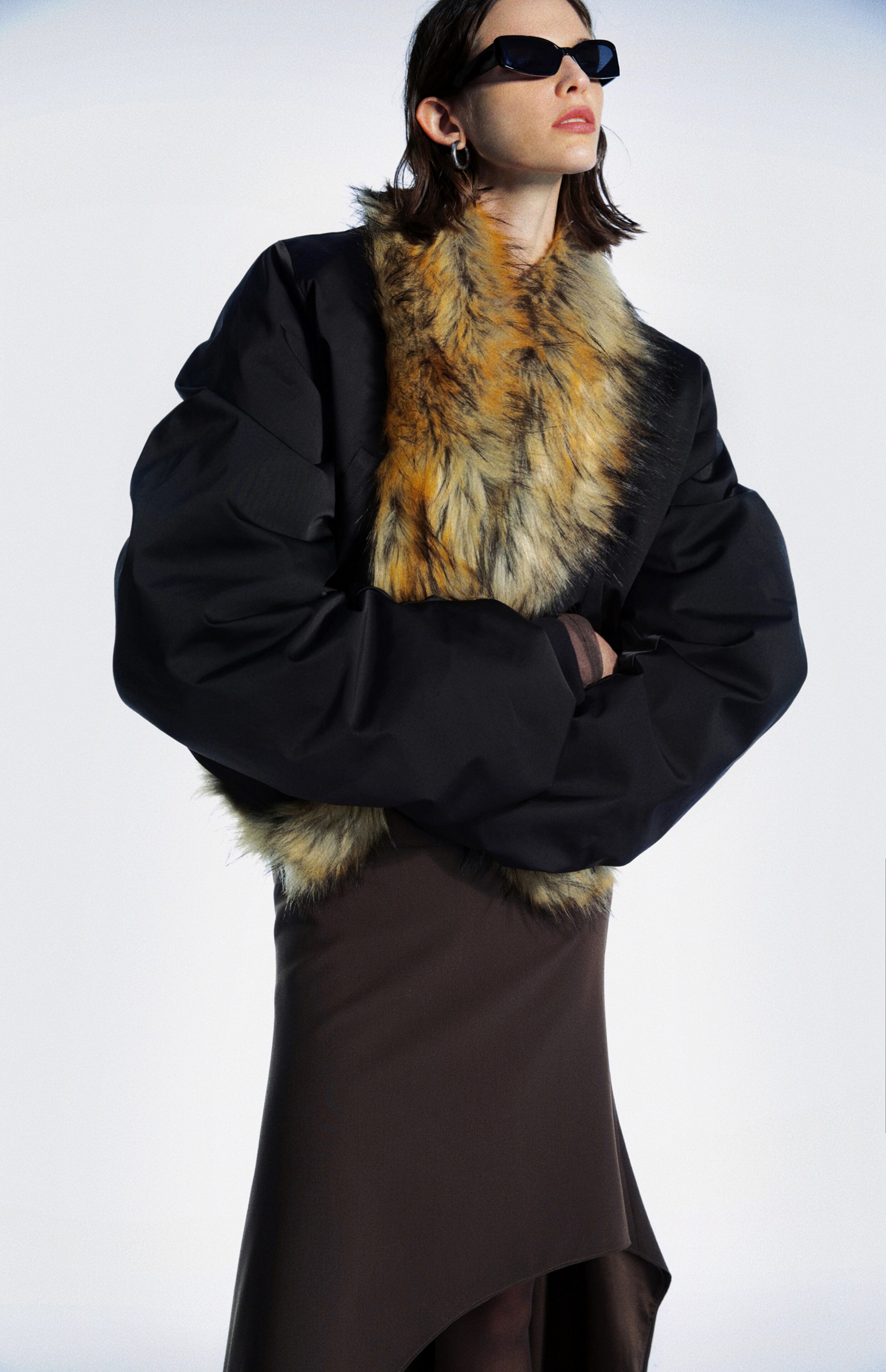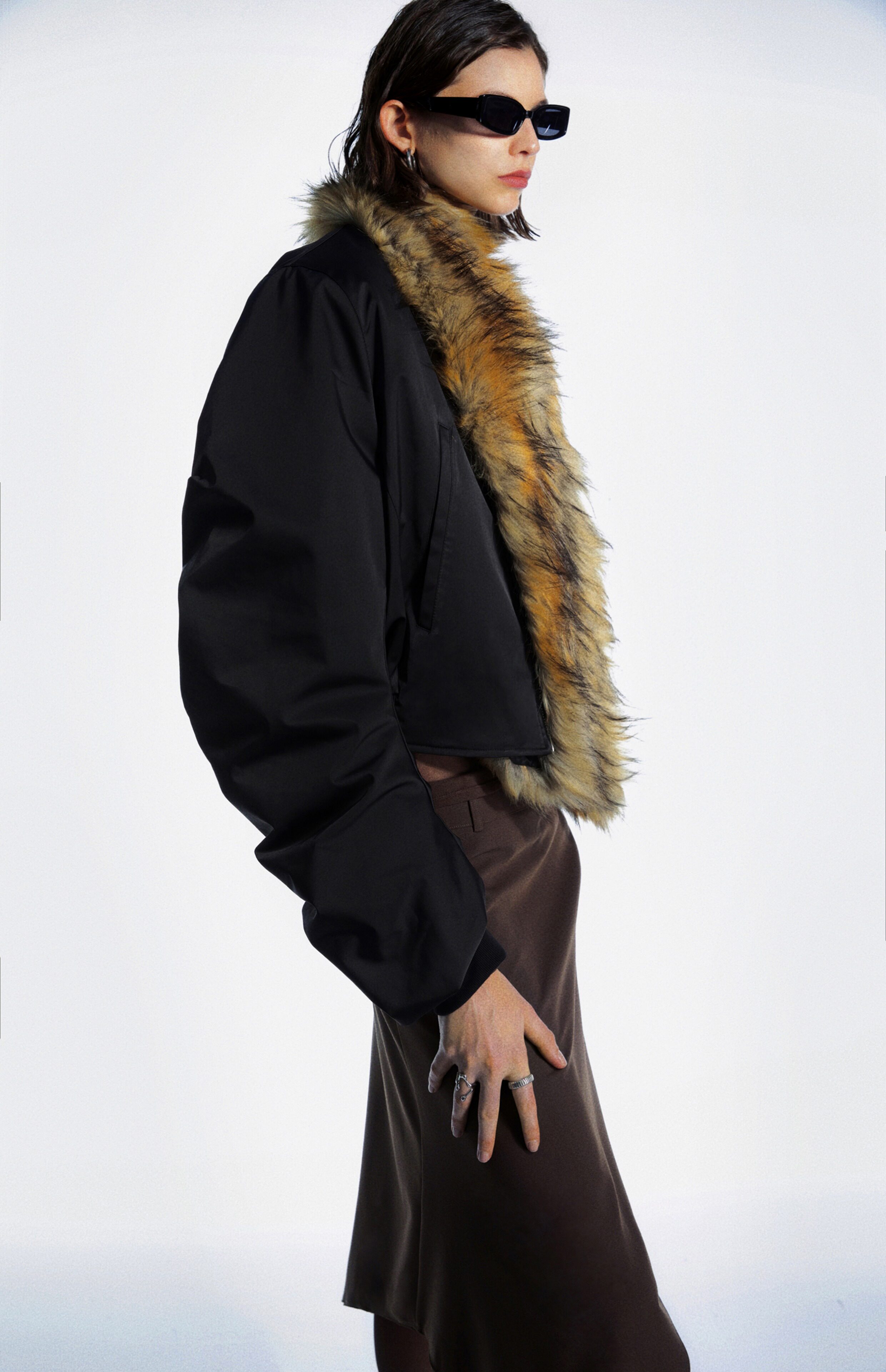 Commonce.Net Detachable Fur Collar Pleated Cotton Jacket