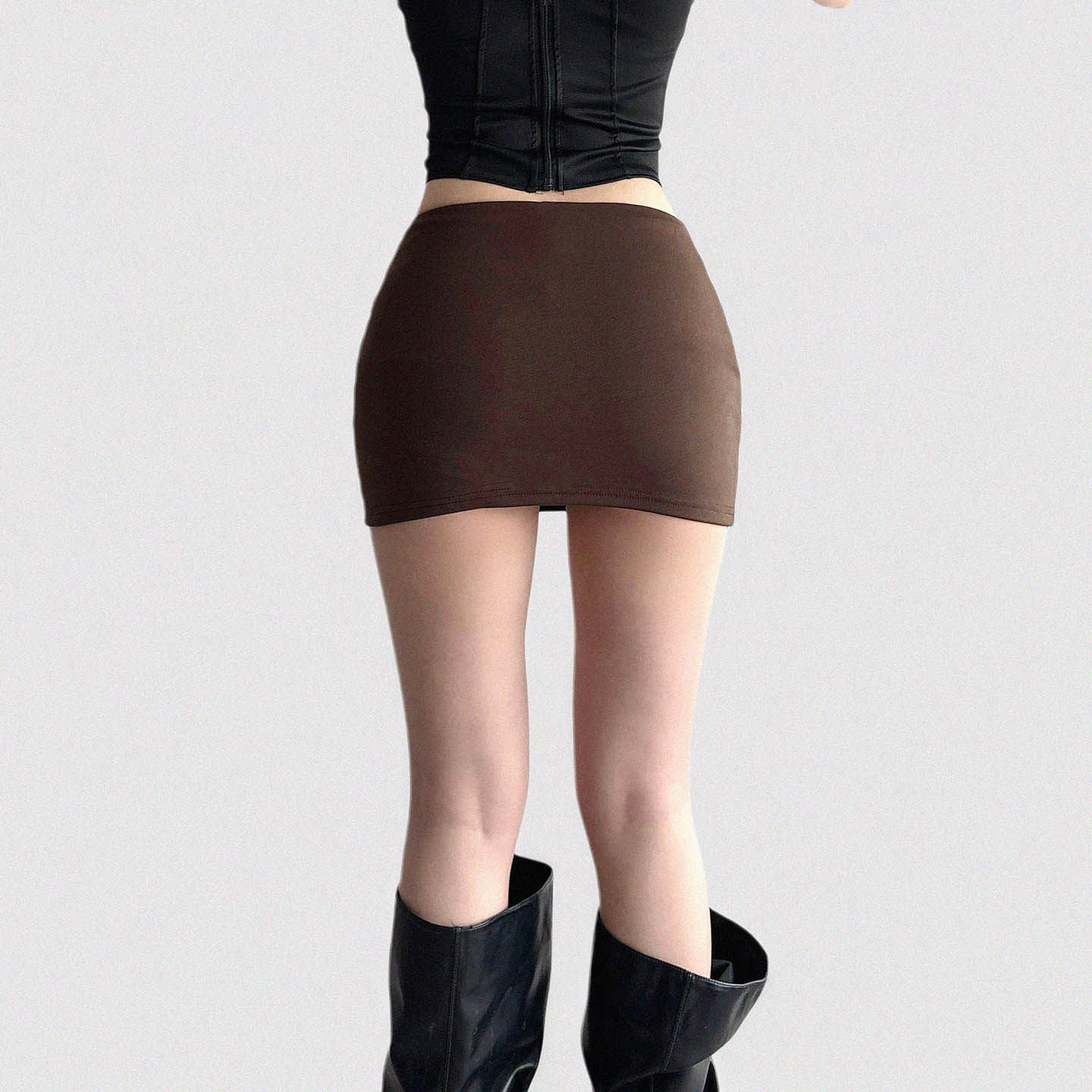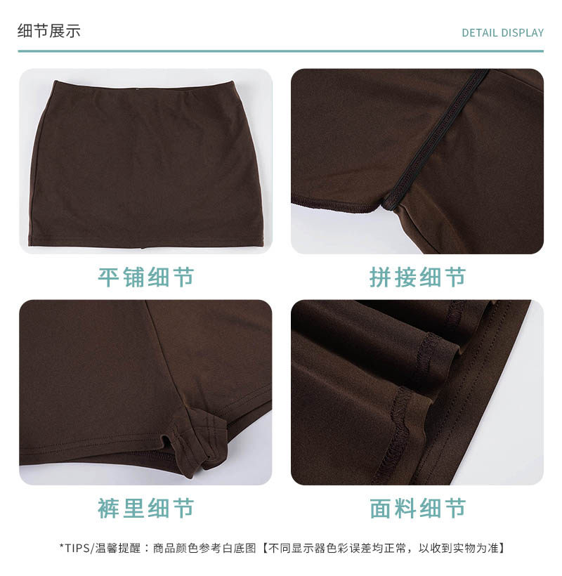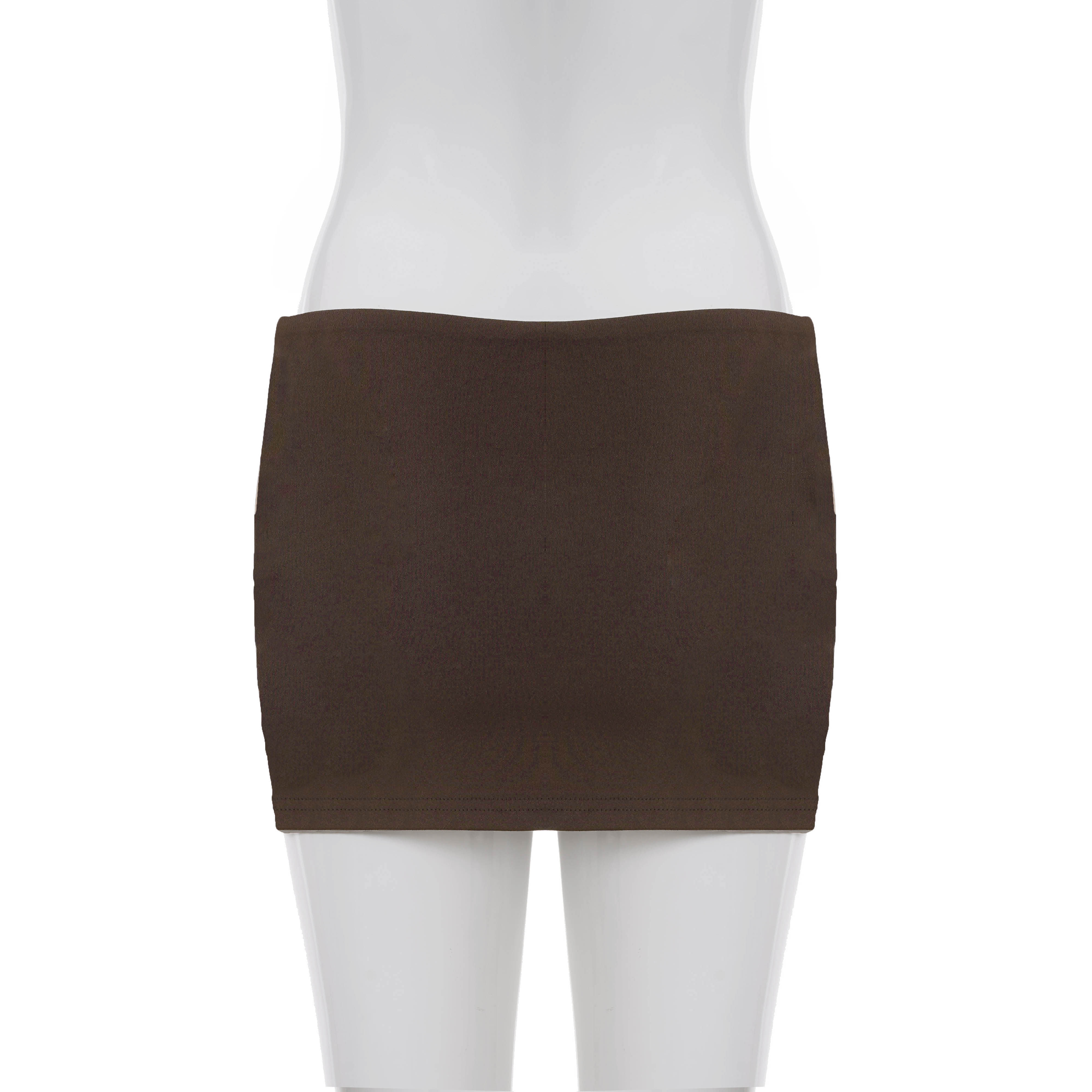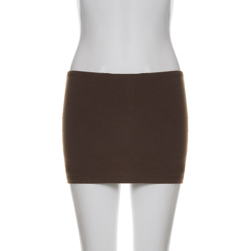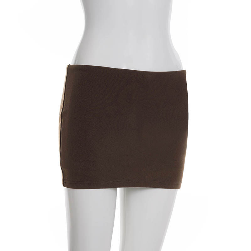 Funoff American Retro Brown One-Piece Hip-Hugging Low-Waist Short Skirt Sexy Simple Pure Color Basic Skirt