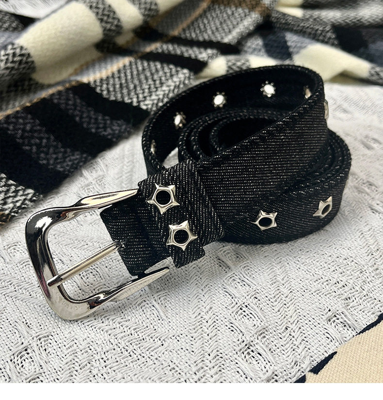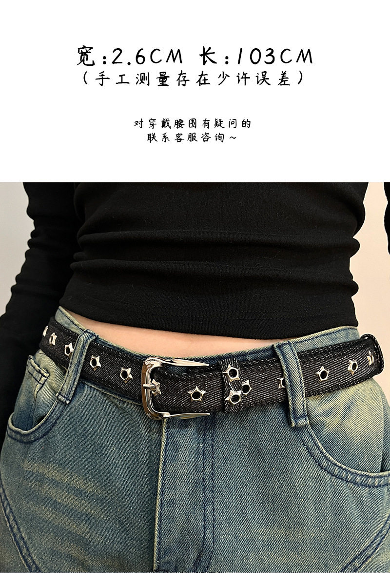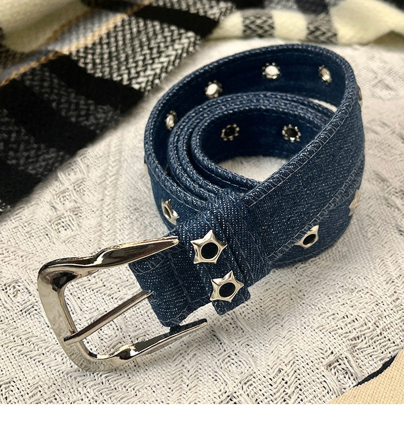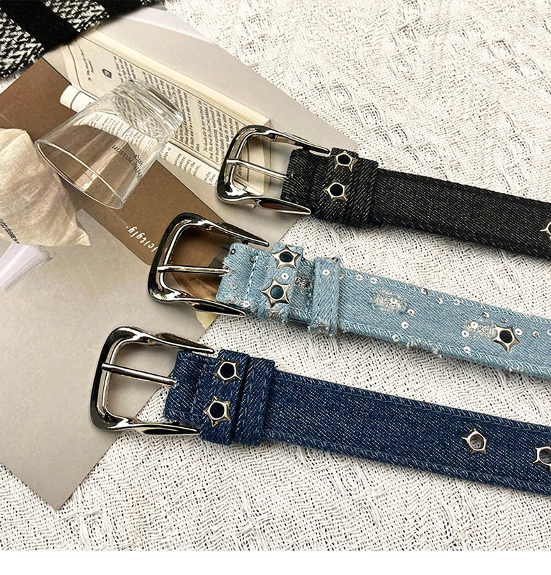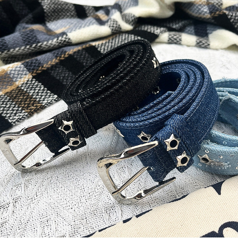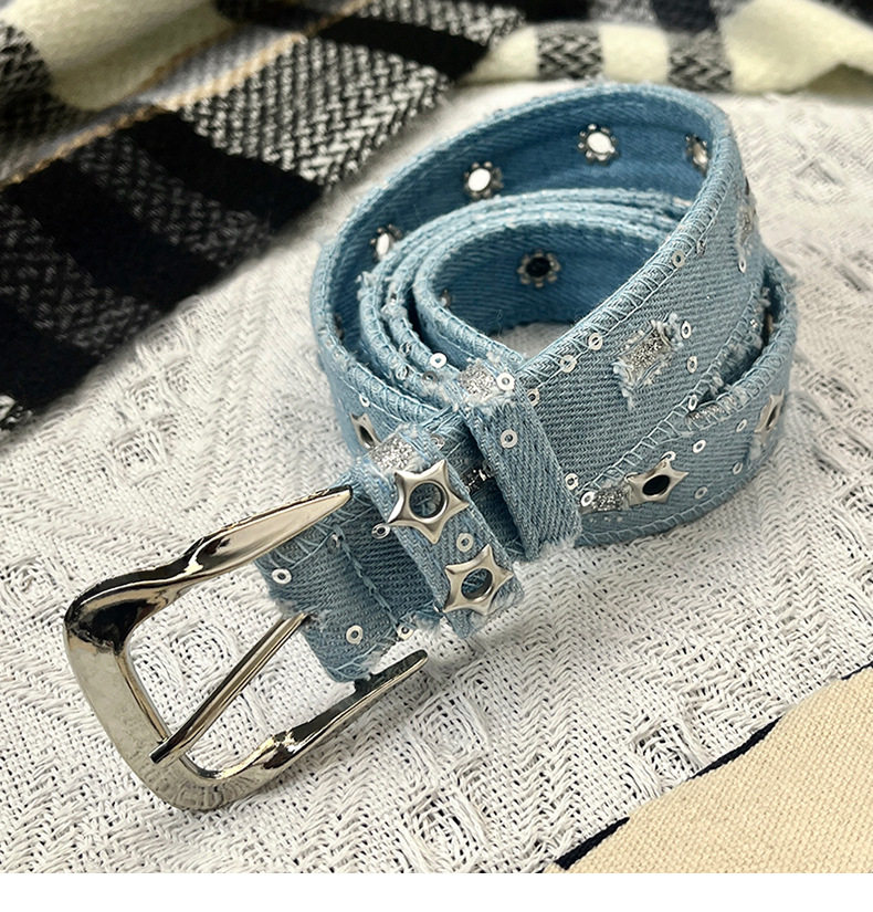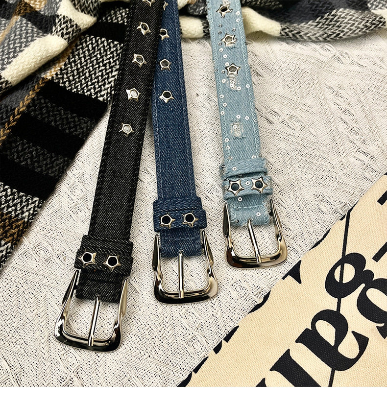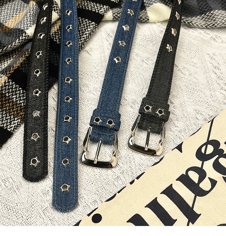 Denim Canvas Multi-Hole Belt with Sequin Pin Buckle, Women's Trendy Versatile Korean Style Fashion Belt Decoration ins