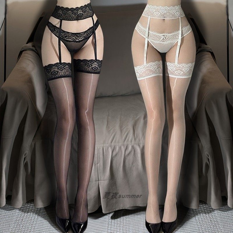 「Queyu Jiyiying」Sexy Aurora Stockings Shiny Black Thin Stockings Women's Pure Desire Long Stockings Integrated Suspender Stockings