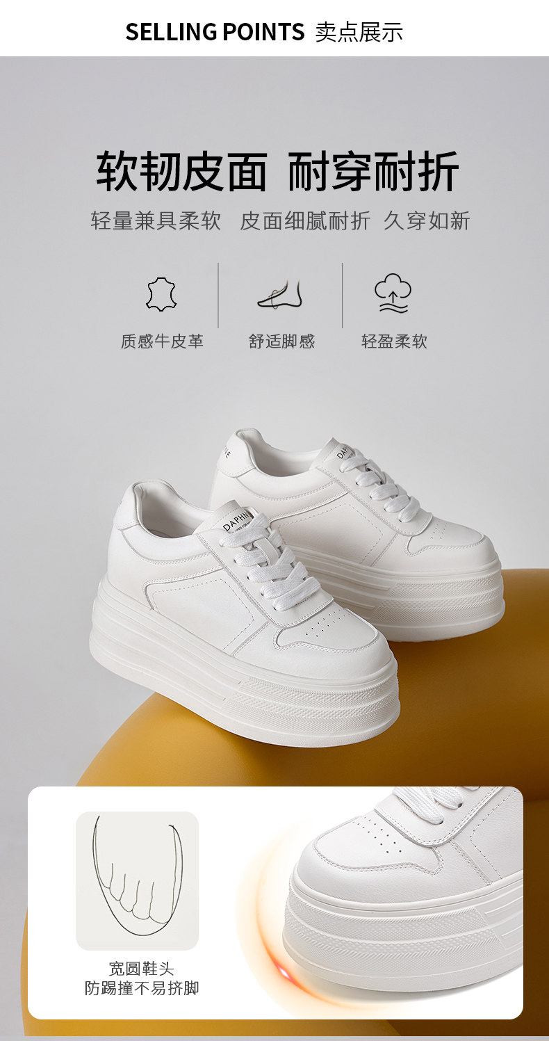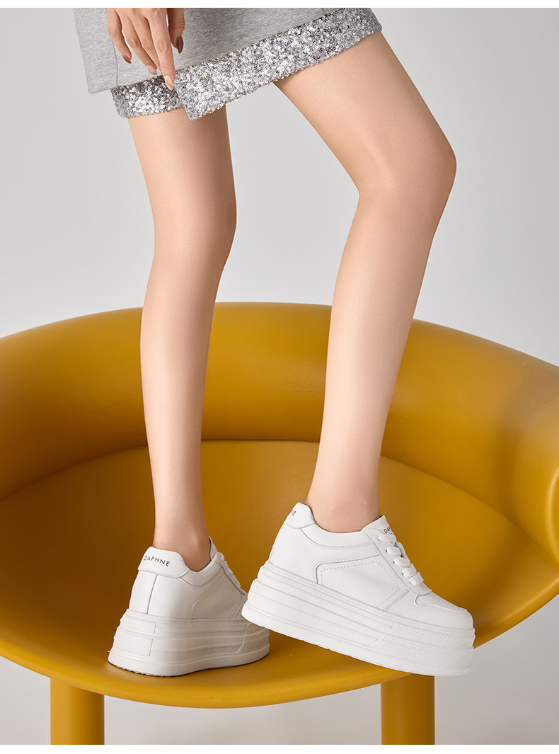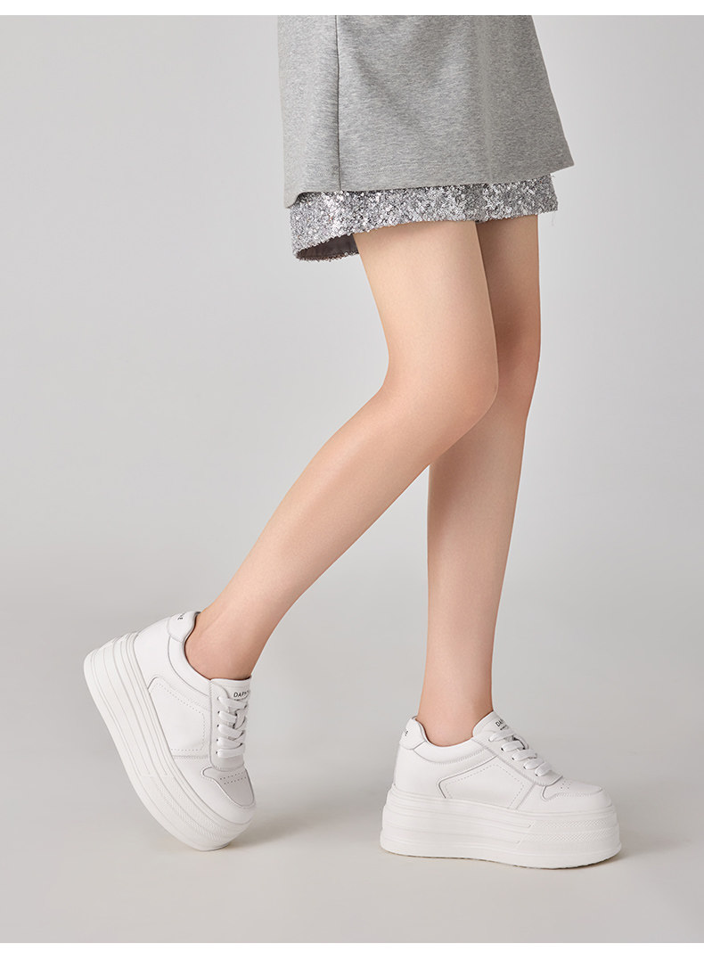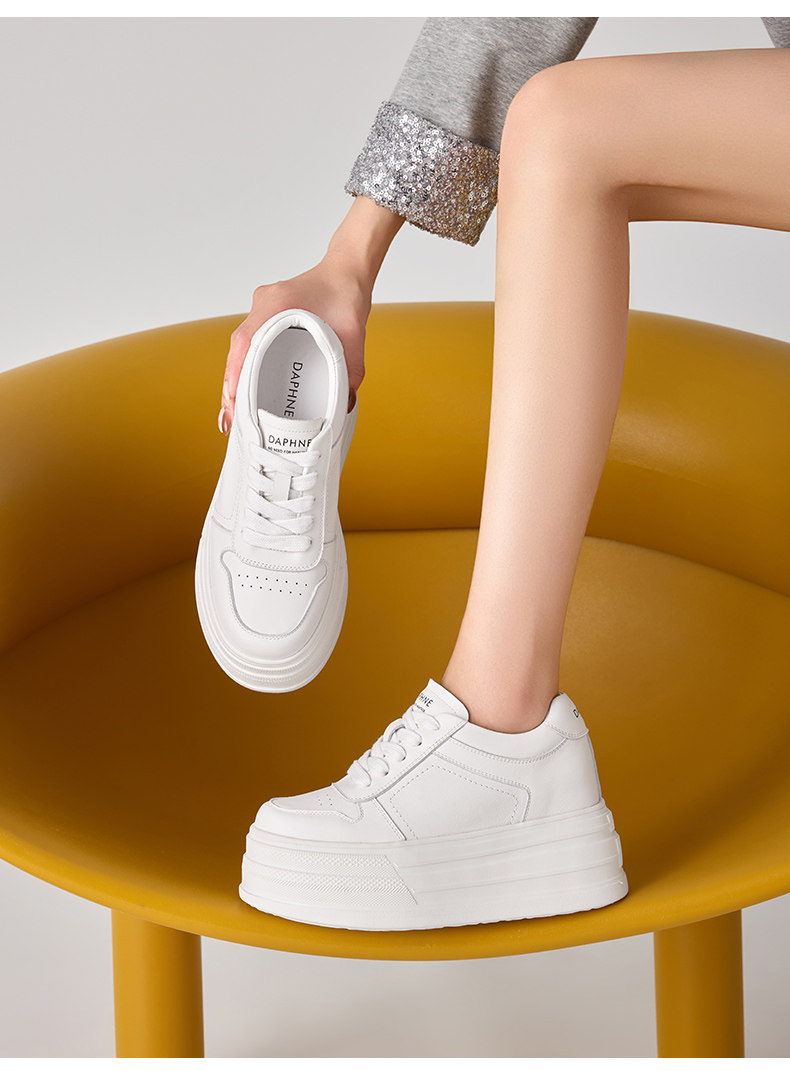 Daphne First-Layer Cowhide 9cm Height-Increasing Thick-Soled Sneakers for Women 2026 New Spring Platform Casual Fleece-Lined White Shoes