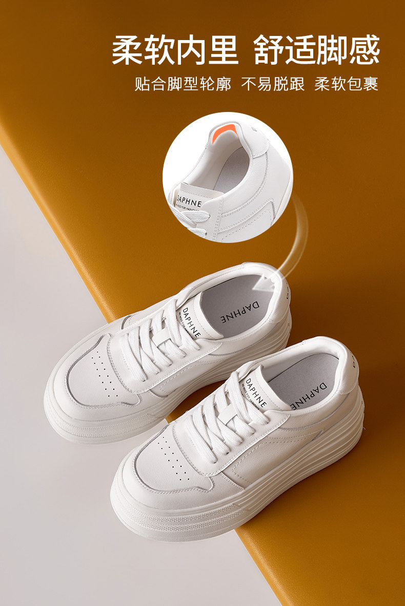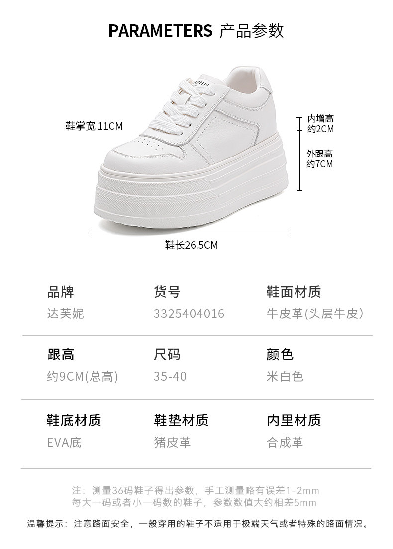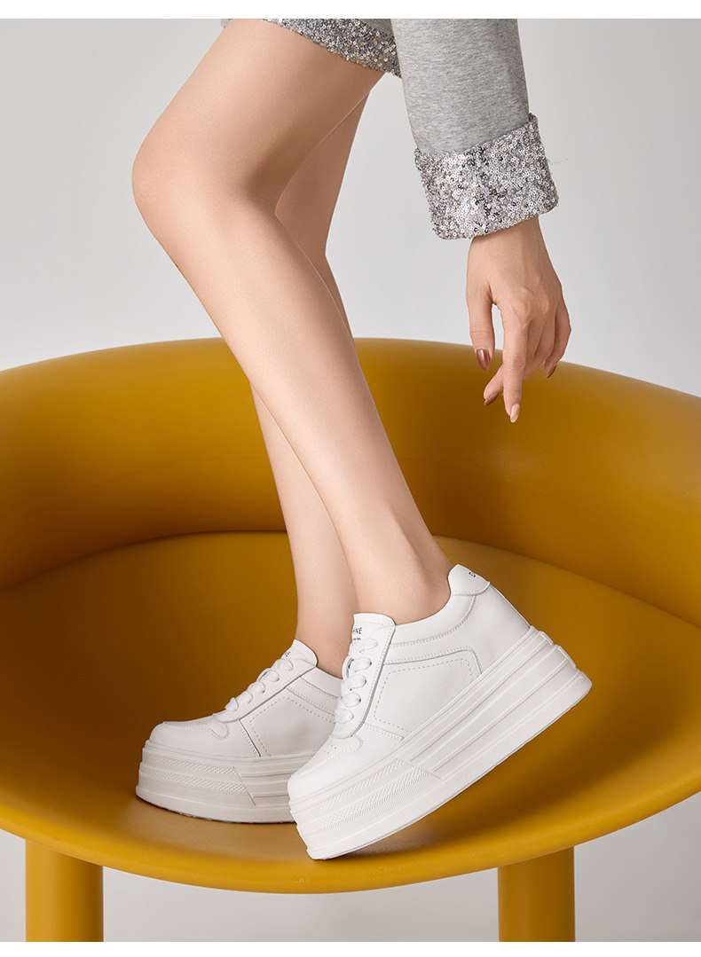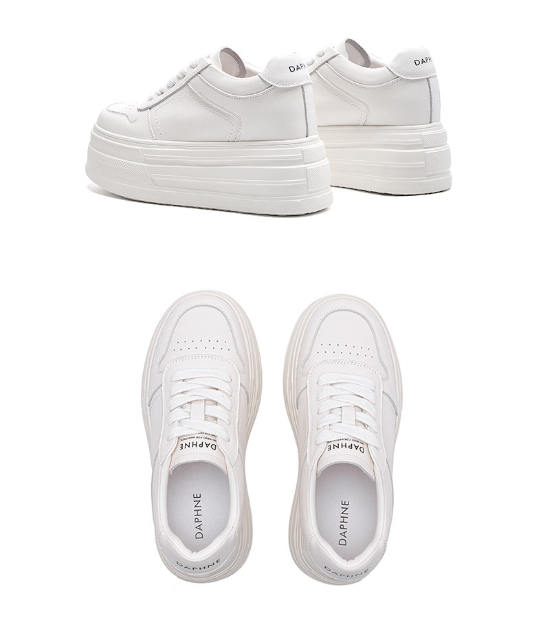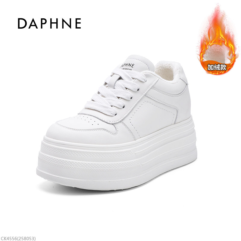 Daphne First-Layer Cowhide 9cm Height-Increasing Thick-Soled Sneakers for Women 2026 New Spring Platform Casual Fleece-Lined White Shoes