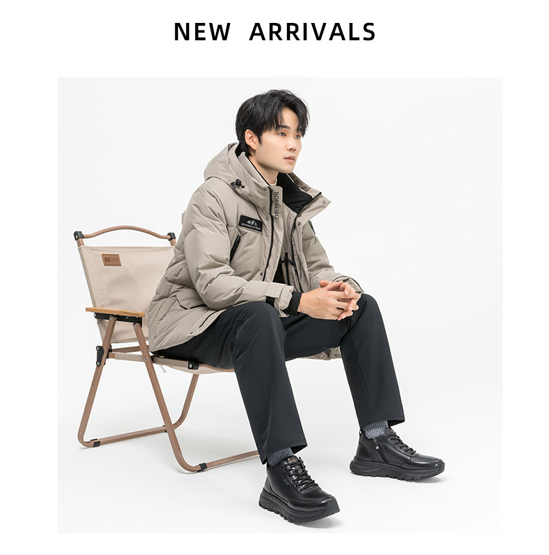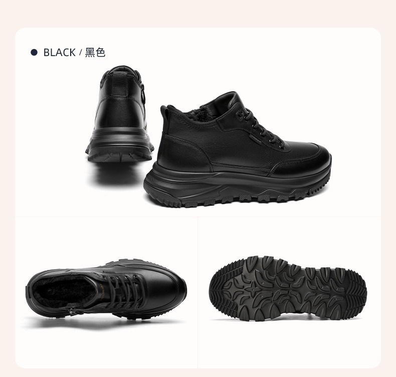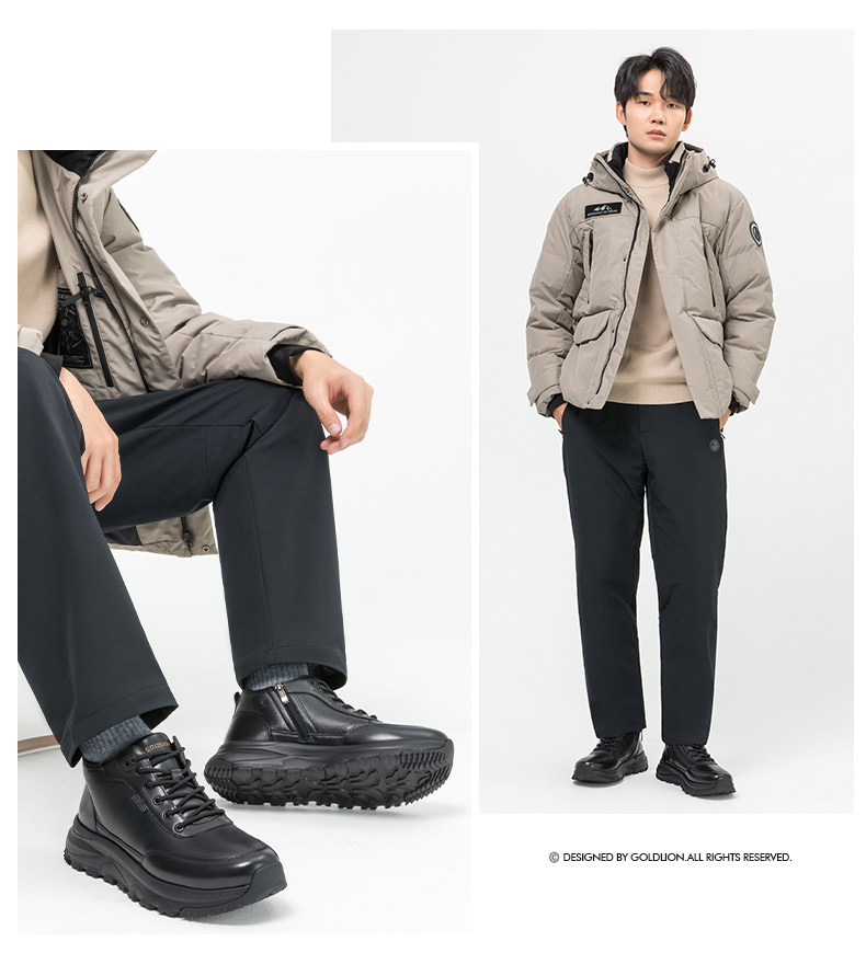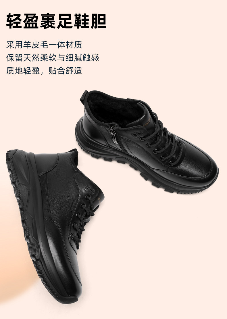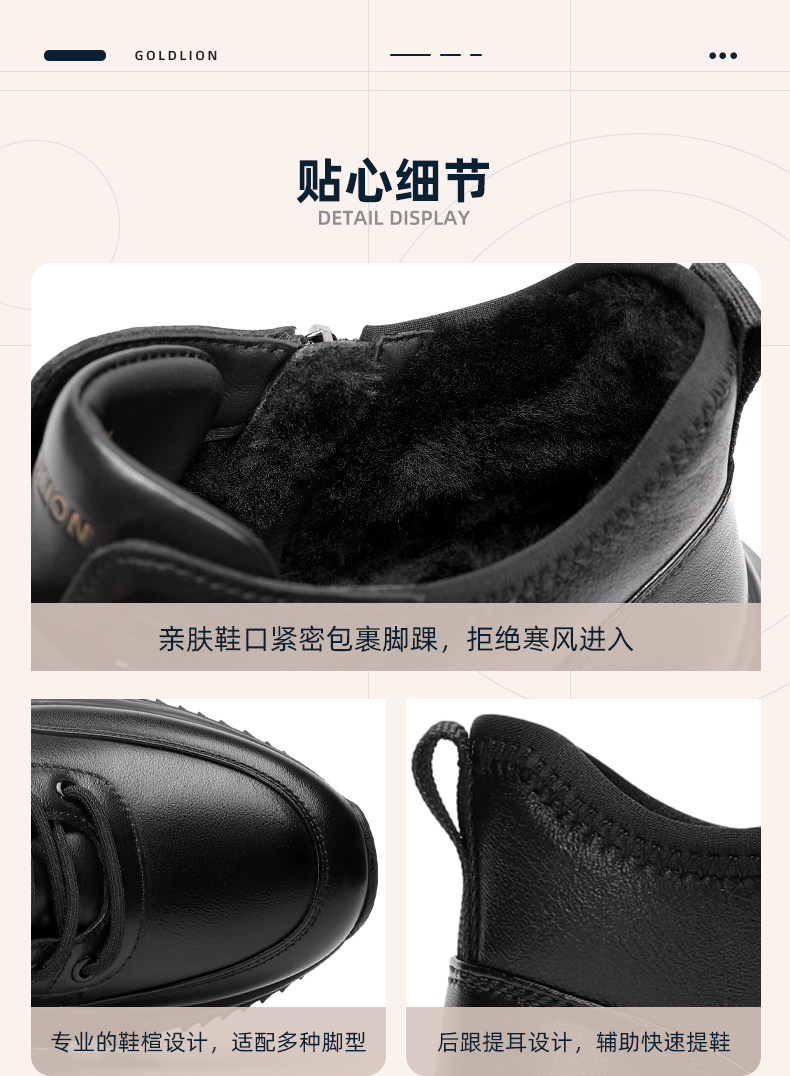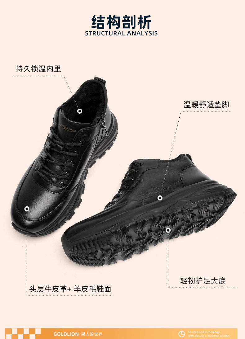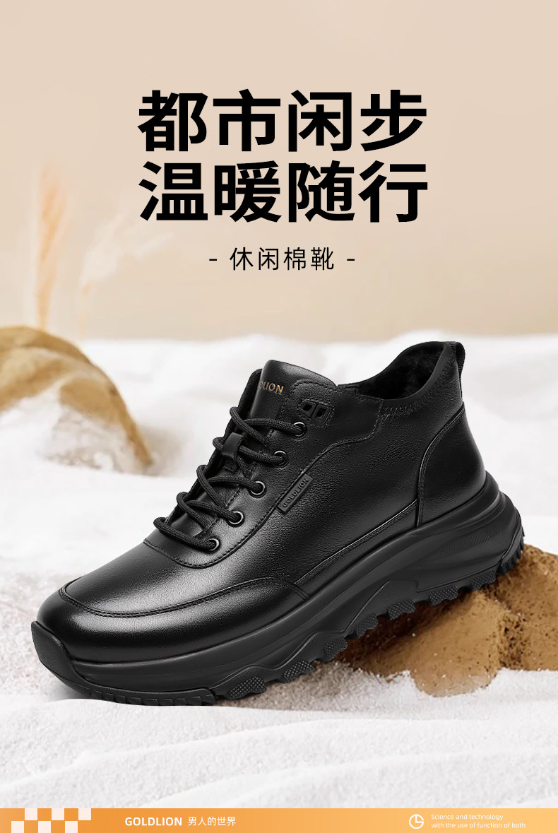 Goldlion Men's Winter Fleece-Lined Shoes 2025 New Style Fur Integrated Snow Boots Men's High-Top Warm Cotton Shoes