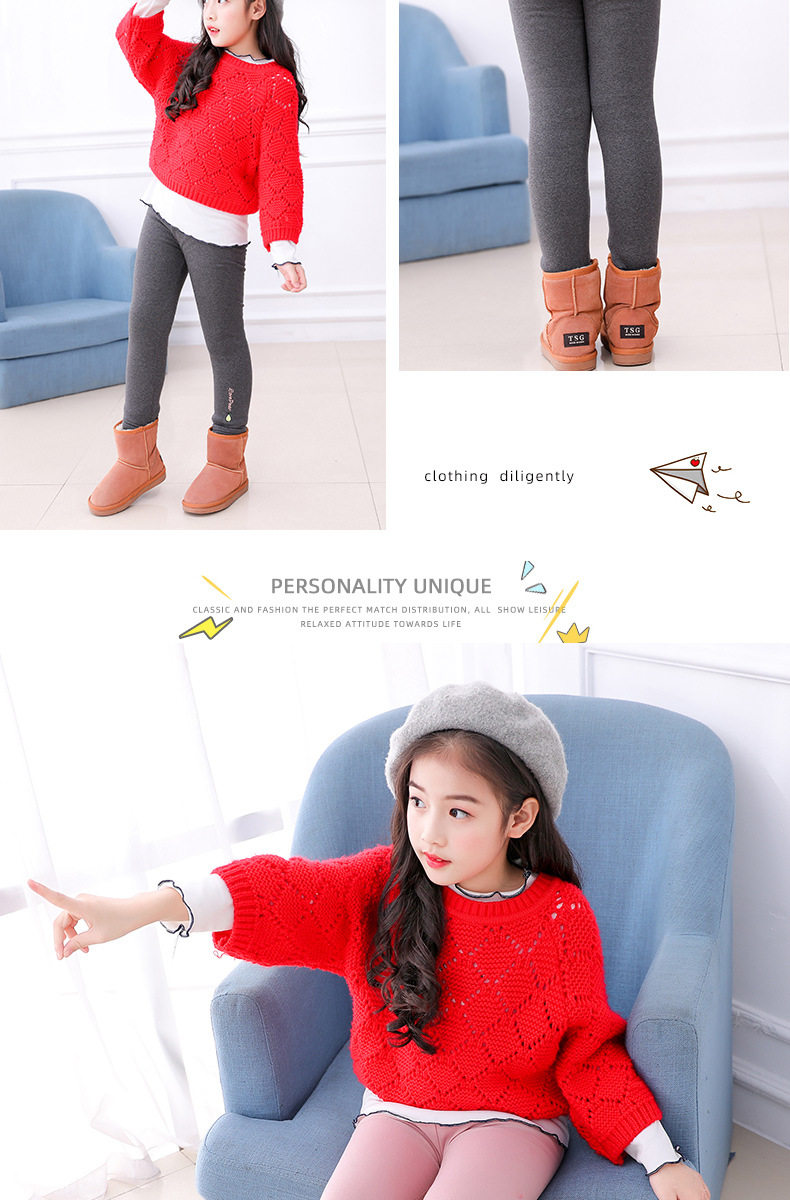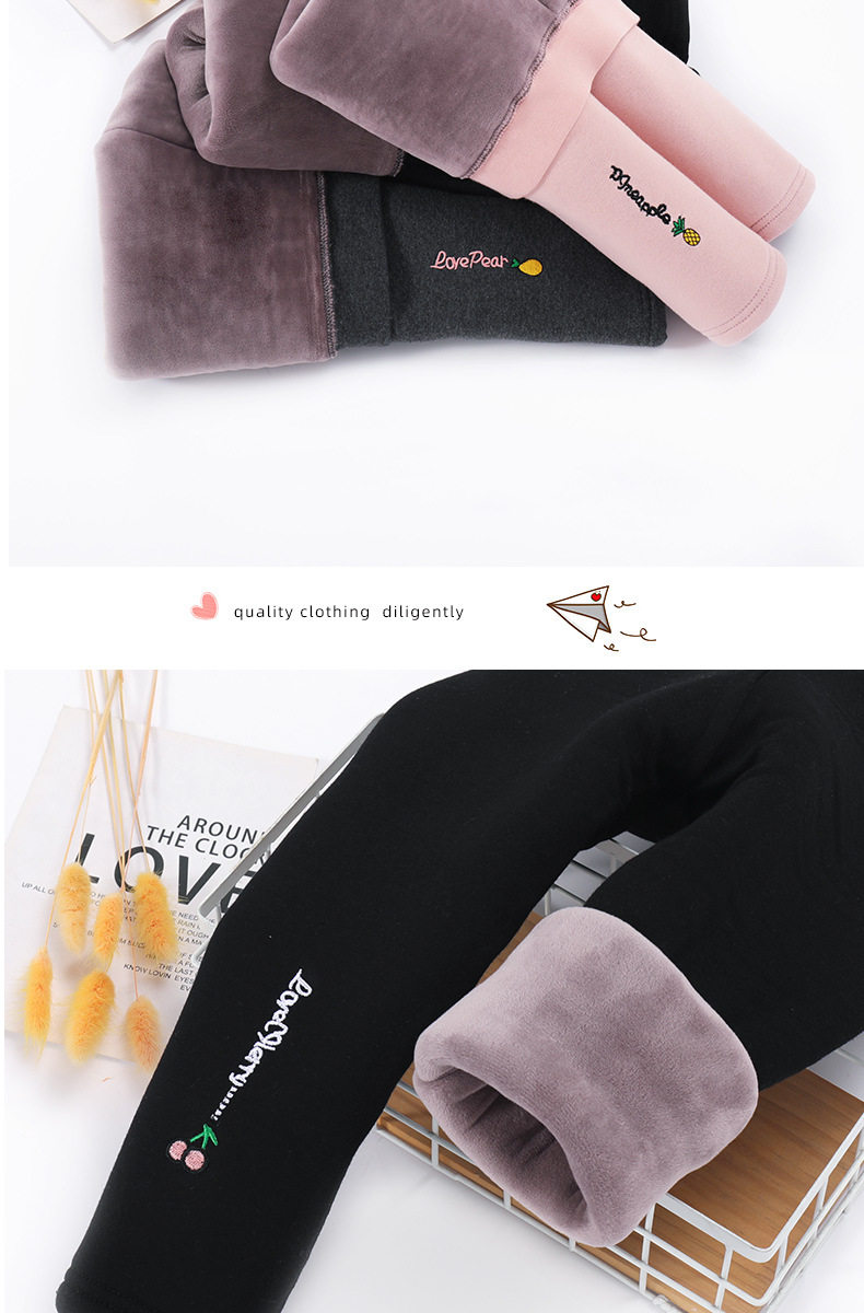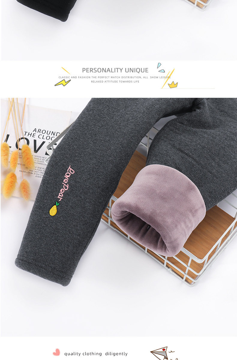 Girls' Cotton Pants with Fleece Lining, Thickened Children's Leggings, Baby Warm Pants, Three-Layer Korean Style Outerwear Long Pants for Young Children
