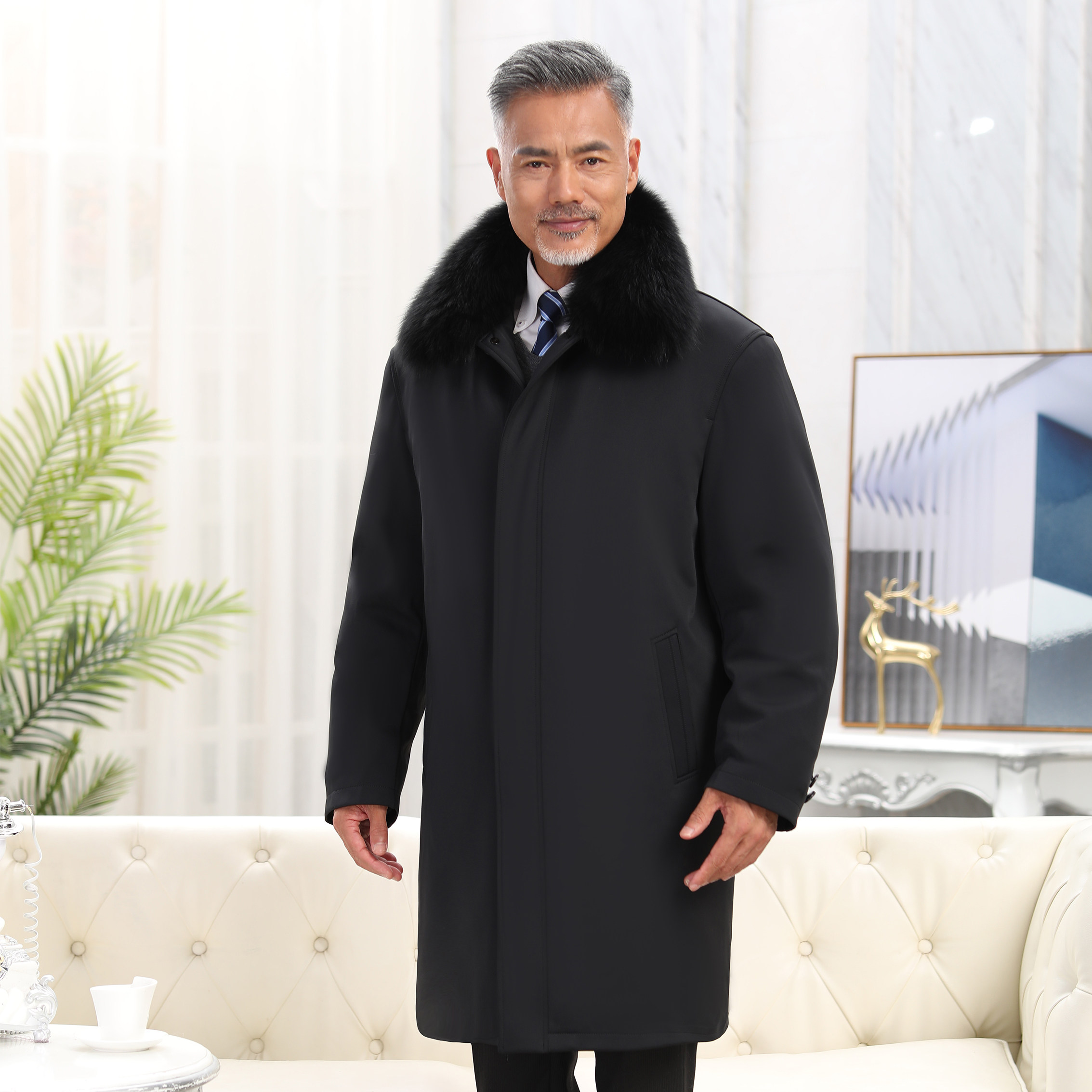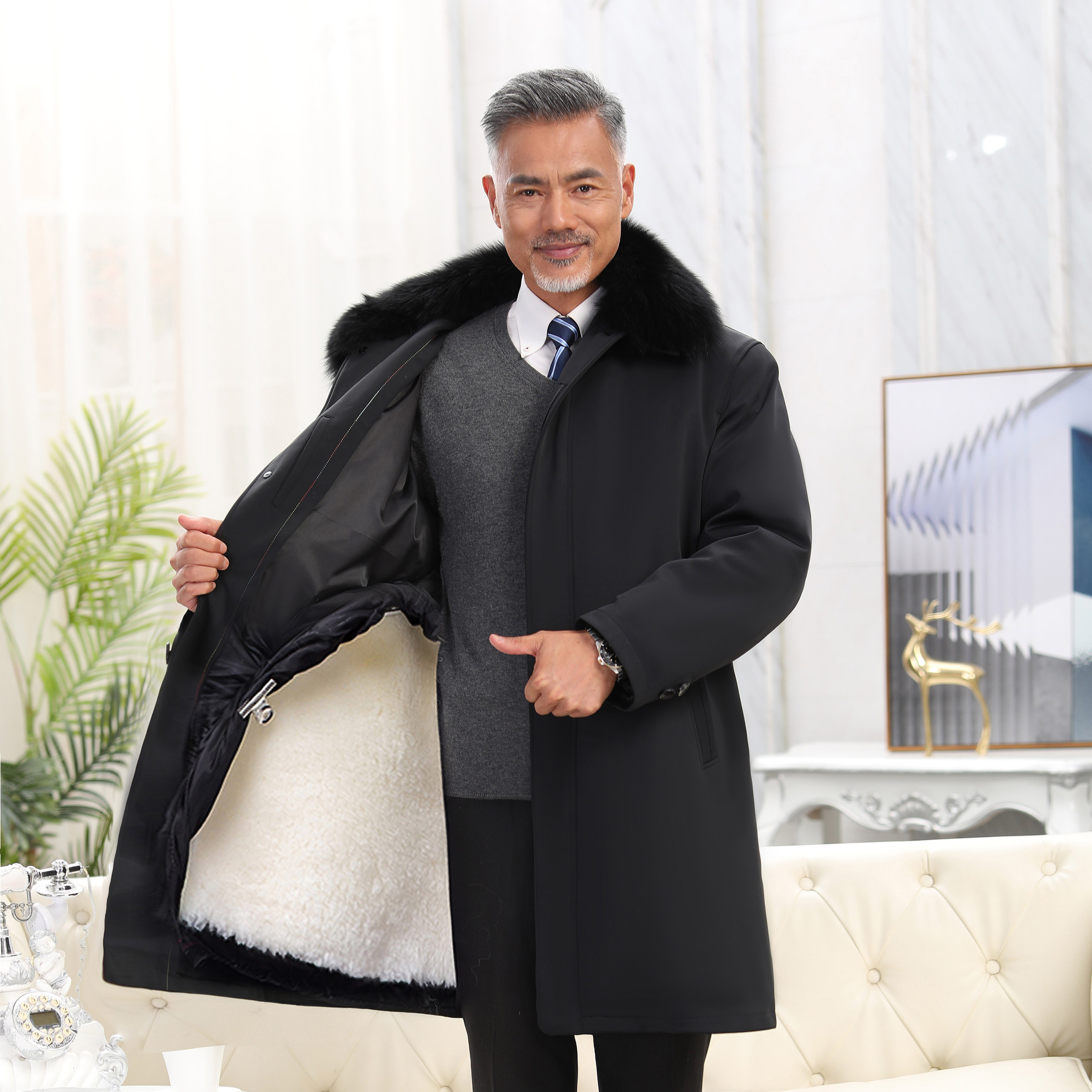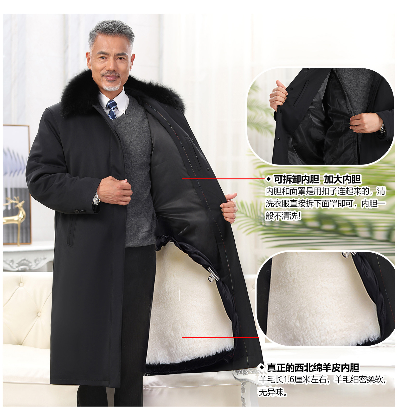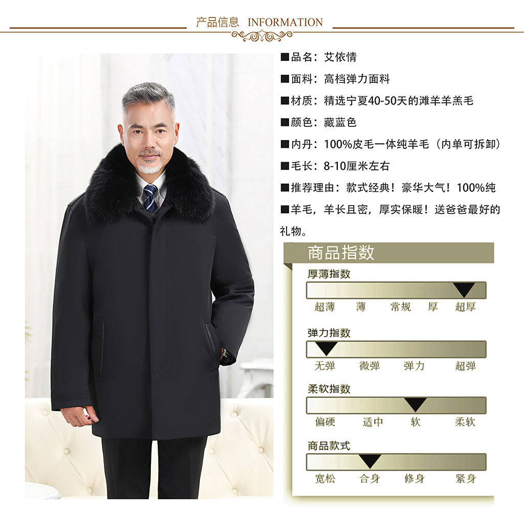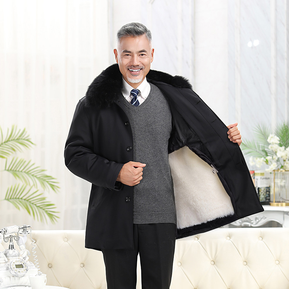 Middle-Aged and Elderly Sheepskin Shearling Coat, Sheepskin Coat, Fur Integrated Sheepskin Cotton-Padded Jacket, Extra-Long Fur Parka