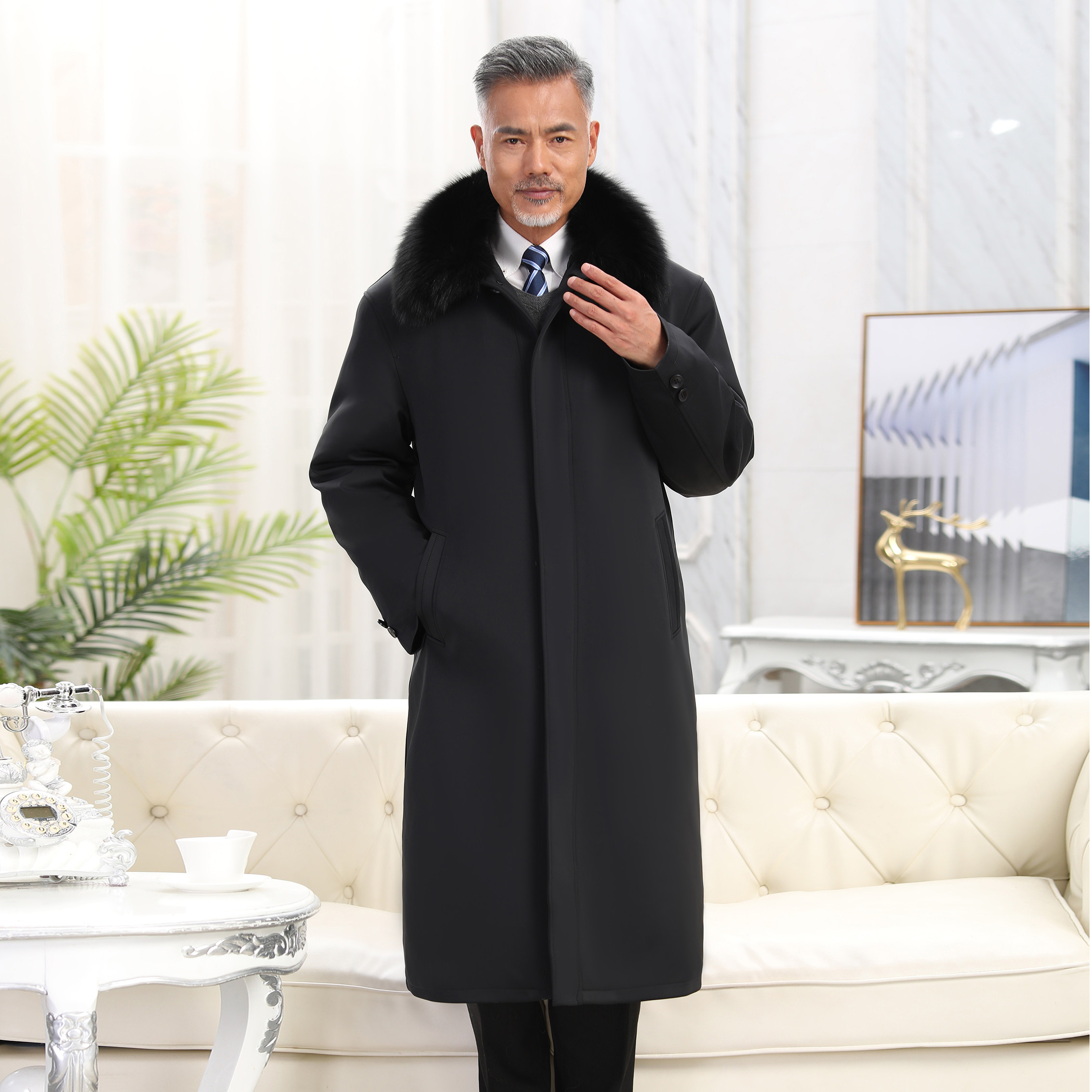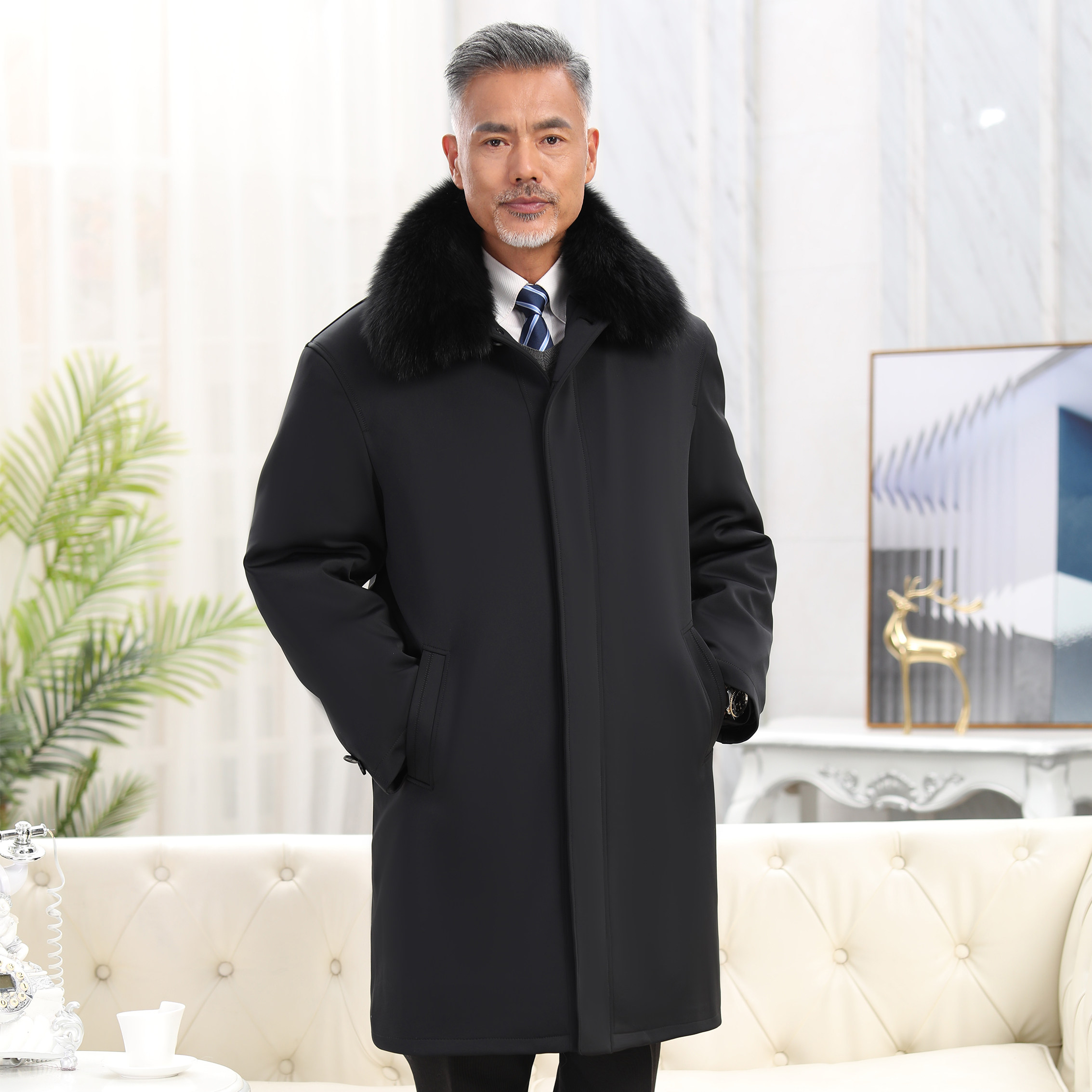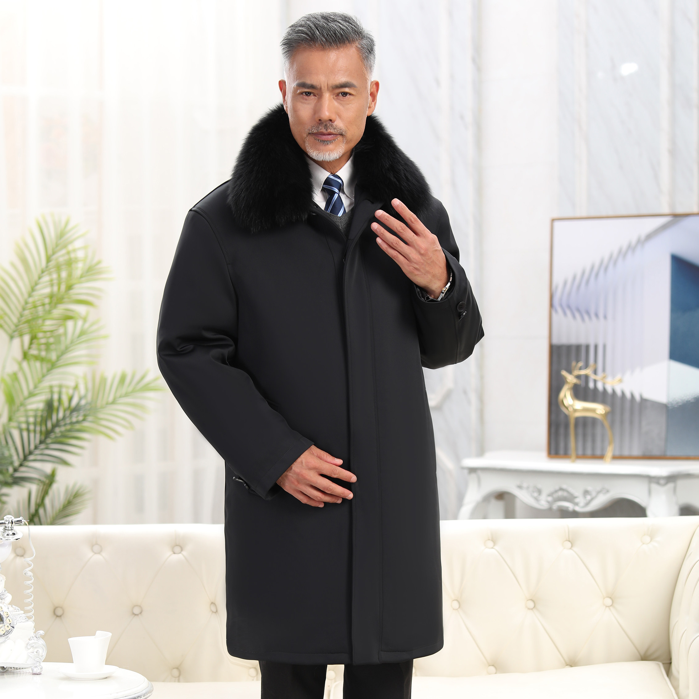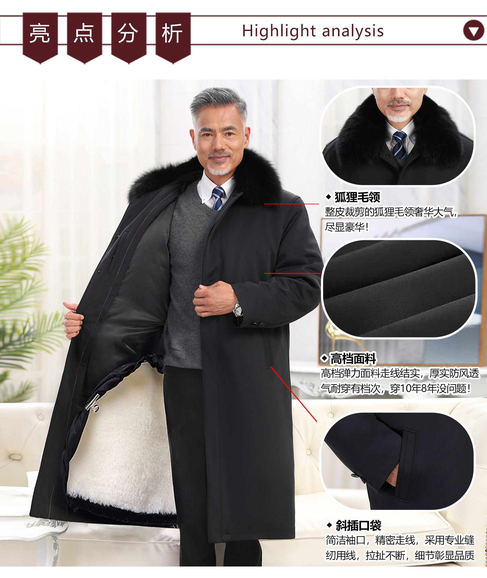 Middle-Aged and Elderly Sheepskin Shearling Coat, Sheepskin Coat, Fur Integrated Sheepskin Cotton-Padded Jacket, Extra-Long Fur Parka