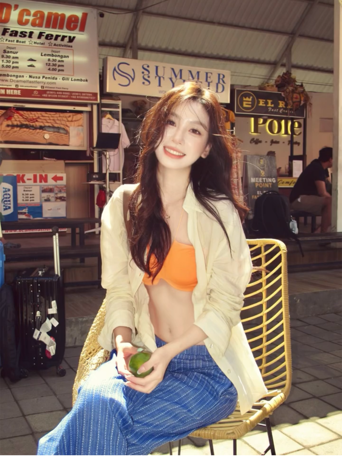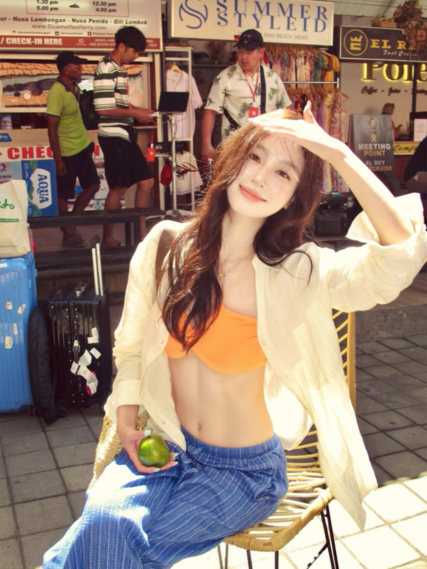 Thai Seaside Resort Style White Shirt for Women, Loose Casual Long-Sleeved Sun Protection Shirt, Island Bikini Three-Piece Set