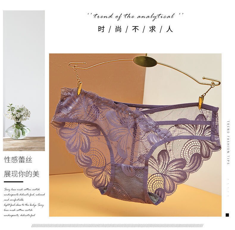 2/4 Pieces of Light Luxury Sexy Women's Panties, Transparent Lace, Fashionable Hollow-Out Mesh, Thin Style, Mid-Low Waist Briefs for Women