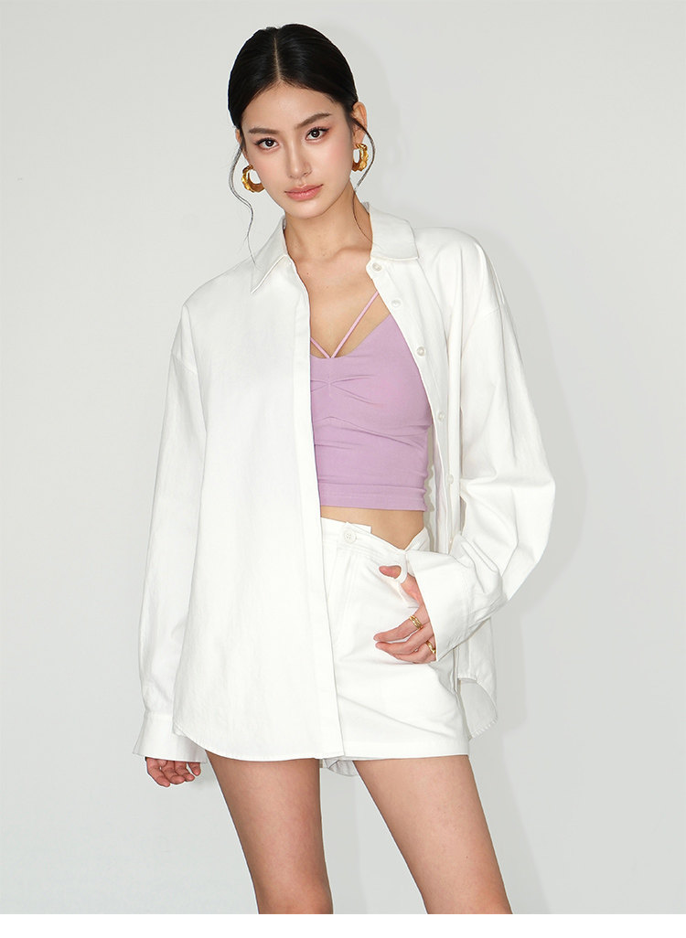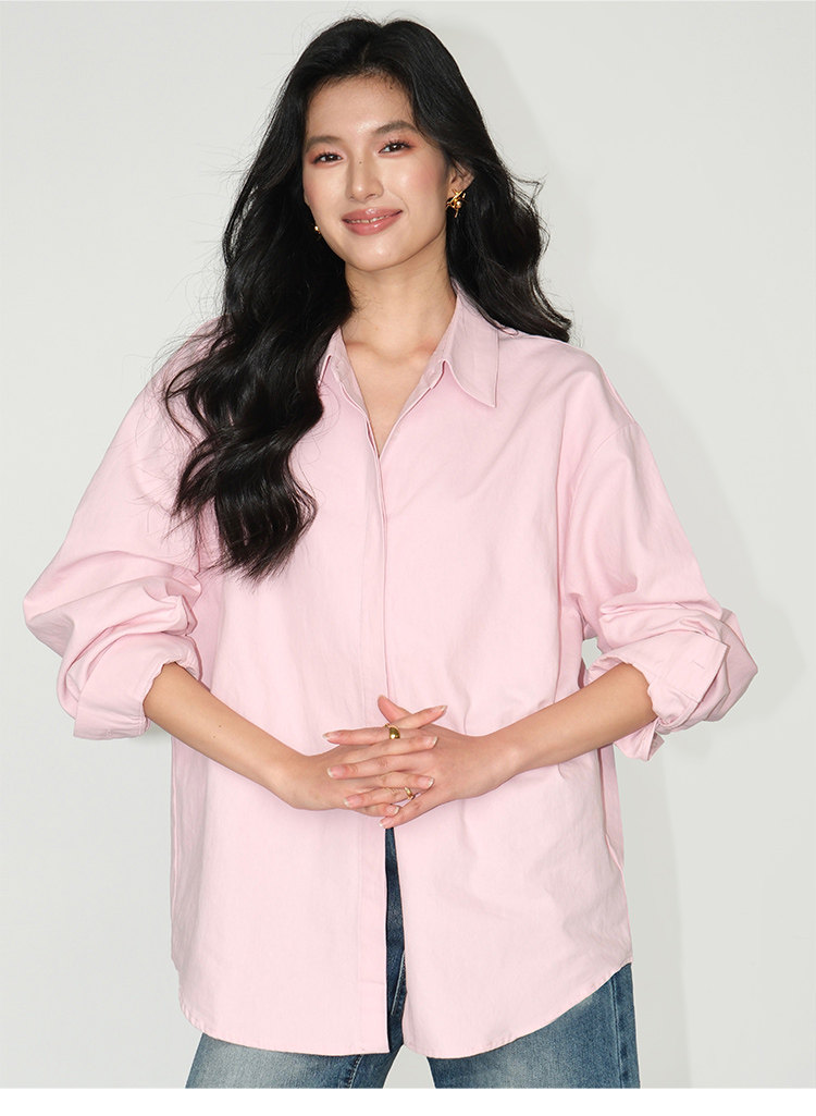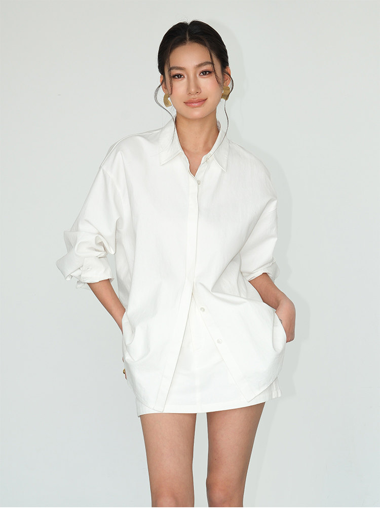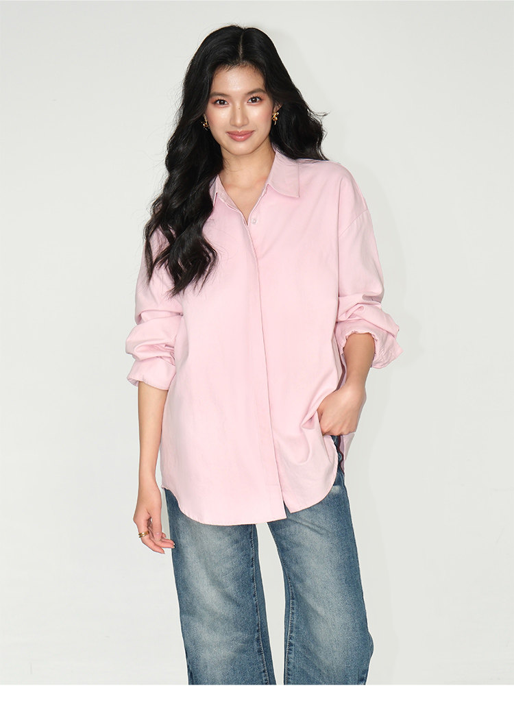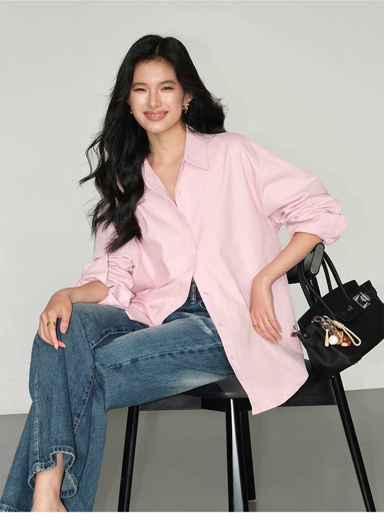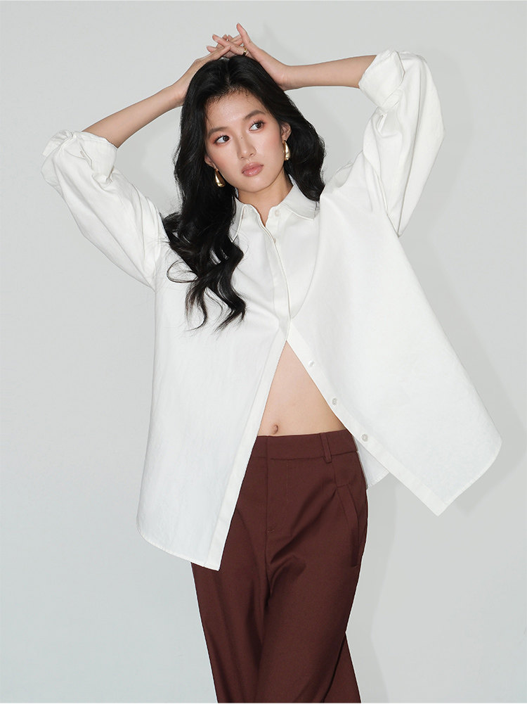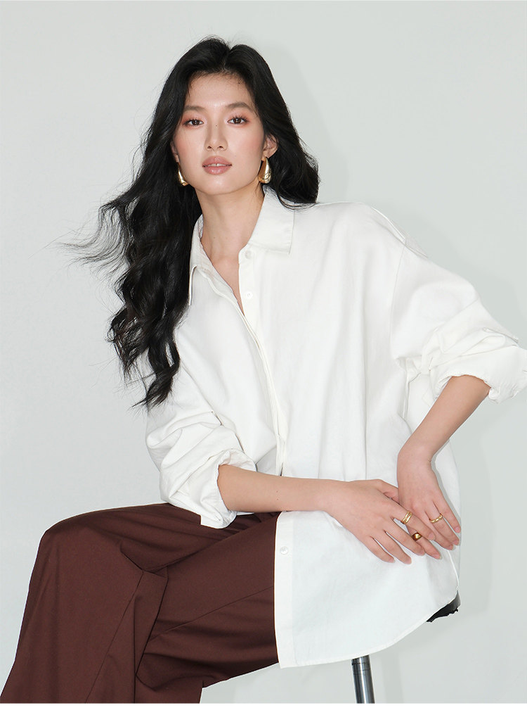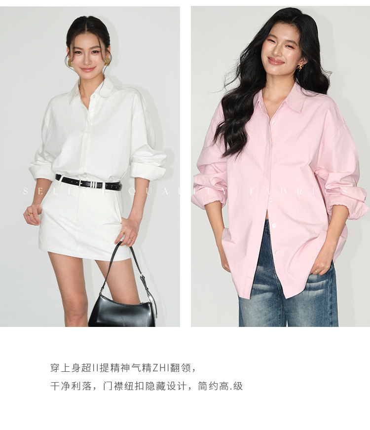 Neva Hu White Long-Sleeved Shirt for Women 2 New Loose Casual Versatile Top Basic Pure Cotton Shirt