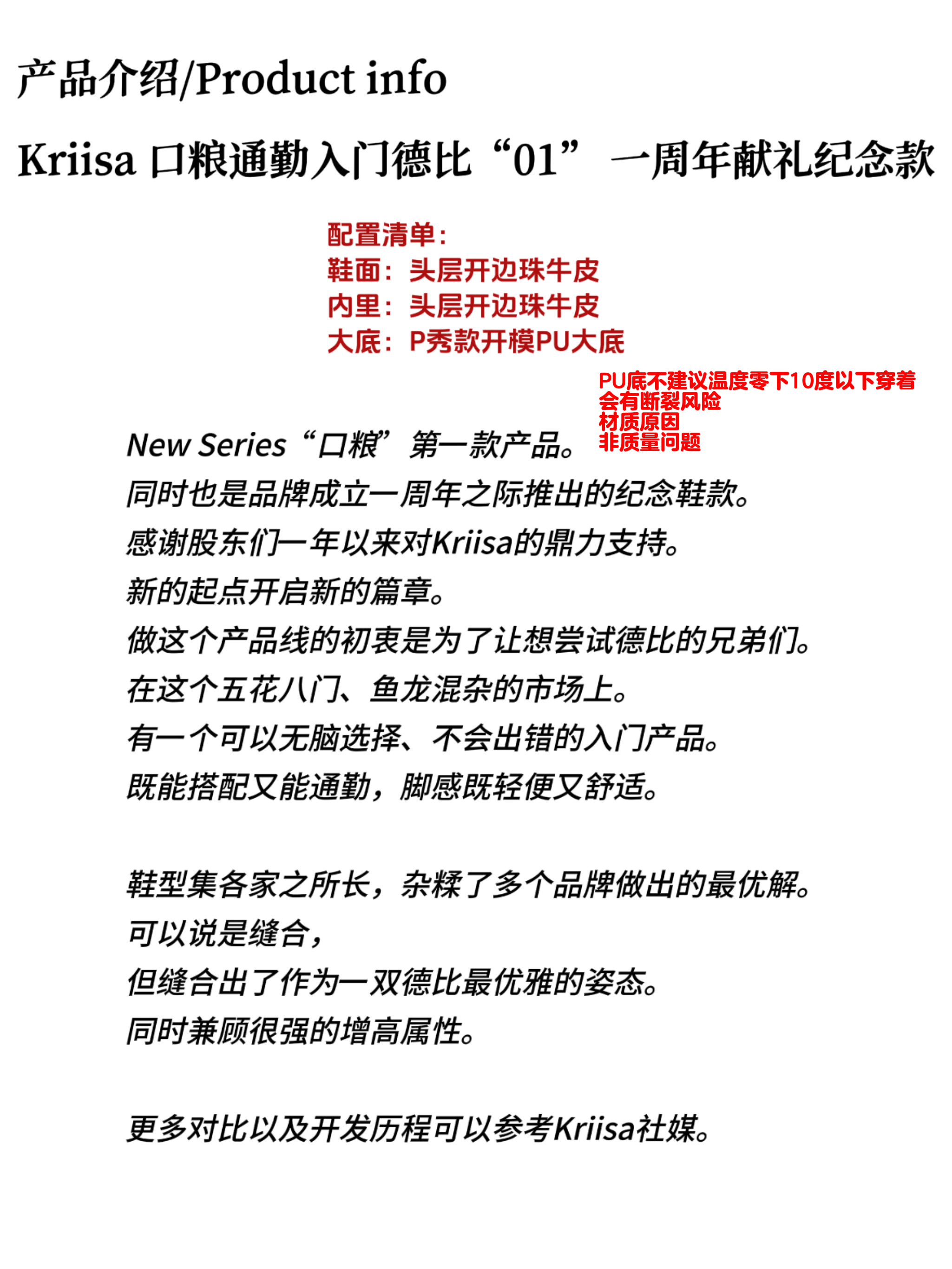 Kriisa "Ration'01" Commuting Beginner Lightweight Round-Toe Derby One-Year Anniversary Commemorative Edition