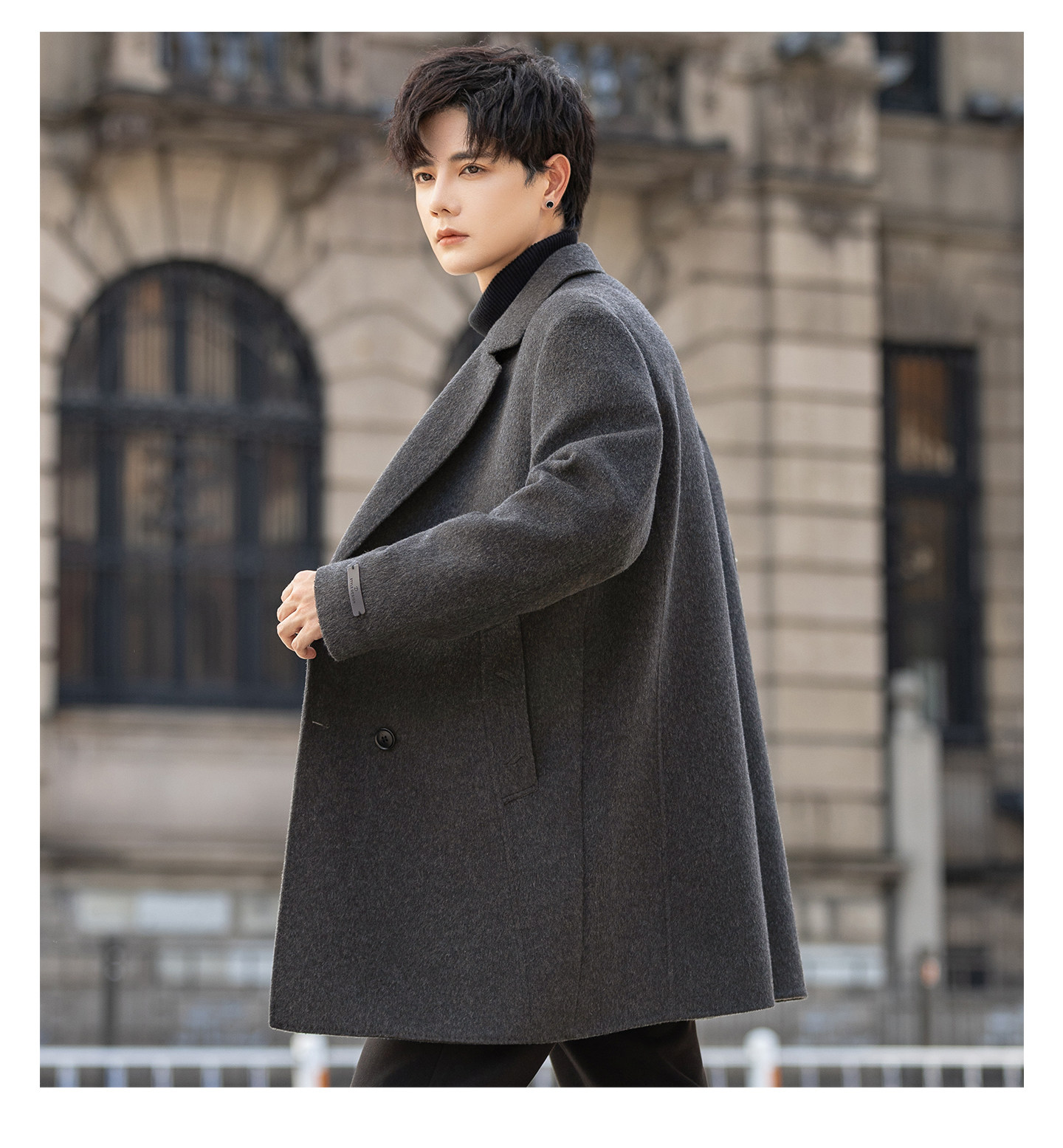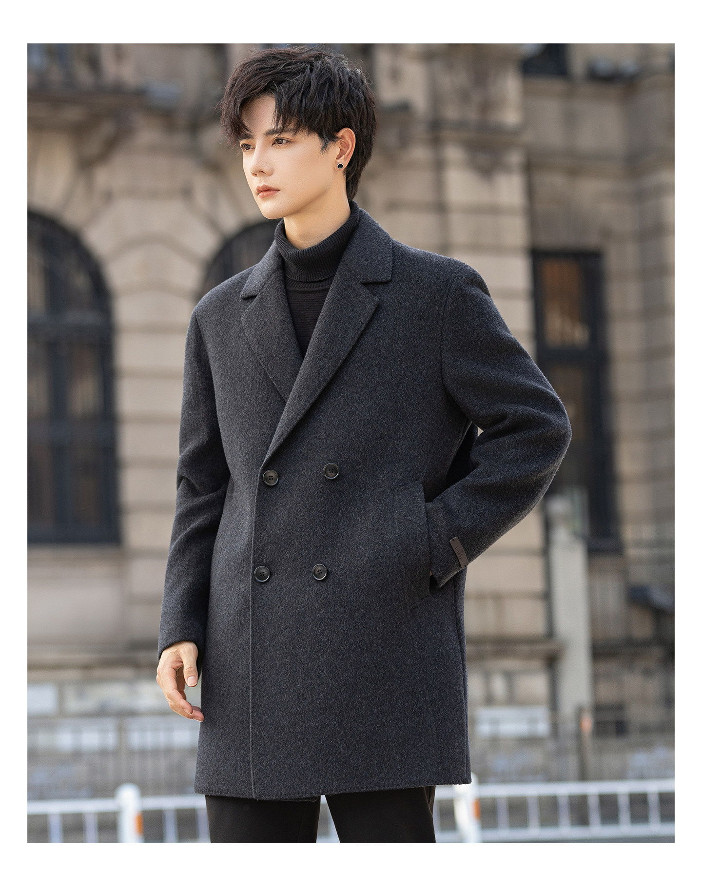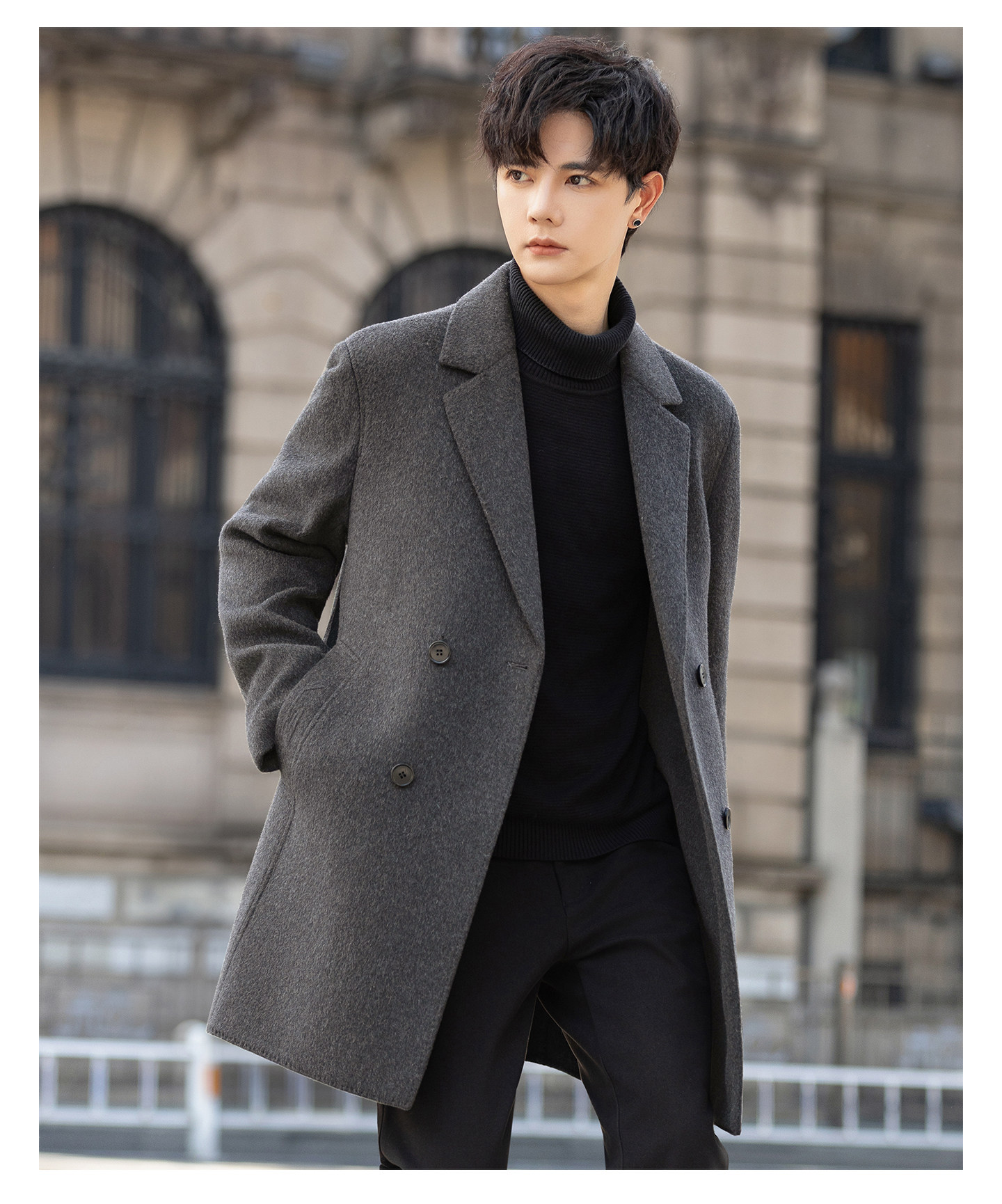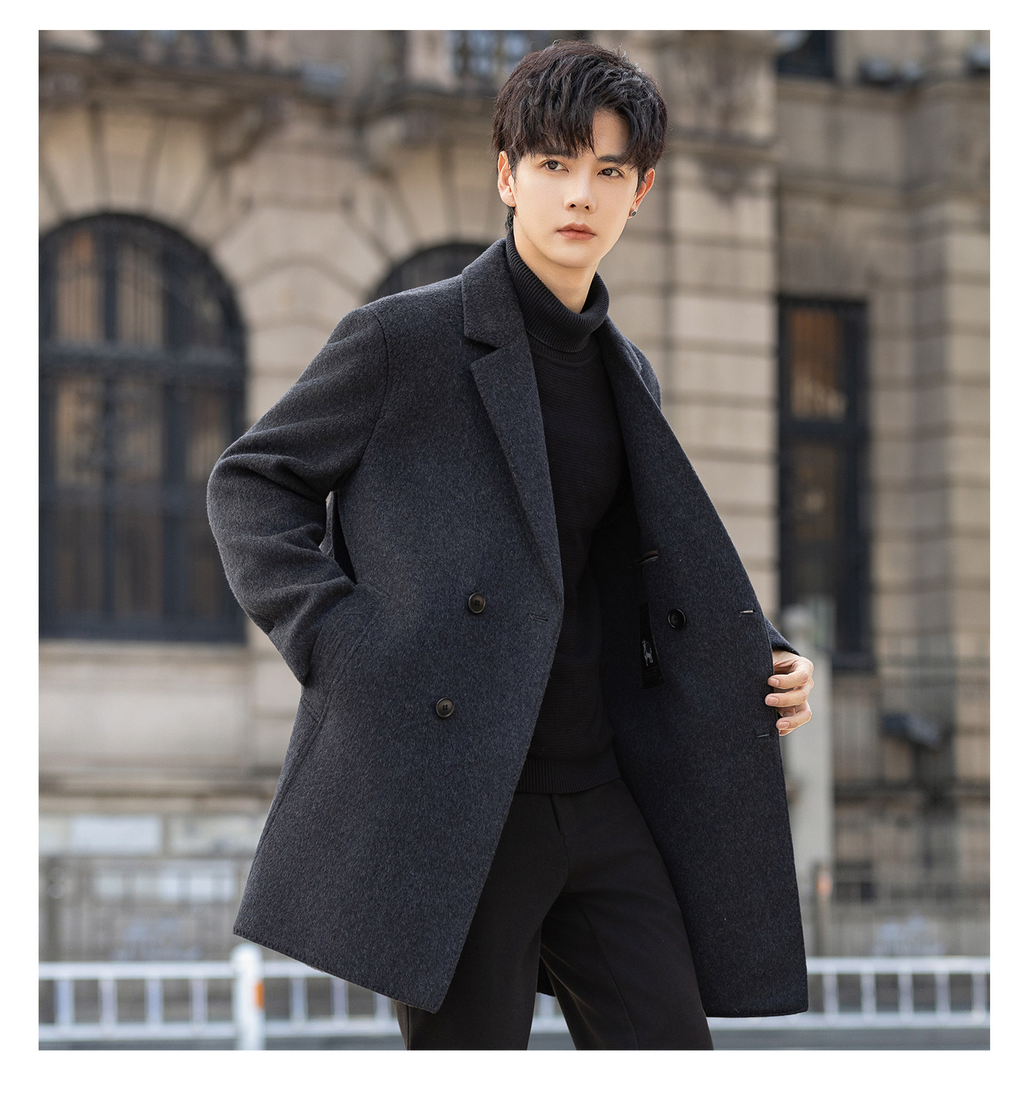 High-End Woolen Coat for Men, Cashmere Overcoat, Mid-Length, Autumn and Winter, Fleece-Lined, Thickened, Double-Sided Wool Trench Coat