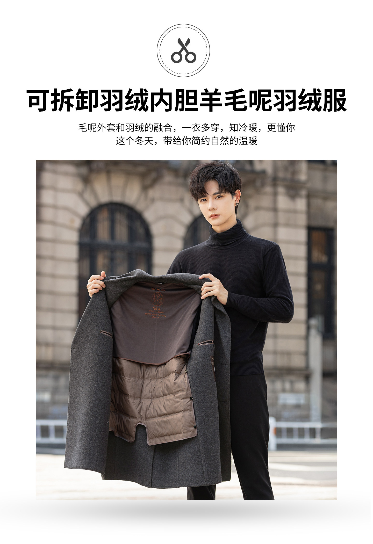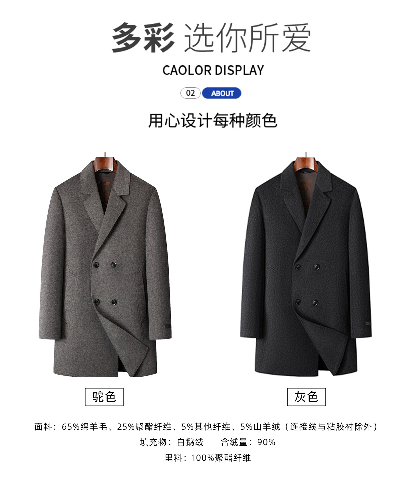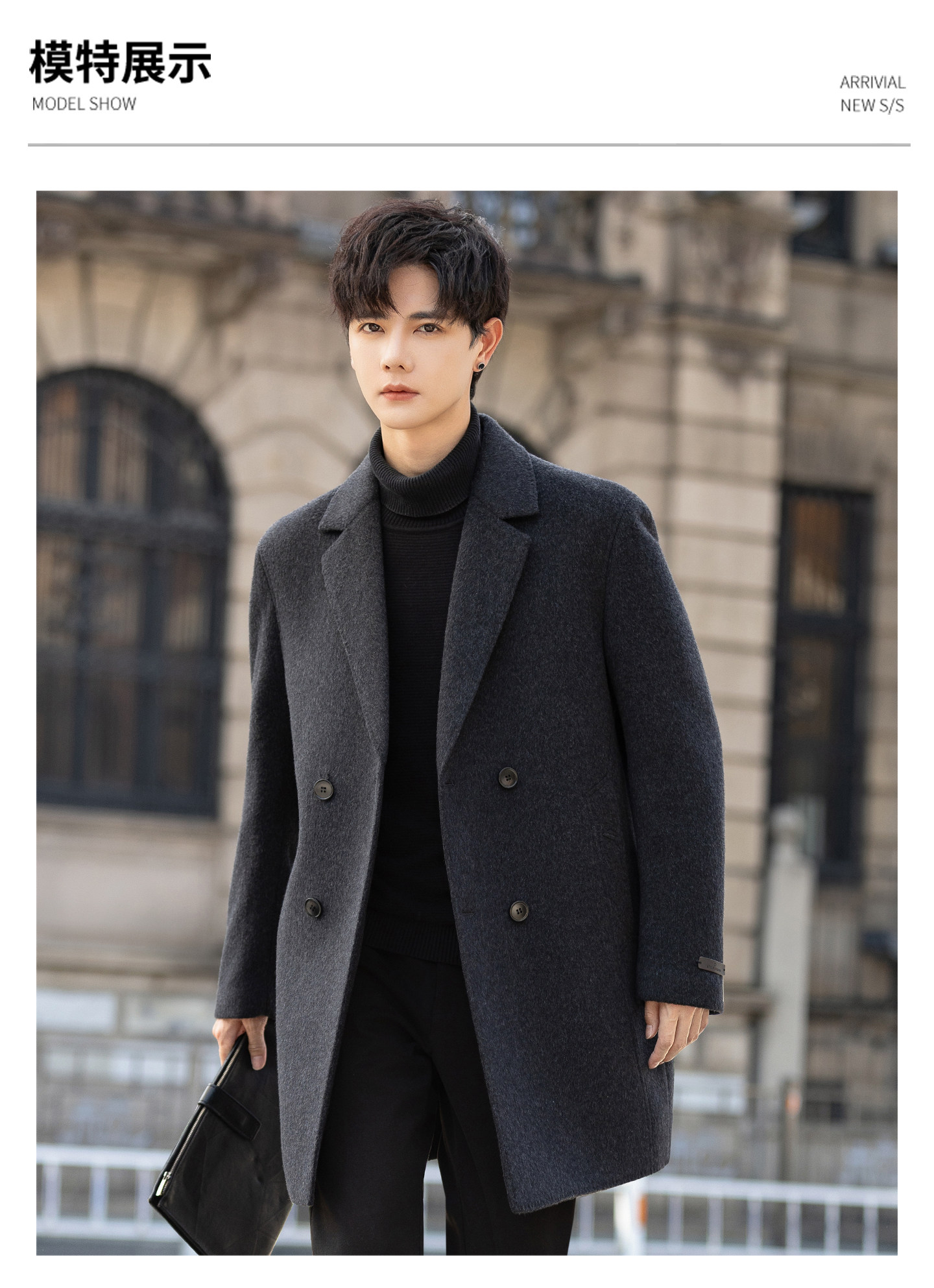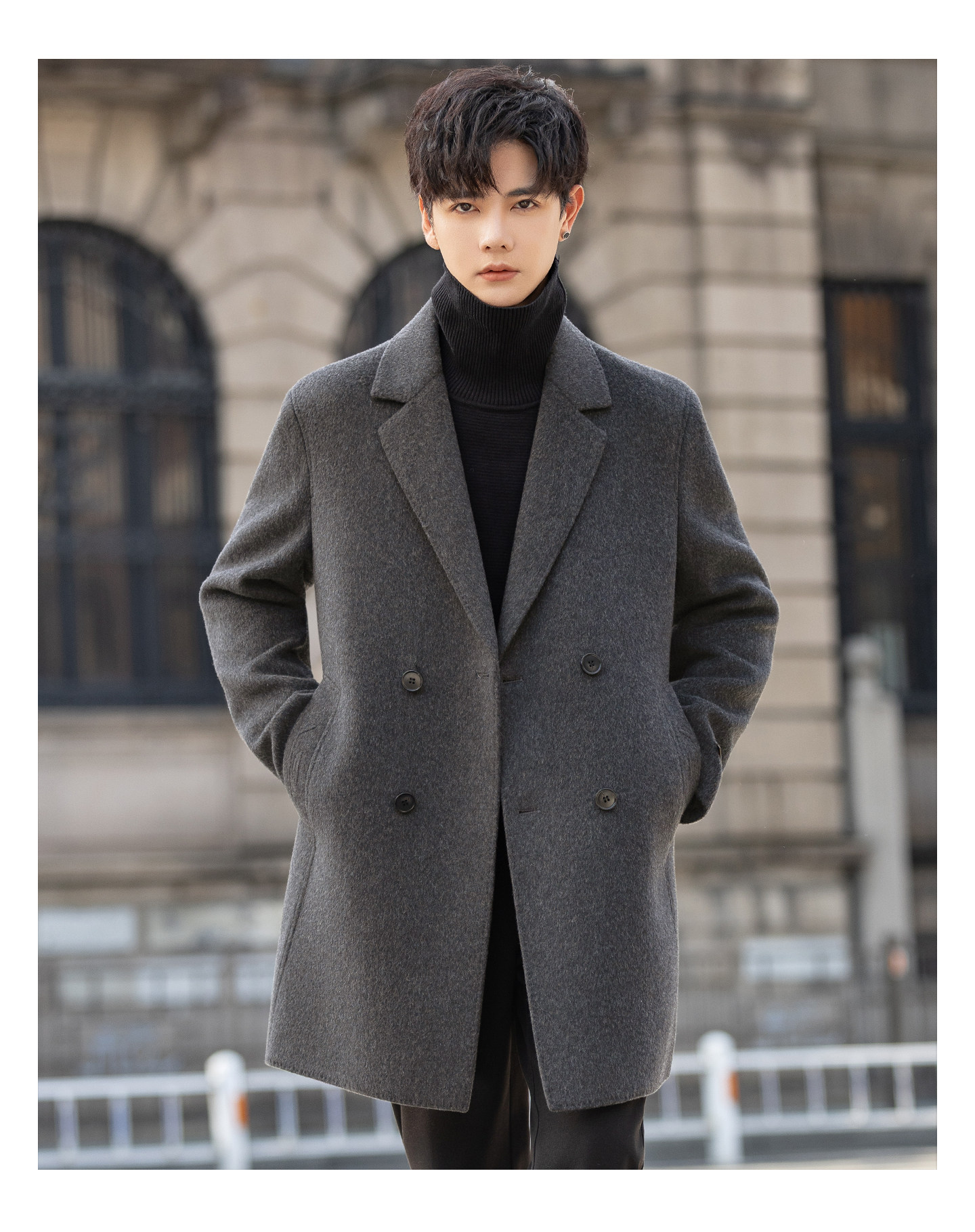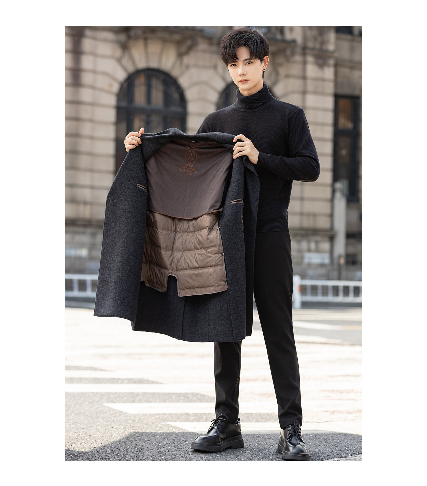 High-End Woolen Coat for Men, Cashmere Overcoat, Mid-Length, Autumn and Winter, Fleece-Lined, Thickened, Double-Sided Wool Trench Coat