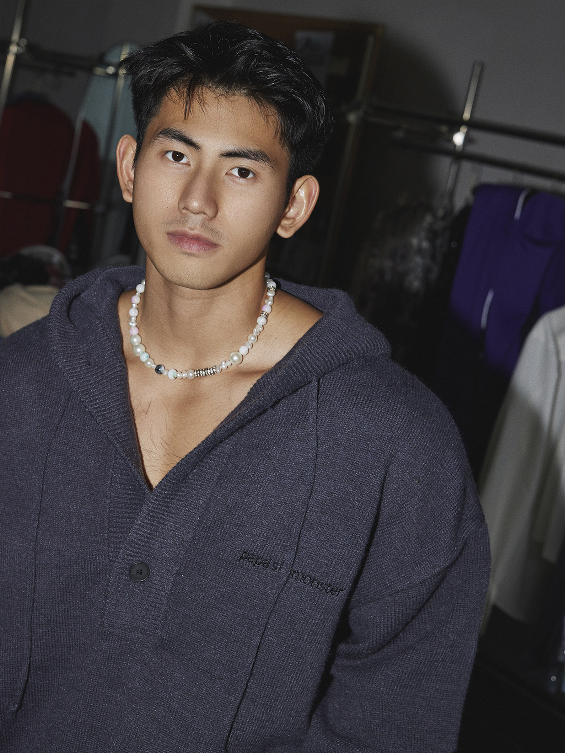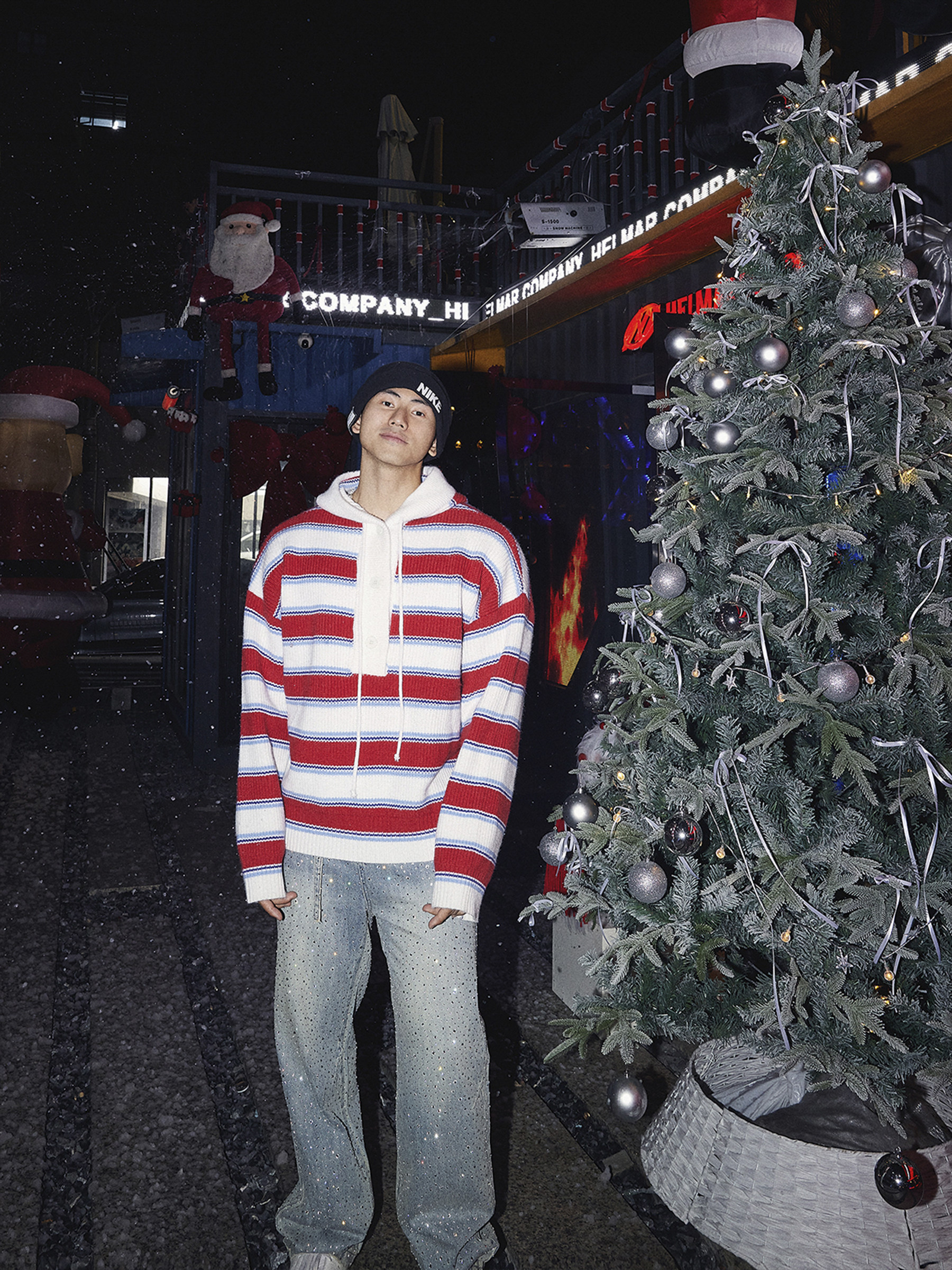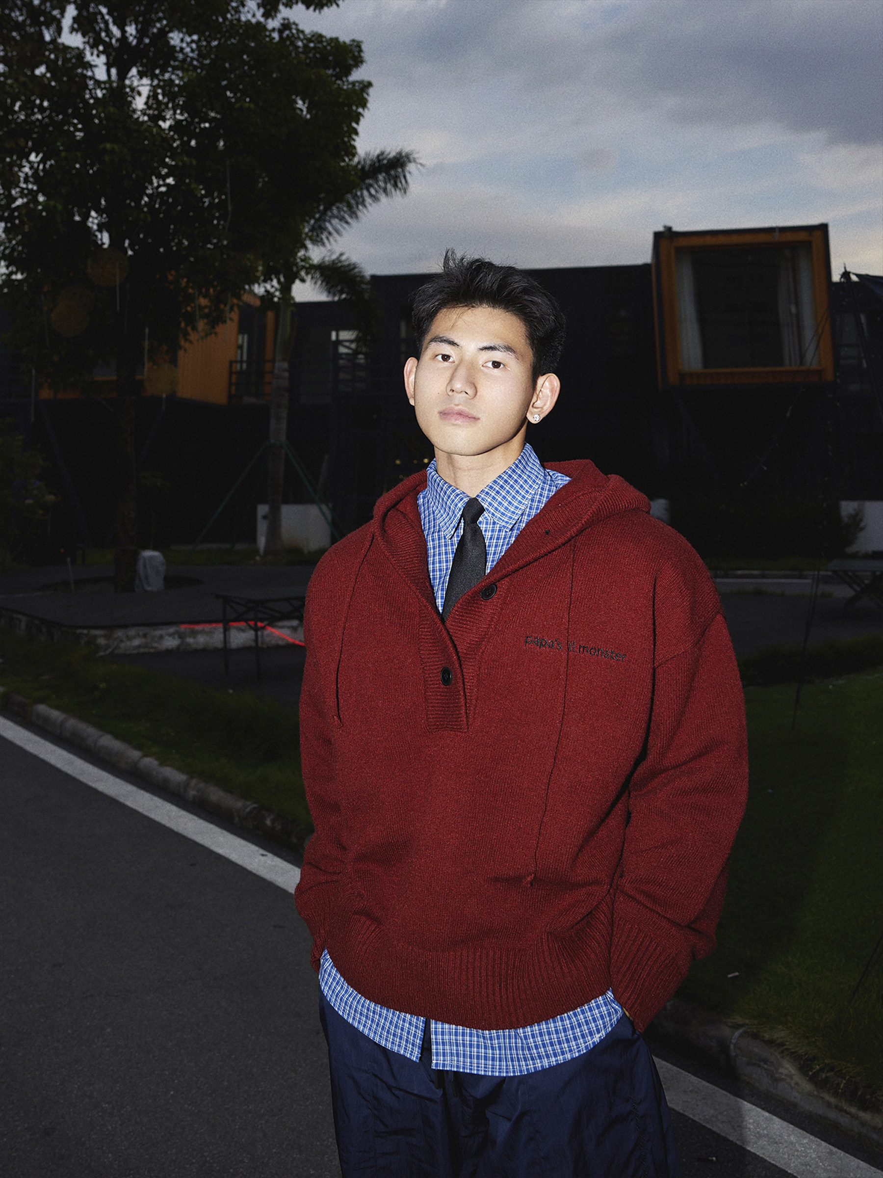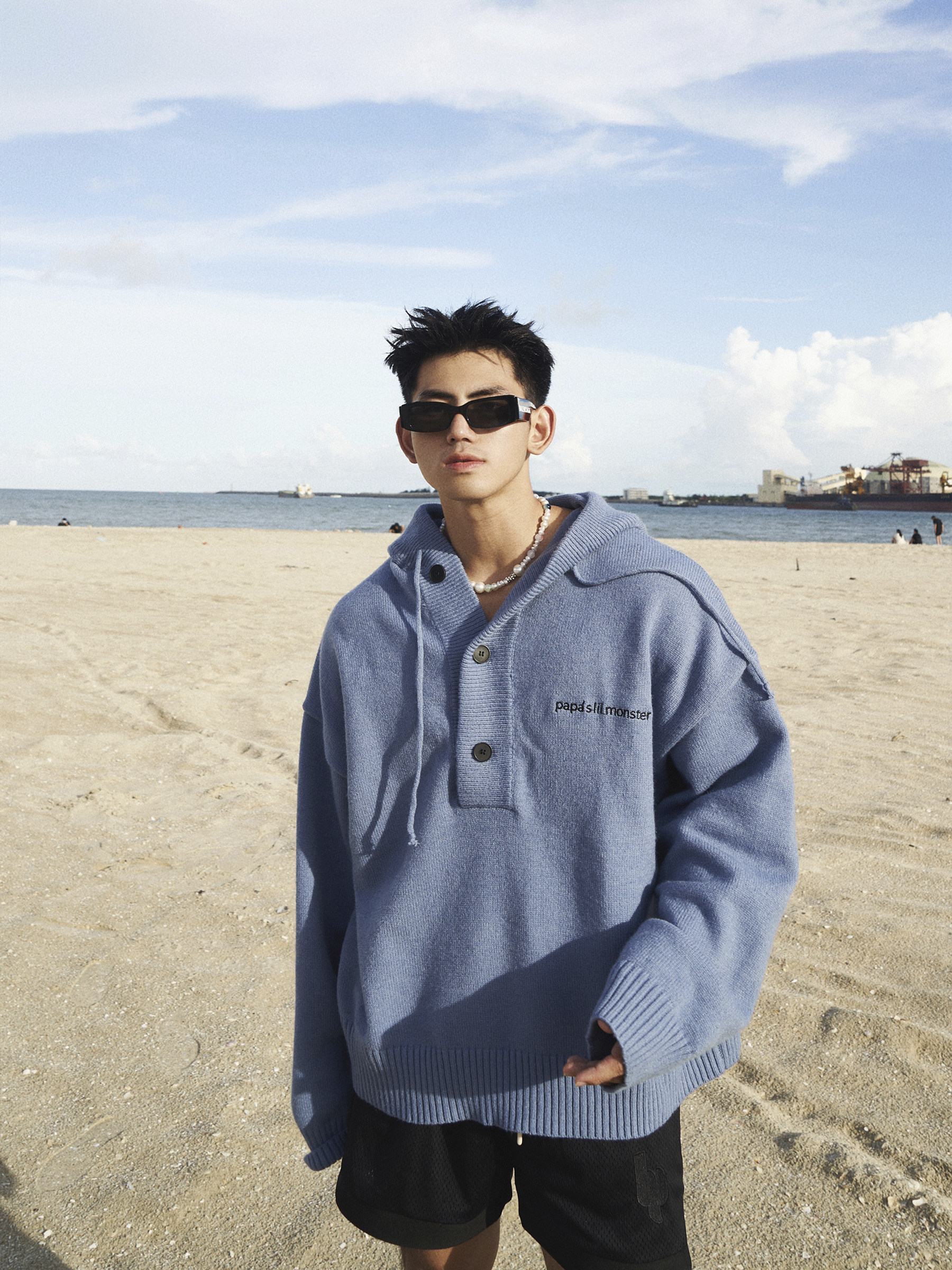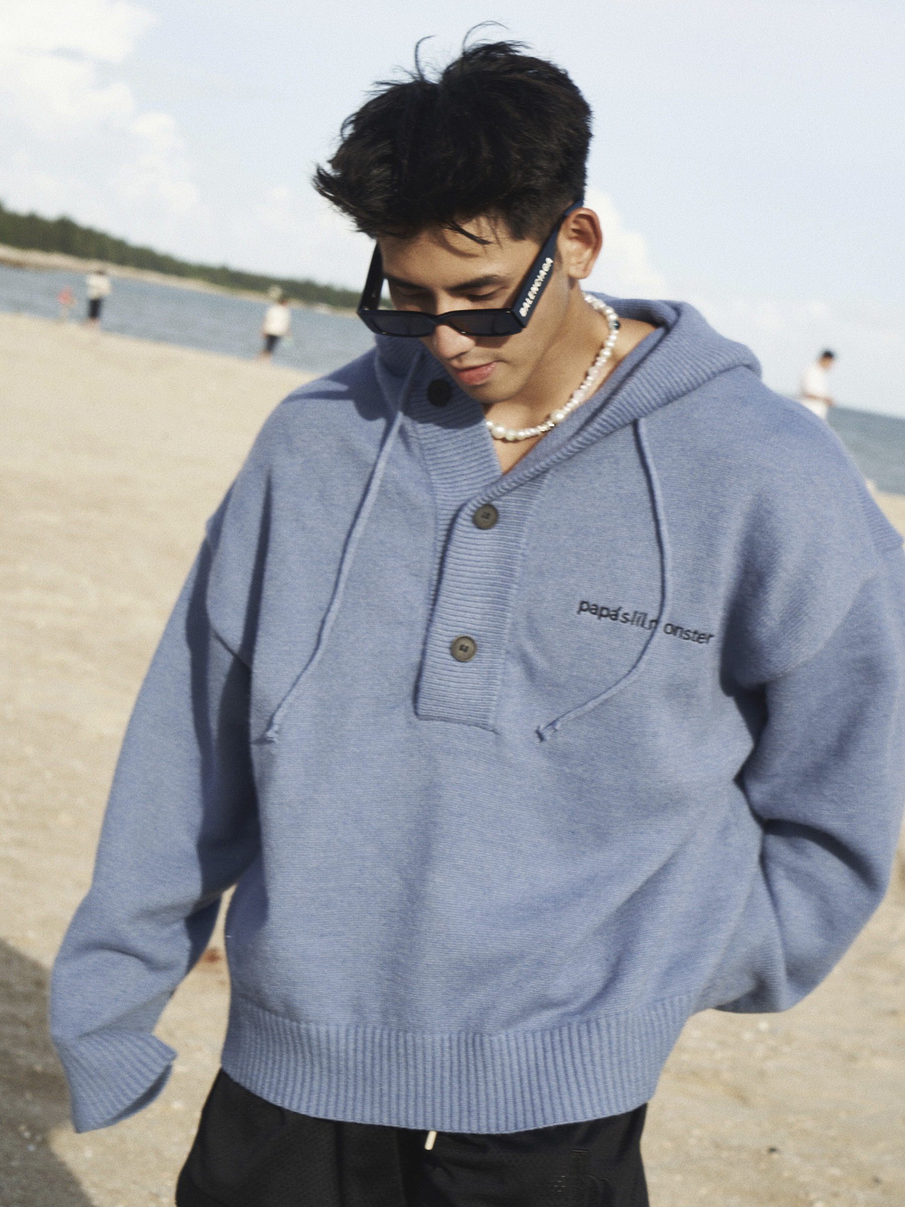 Papaslilmonster【Original】Autumn and Winter Knitted Hooded Sweater American-Style Simple Embroidery Loose and Casual