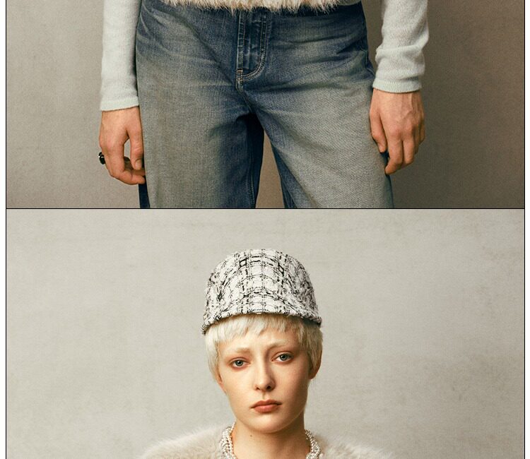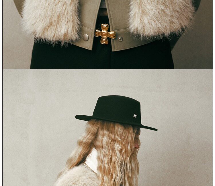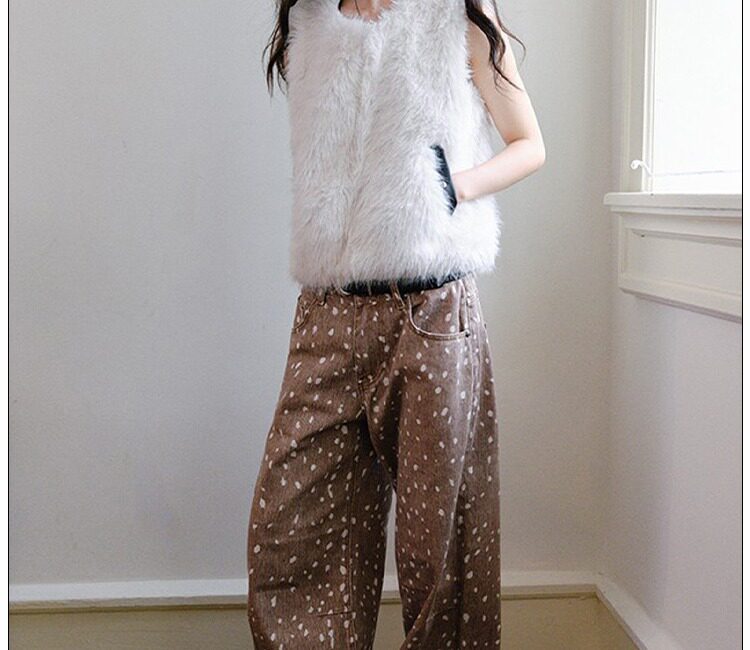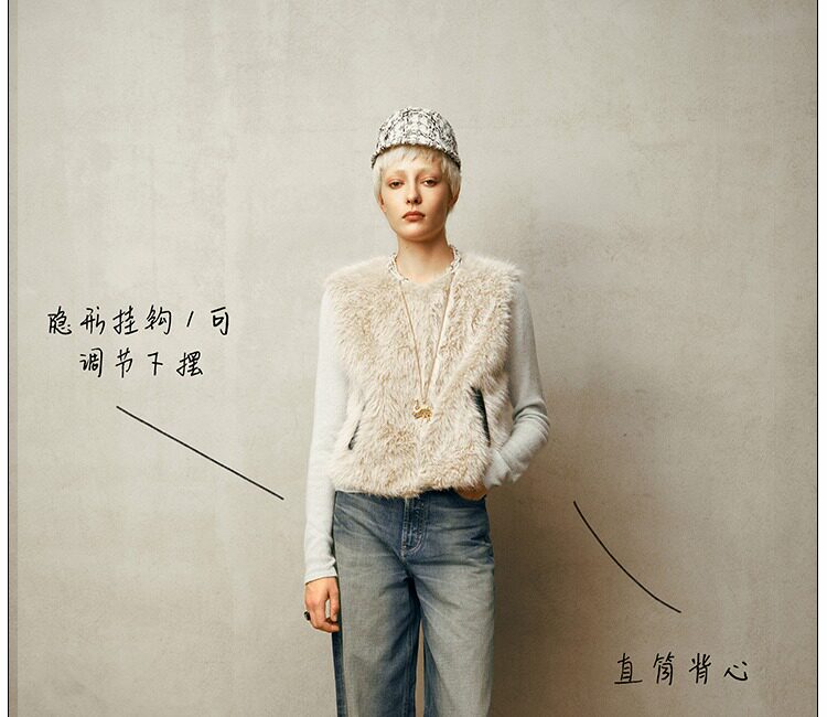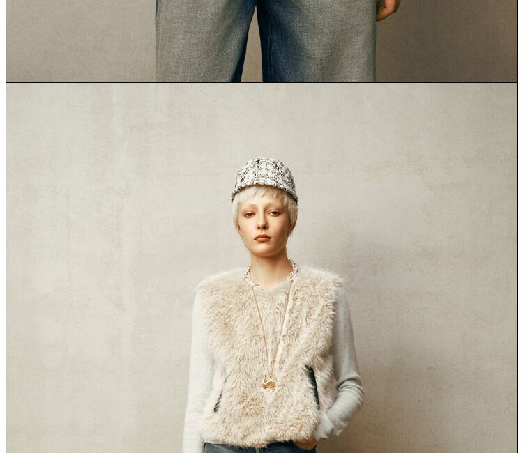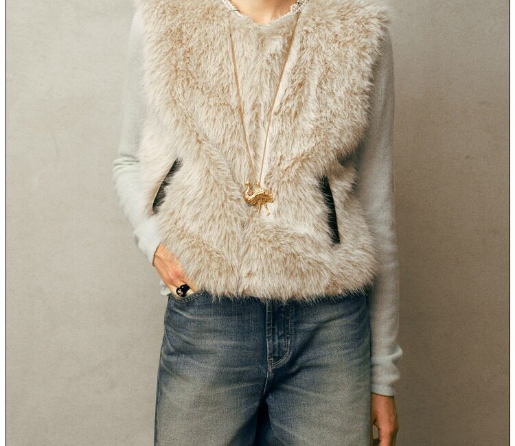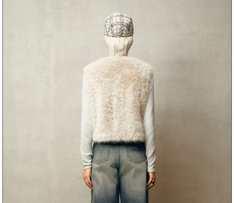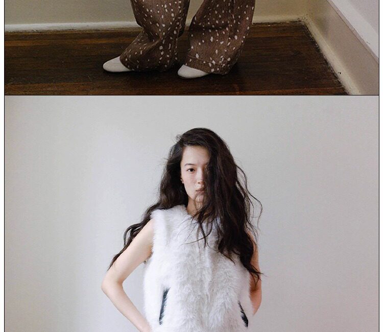 Tokokkino* Is Open during the Spring Festival, Leather Patchwork White Fur Vest