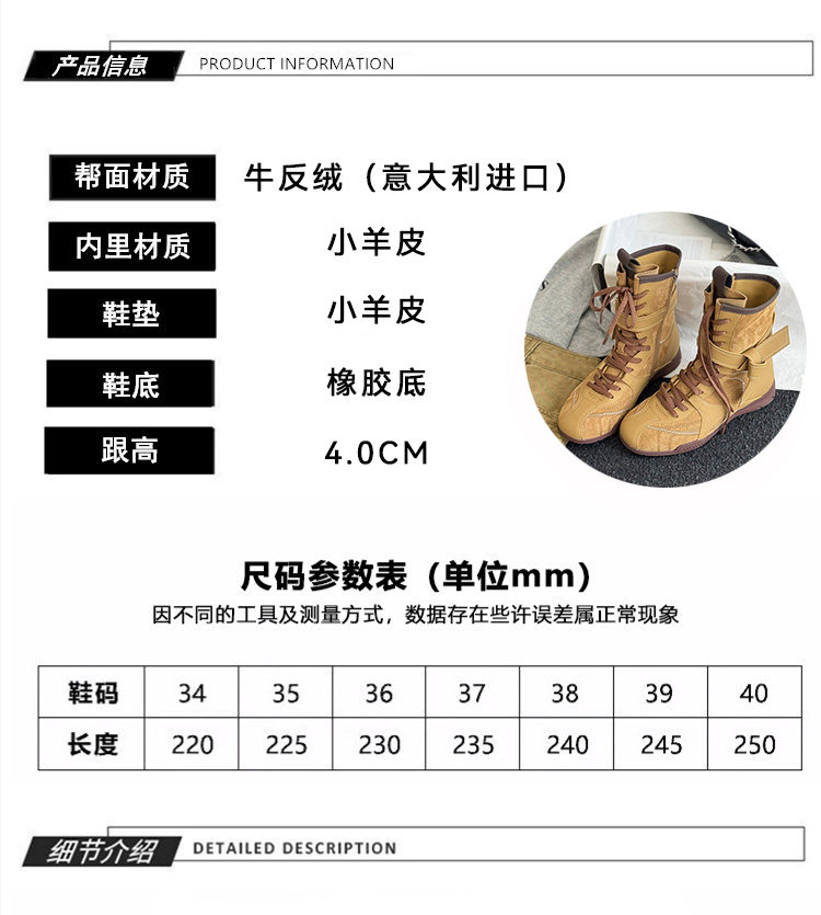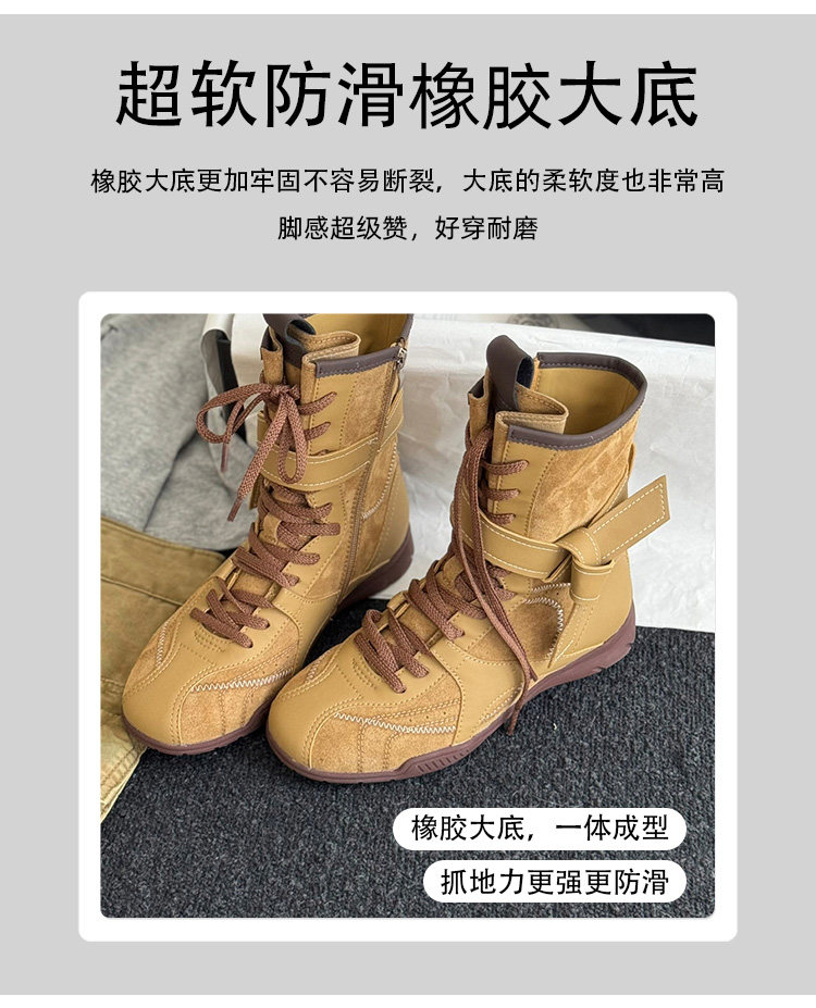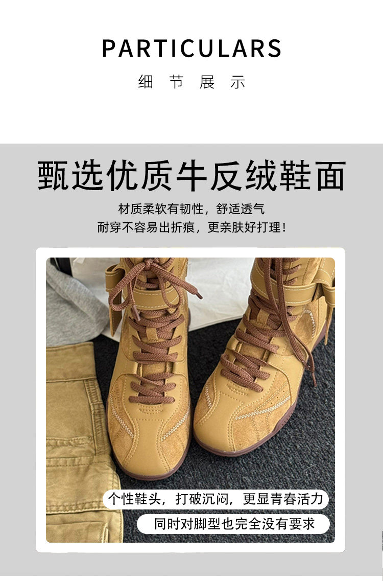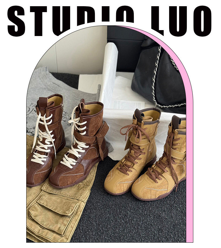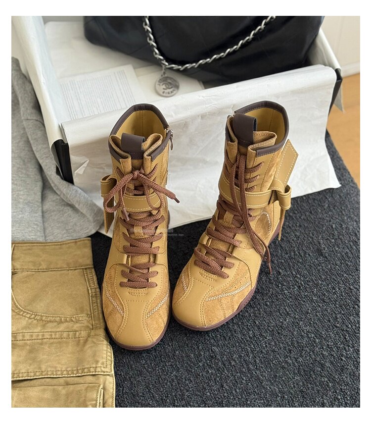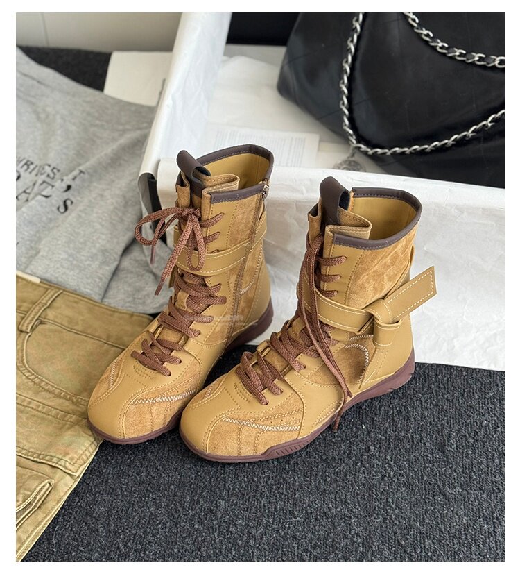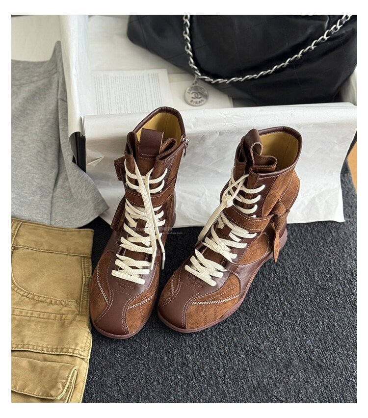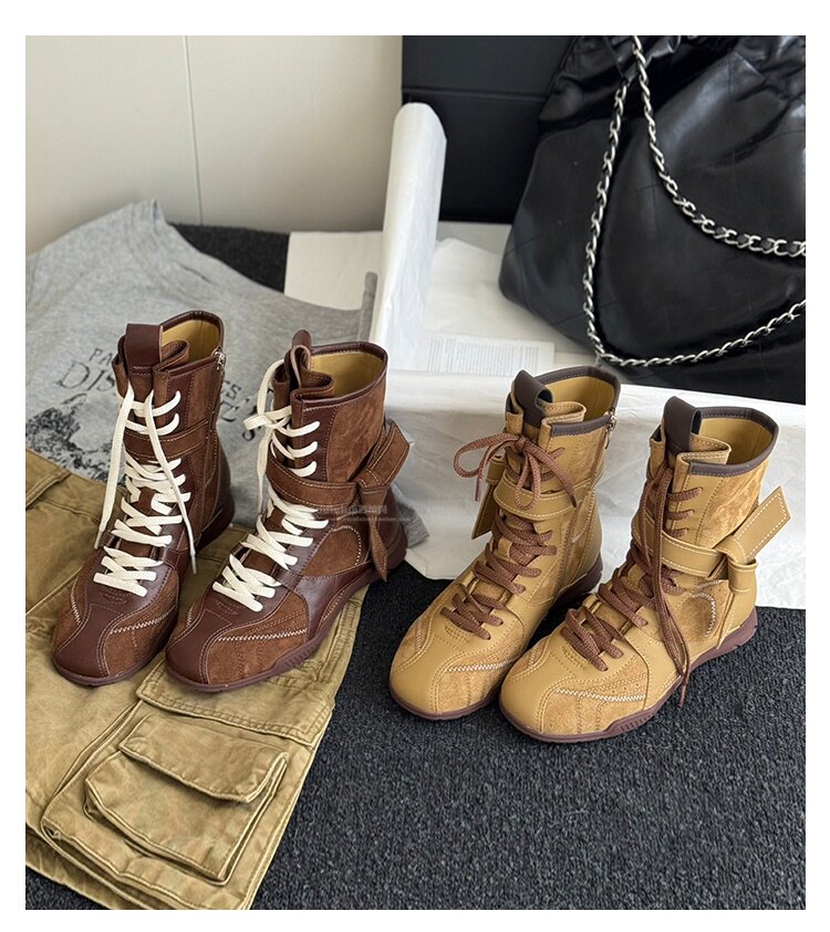 Hong Kong Retro Genuine Leather High-Top German Training Shoes for Women 2026 Spring and Autumn New Style with Hidden Height Increase, Comfortable and Versatile Casual Boxing Boots