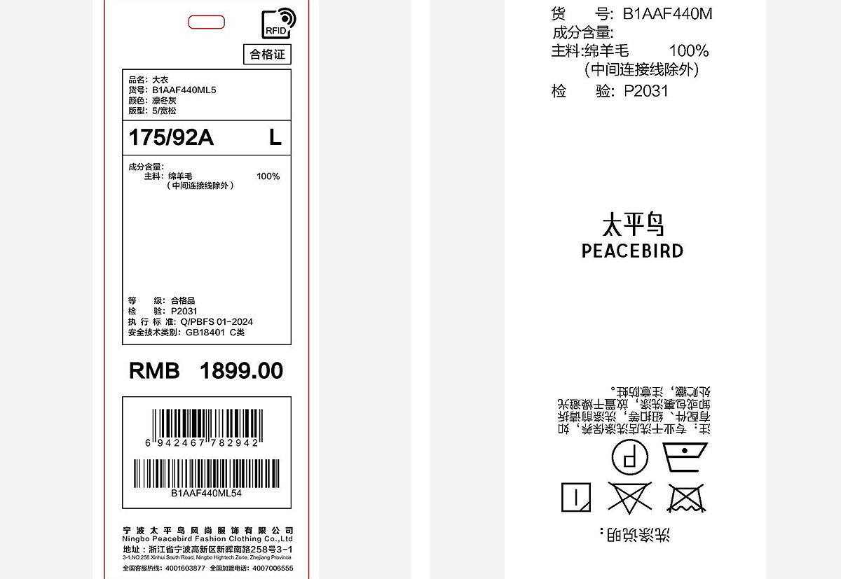 [Same Style as in the Mall] Peacebird Men's Woolen Coat 25 Winter New Style Textured Sheep Wool B1Aaf440M@
