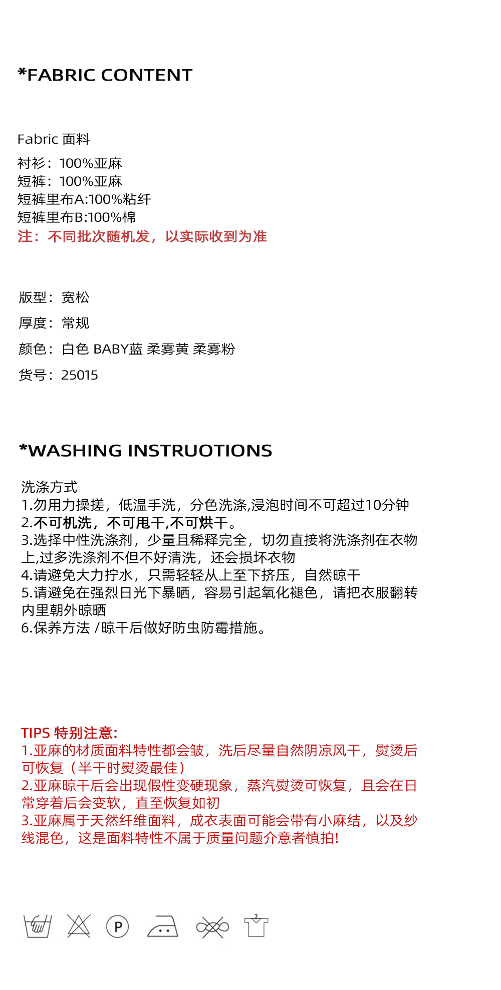 Countonme Relaxed Summer/Lazy Casual Style All-Linen Loose Shirt/Shorts Set