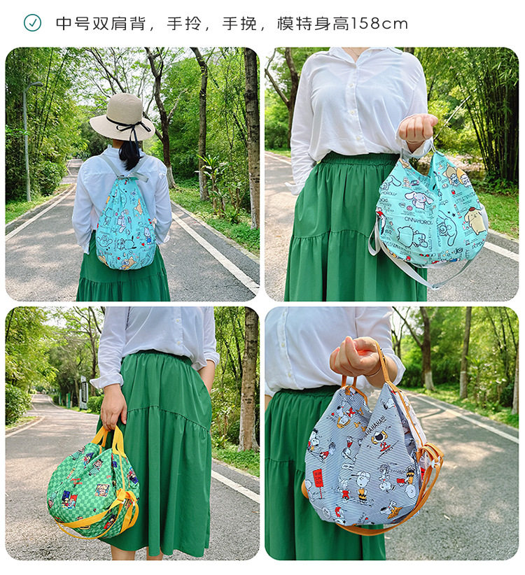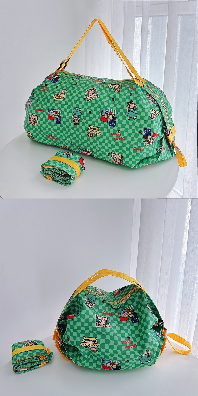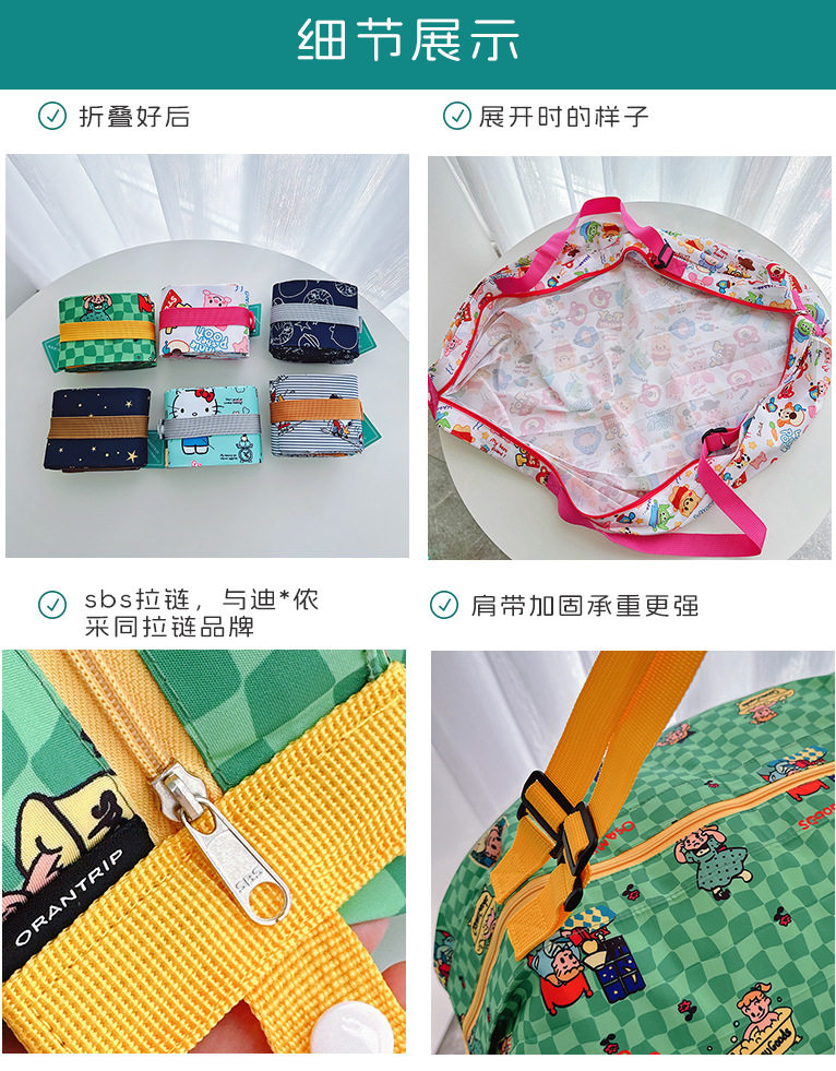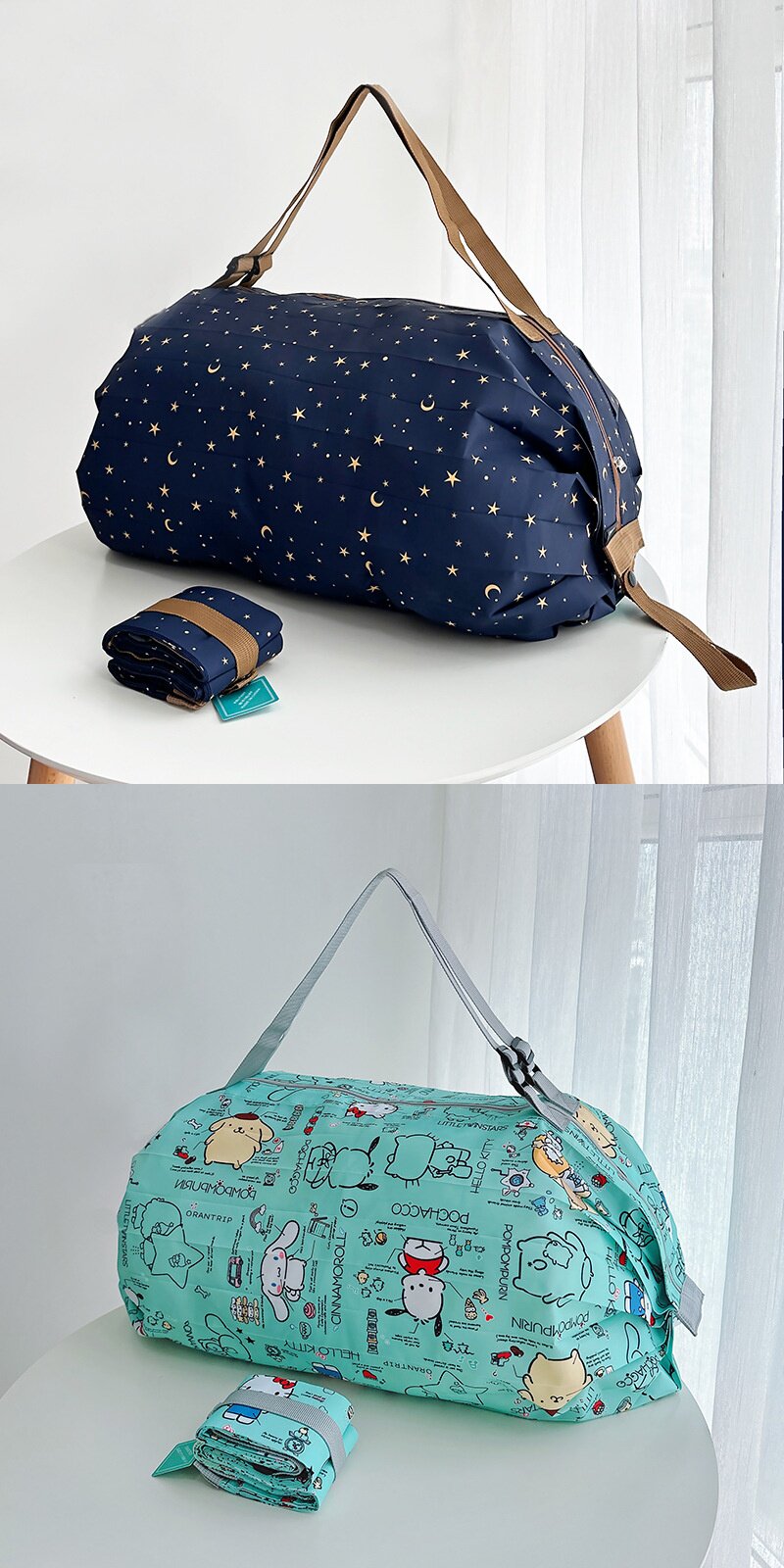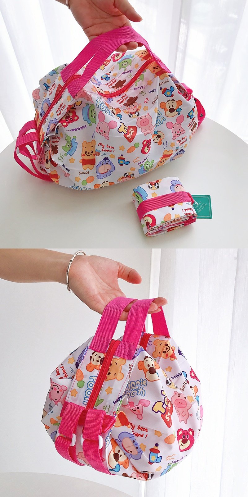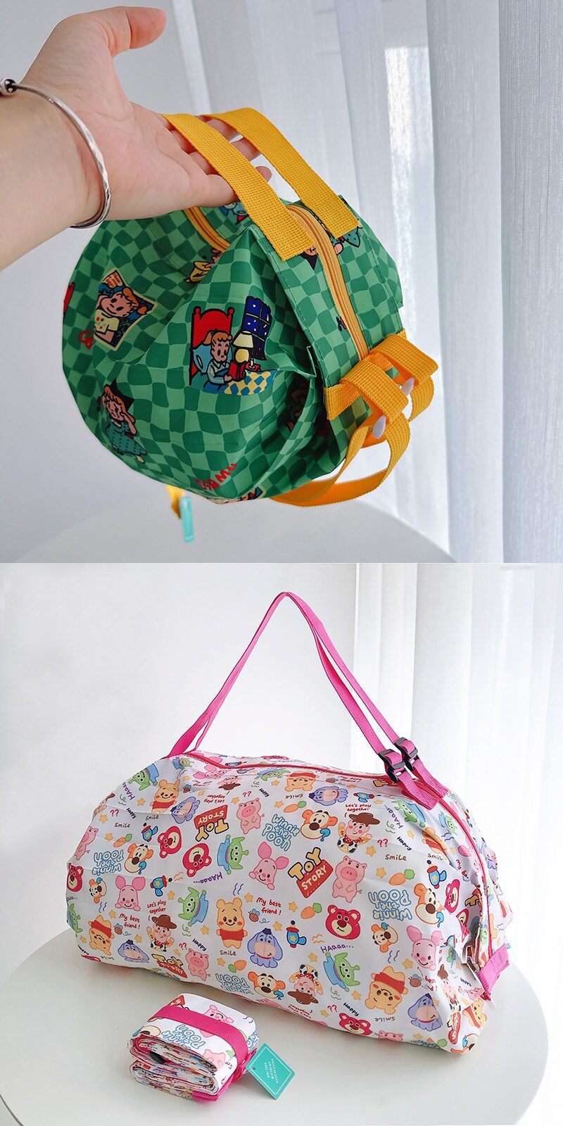 Mini Small Cartoon Foldable Eco-Friendly Accordion Pleated Fabric Bag, Hand-Held, Double-Shoulder, Single-Shoulder, Travel, Large Capacity, Sturdy Fabric Bag