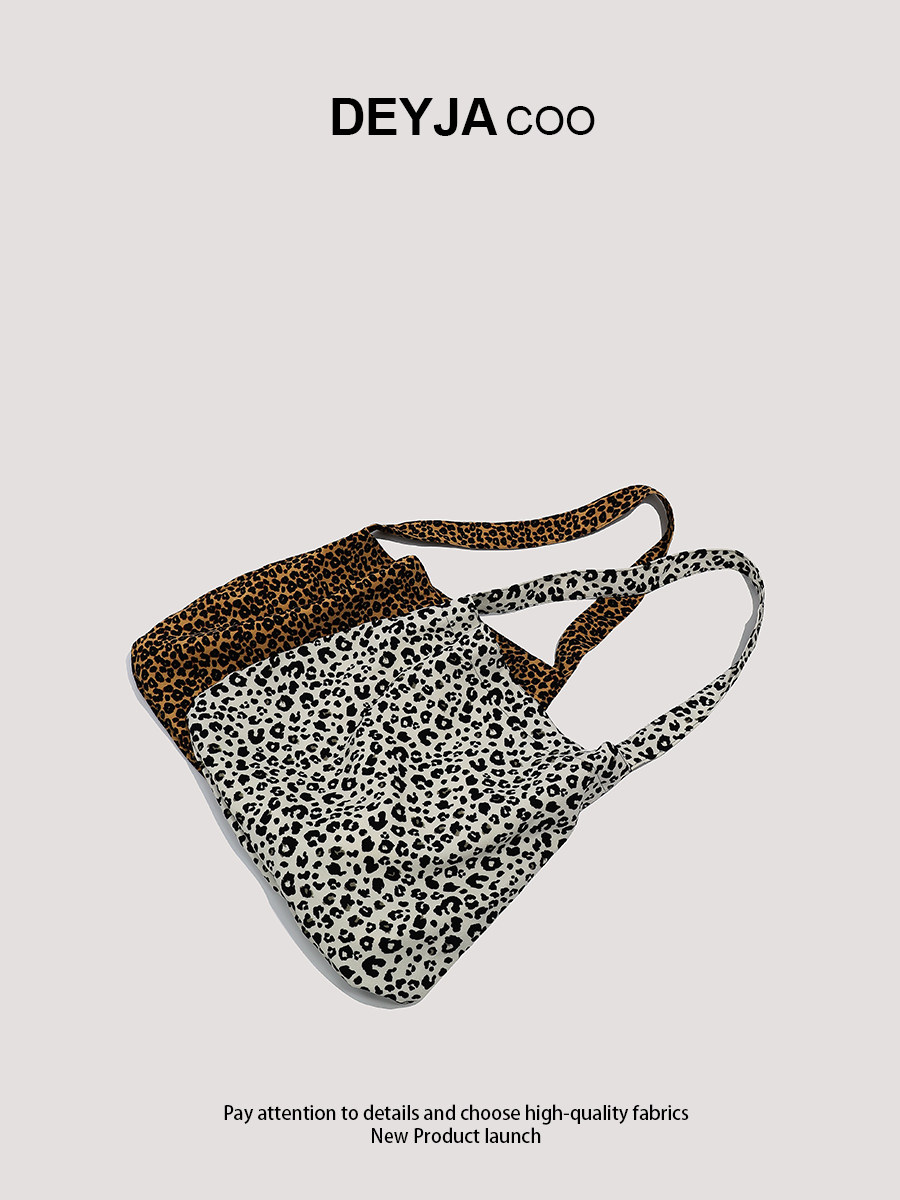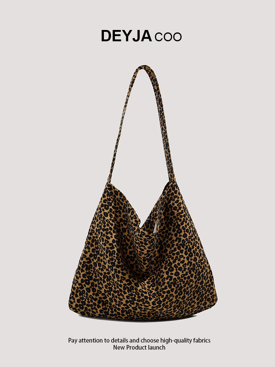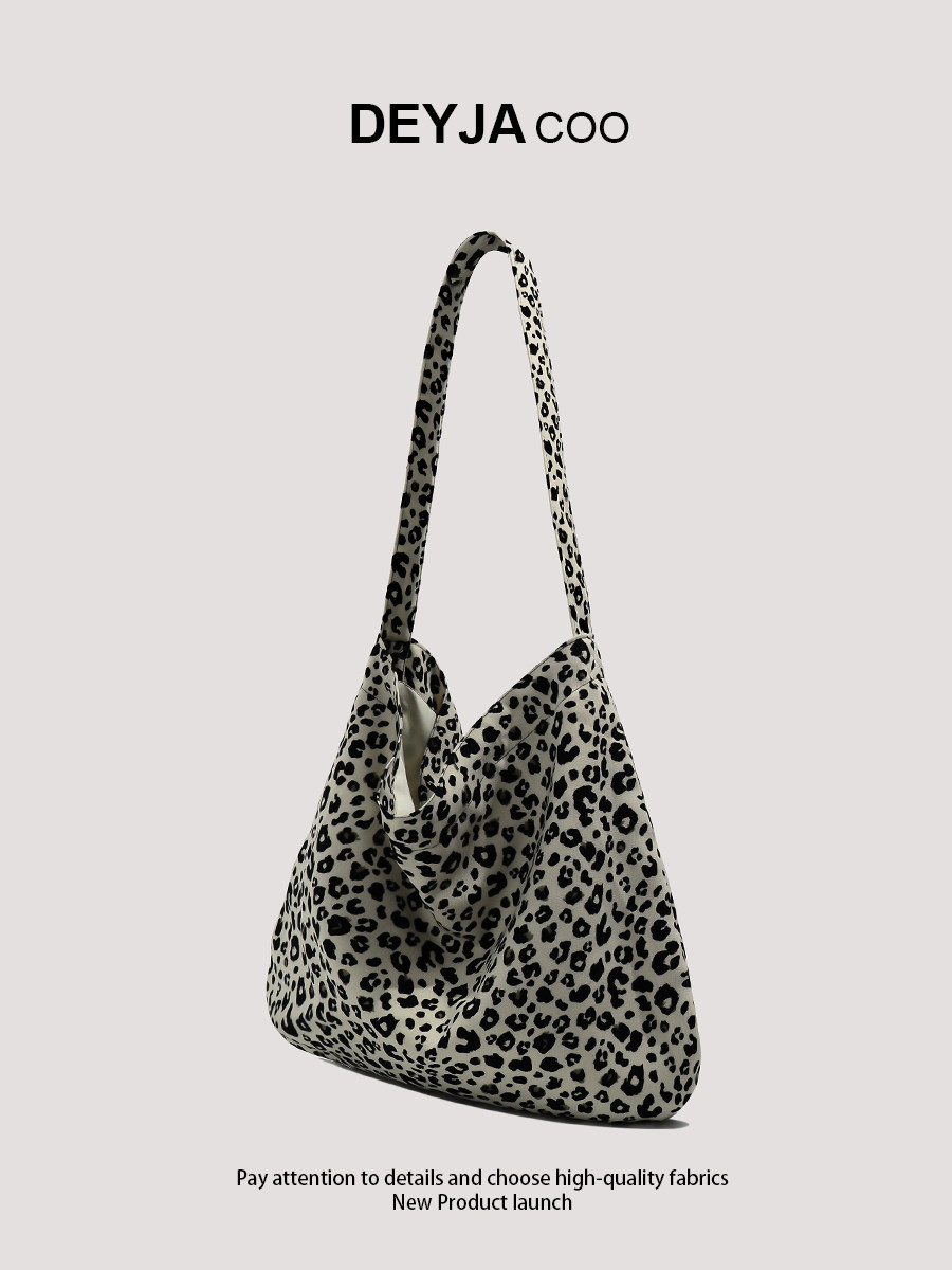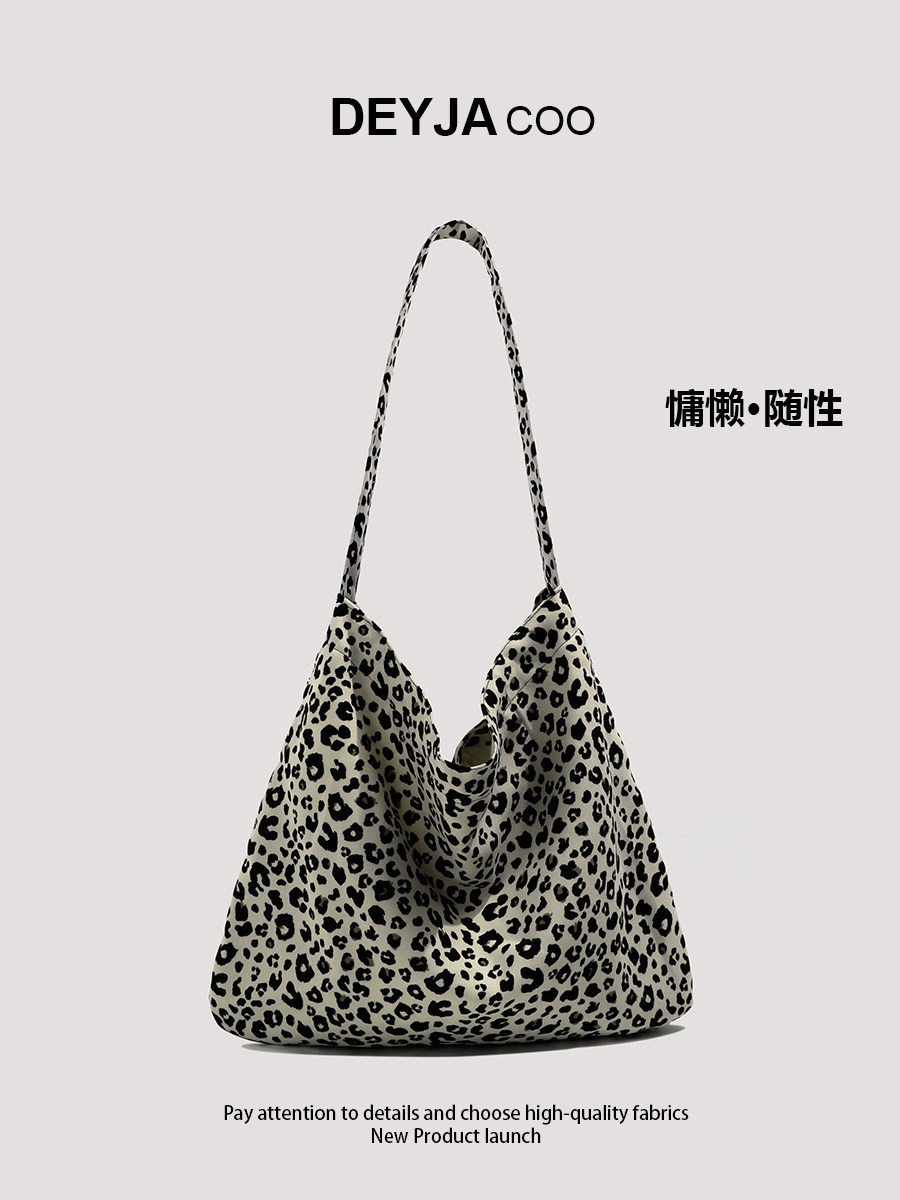 Korean-Style Bag with a Lazy Vibe, Leopard Print Canvas Bag, Zhang Ruonan's Same Style Crossbody Bag, Large Capacity Work and Commuting Shoulder Bag