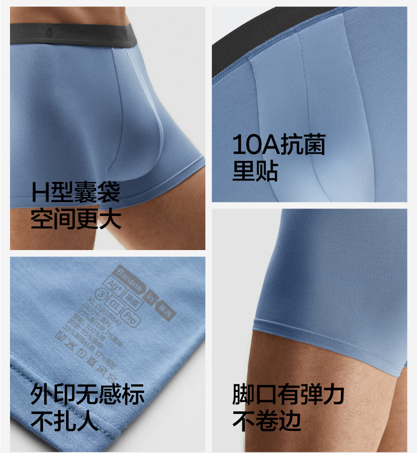 Bananain 301P Men's Underwear Antibacterial Modal Boxer Briefs Large Size Pure Cotton Breathable Crotch Boxer Shorts for Boys