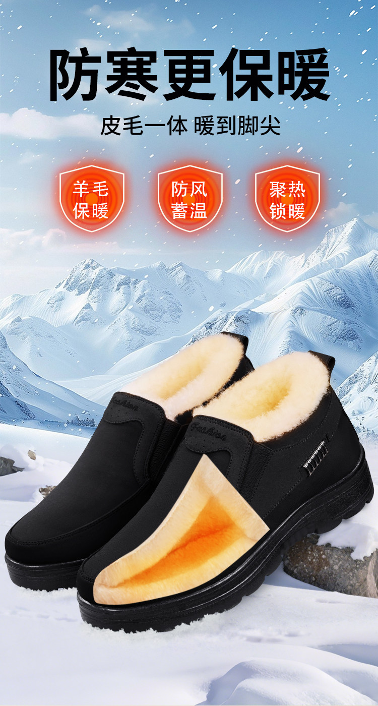 Old Beijing Cloth Shoes for Men, Genuine Winter New Model, Fleece-Lined, Thickened, Wool, Warm, Non-Slip, Middle-Aged and Elderly Dad's Snow Boots