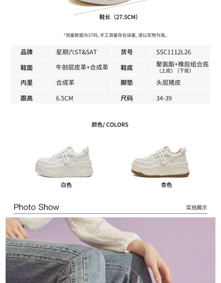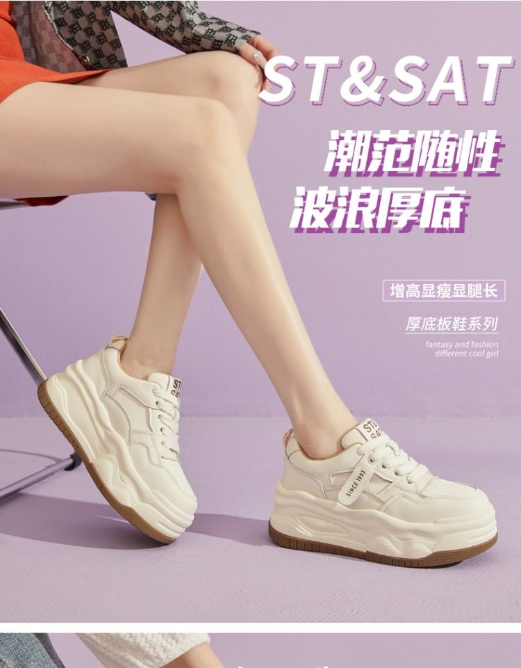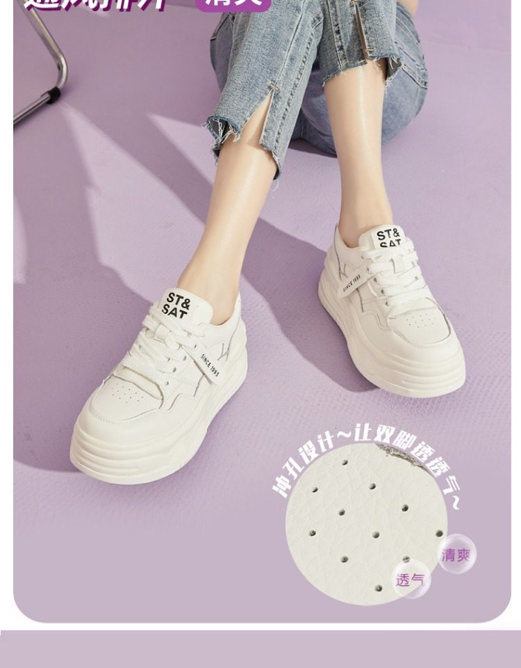 Saturday Thick-Soled White Sneakers for Women, Spring New Fashion Casual Sneakers, Women's Shoes That Make Feet Look Smaller, Versatile Sports Shoes