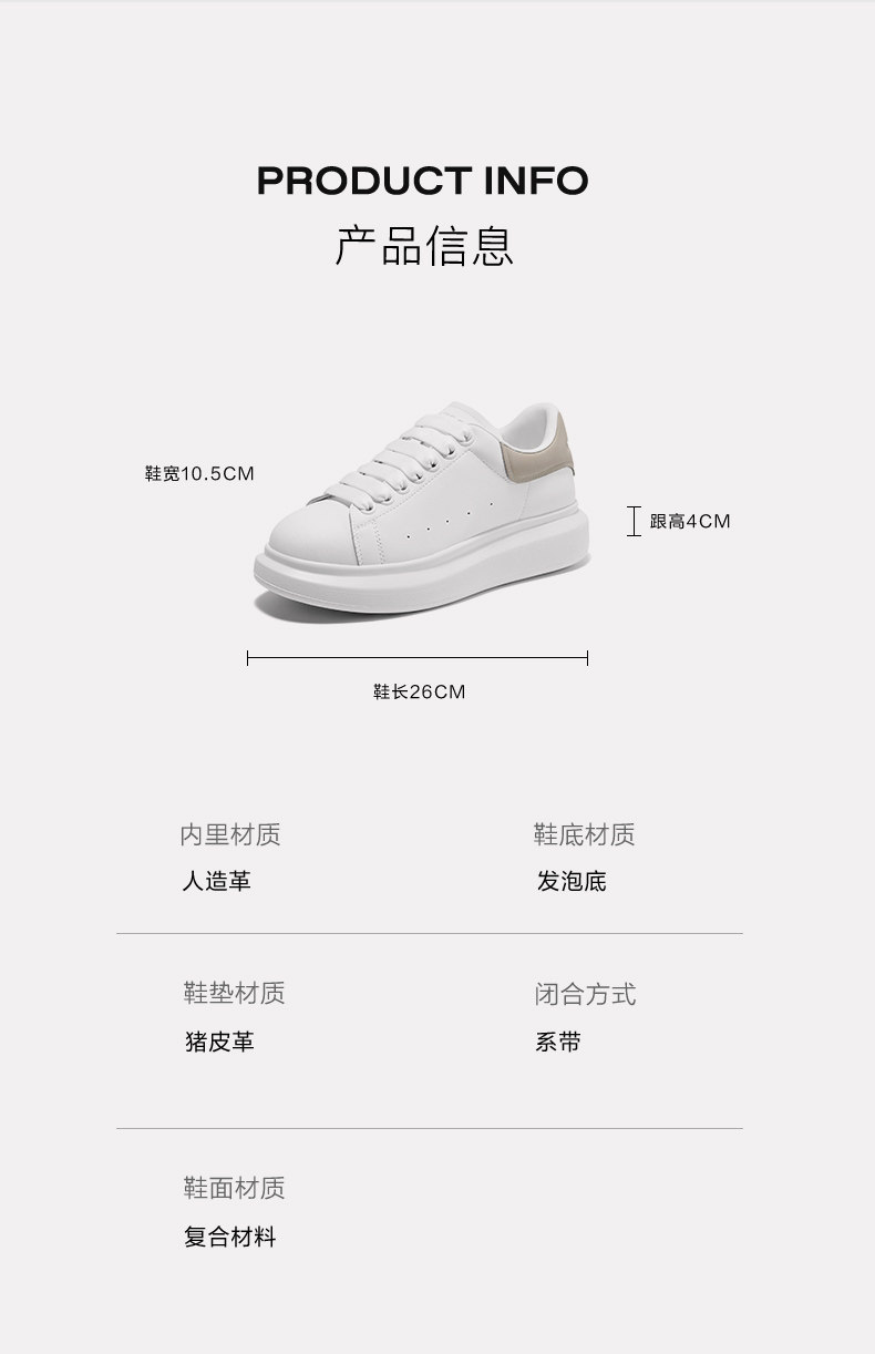 Belle Women's Shoes Thick-Soled White Sneakers 26 Spring New Height-Increasing Shoes Commuting Sports Casual Sneakers D5Q1Dam6 Pre-Order
