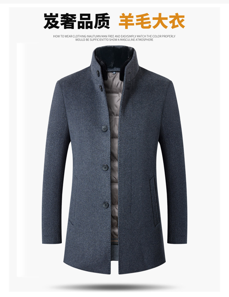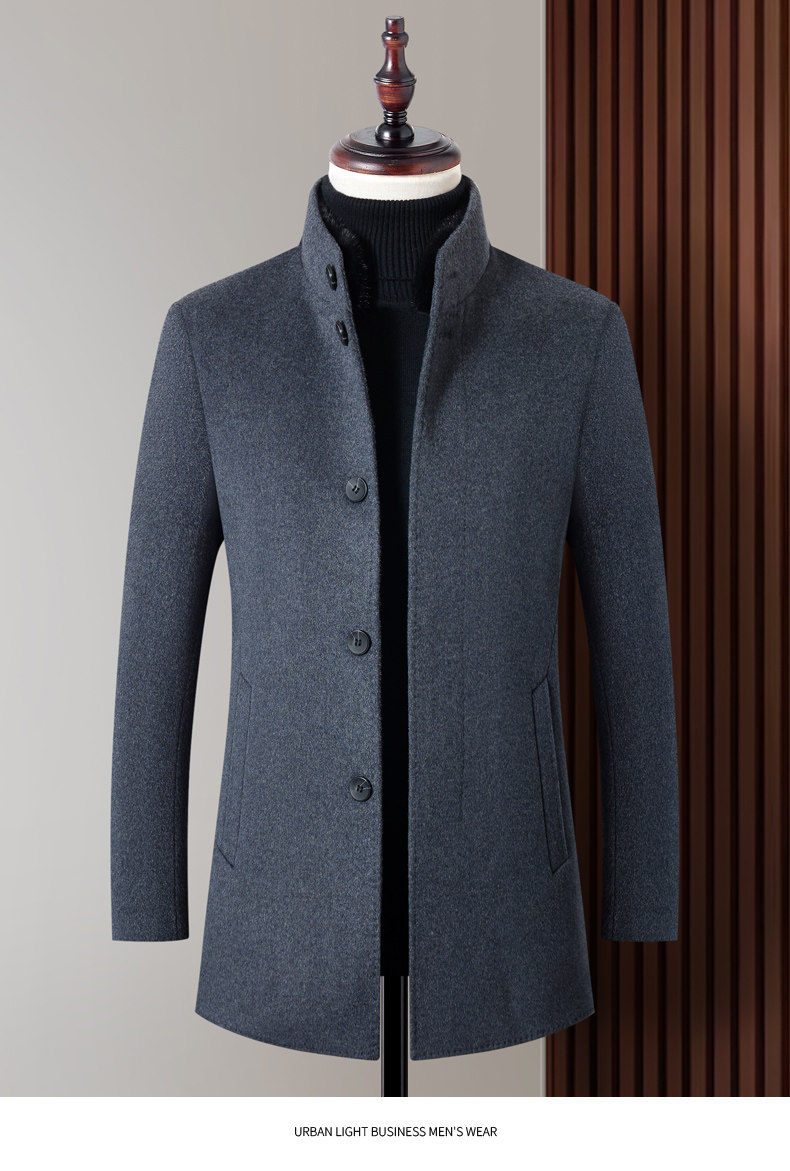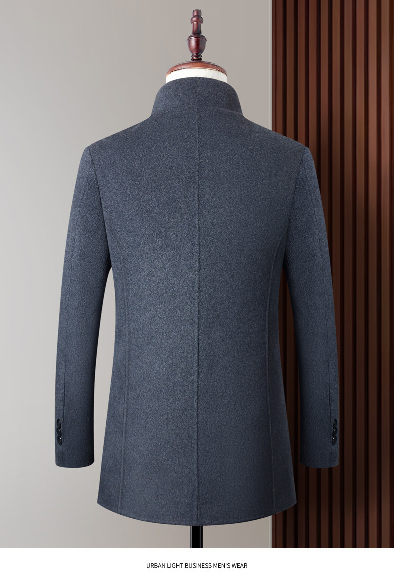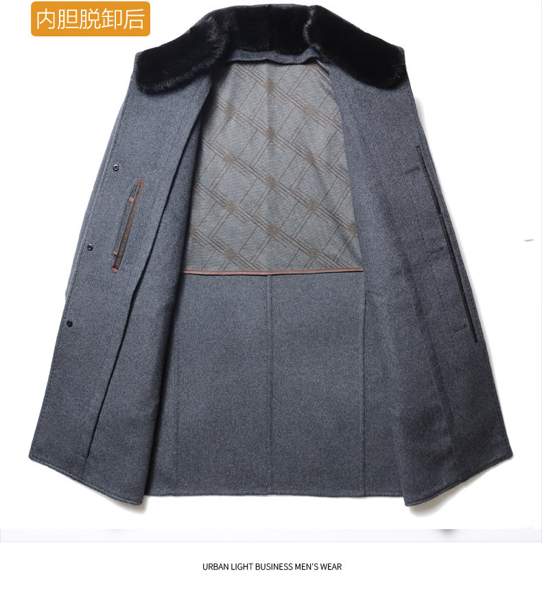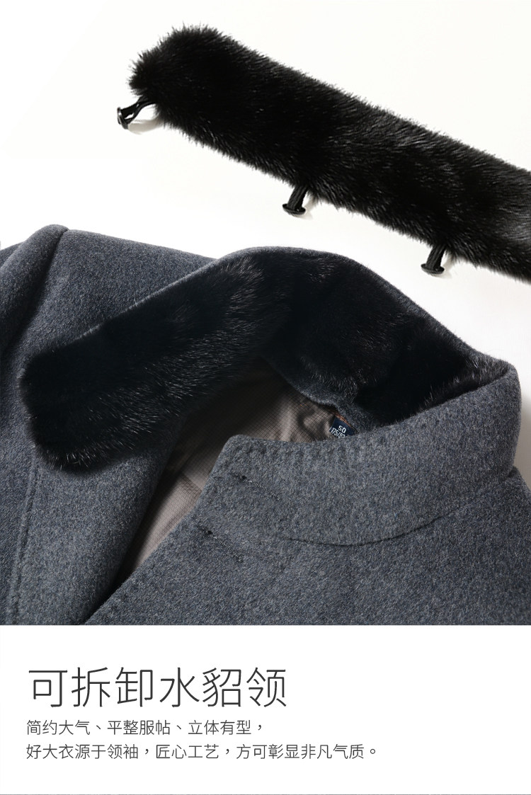 Pierre Cardin Woolen Coat for Men, Mid-Length, Winter, Middle-Aged and Elderly Business Style, Mink Stand Collar, Cashmere Dad Coat