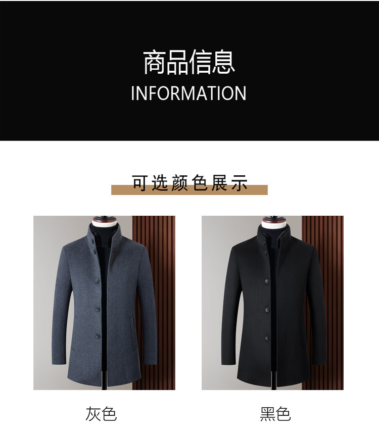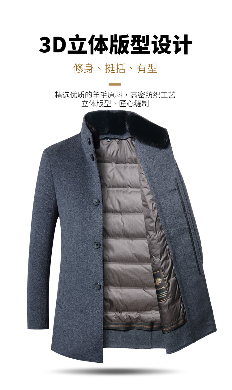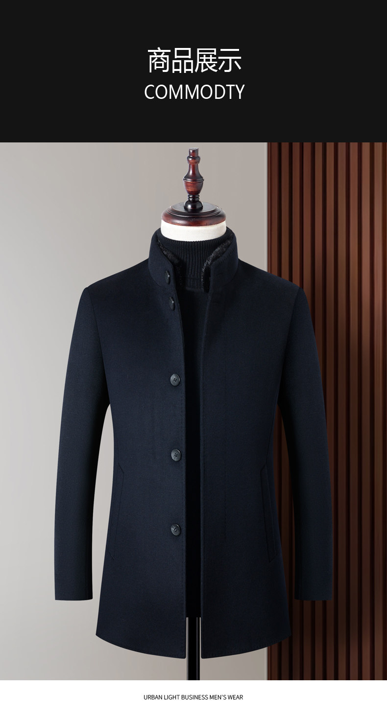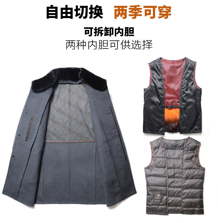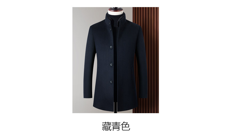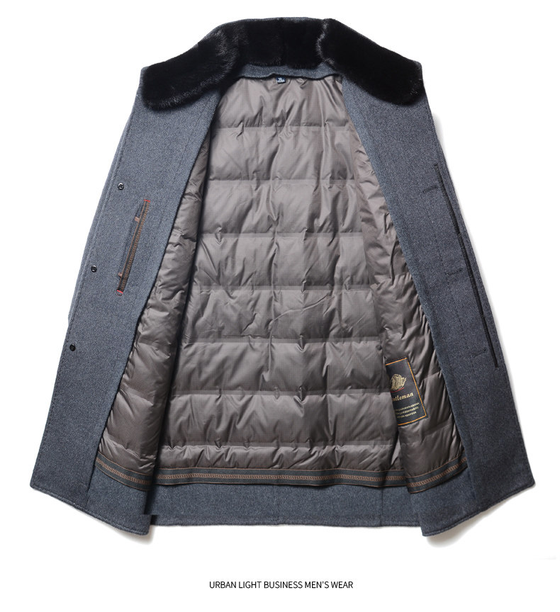 Pierre Cardin Woolen Coat for Men, Mid-Length, Winter, Middle-Aged and Elderly Business Style, Mink Stand Collar, Cashmere Dad Coat