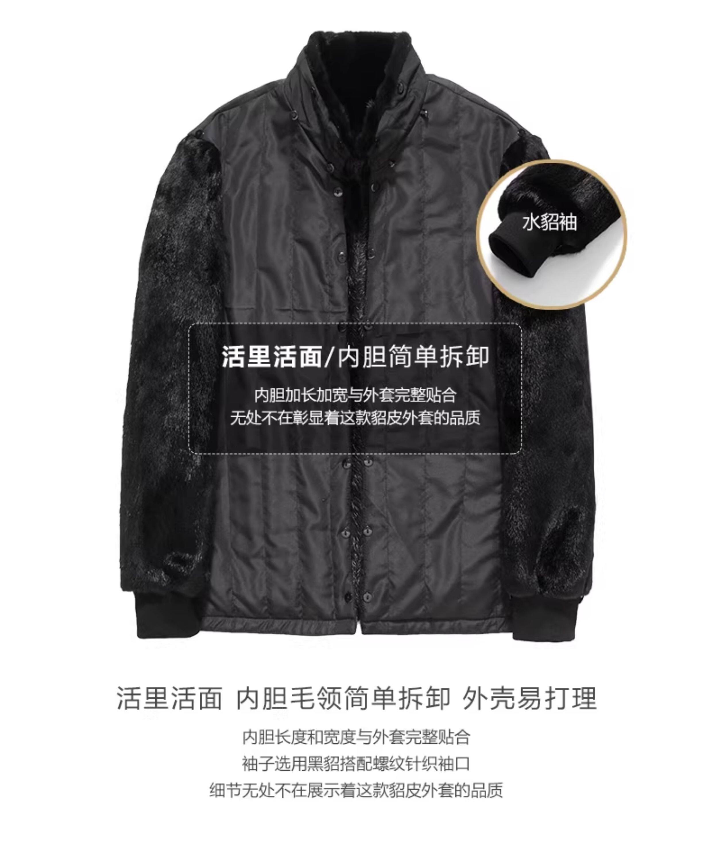 Lankoni Men's Mink Fur Lining Imported Mink Fur New Business Stand Collar Fur Coat Men's Mink Velvet Jacket
