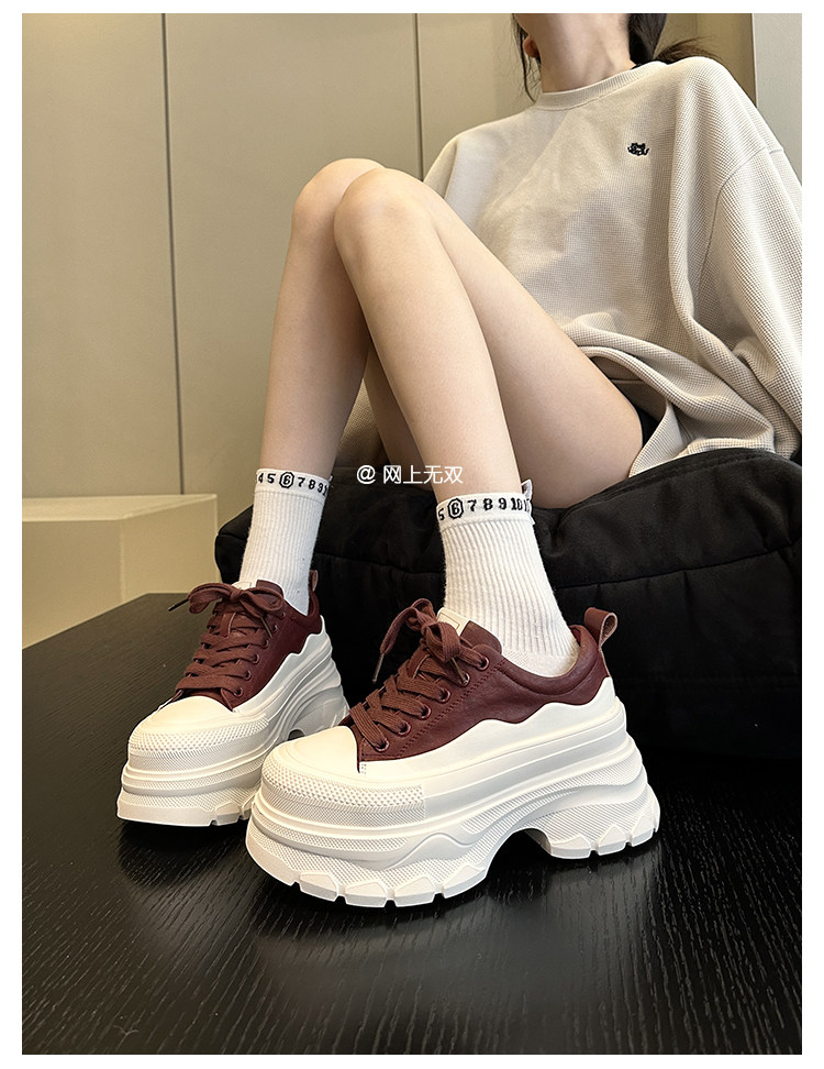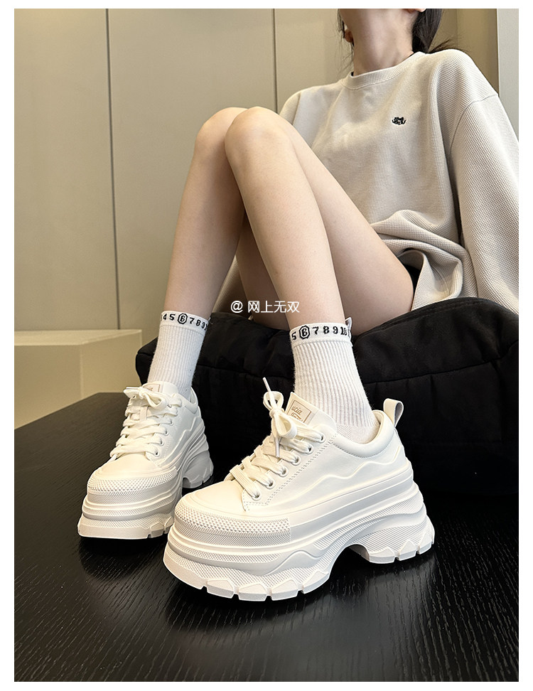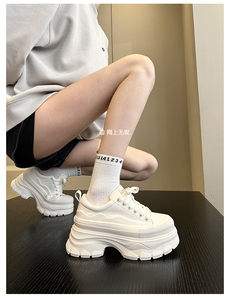 A Must-Have for Petite People~ New Genuine Leather Platform Shoes for Women, Lightweight White Sneakers That Increase Height and Make You Look Slimmer, Casual Shoes