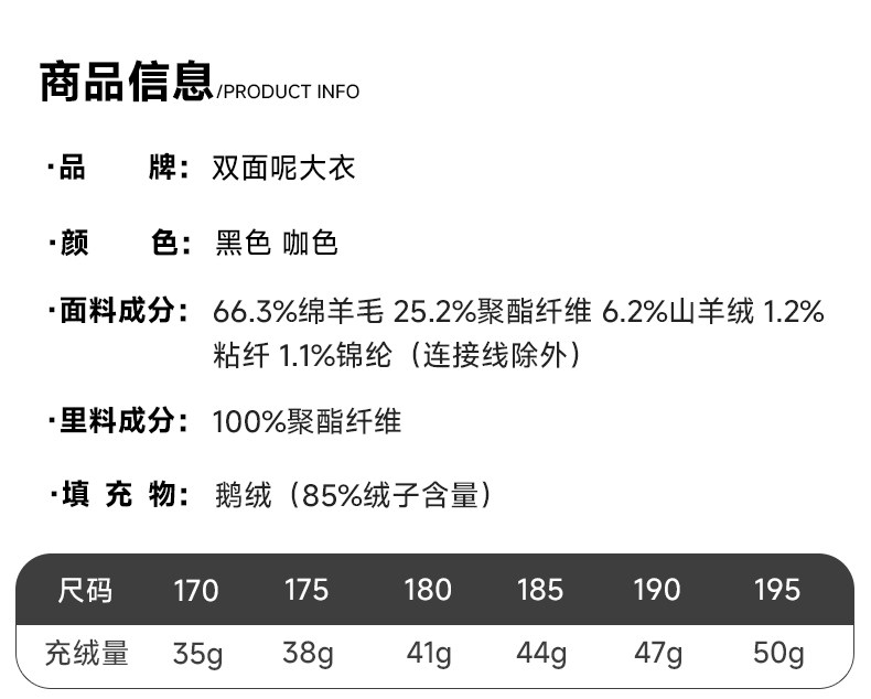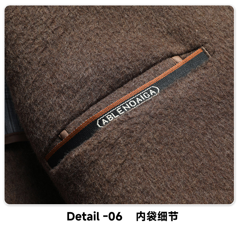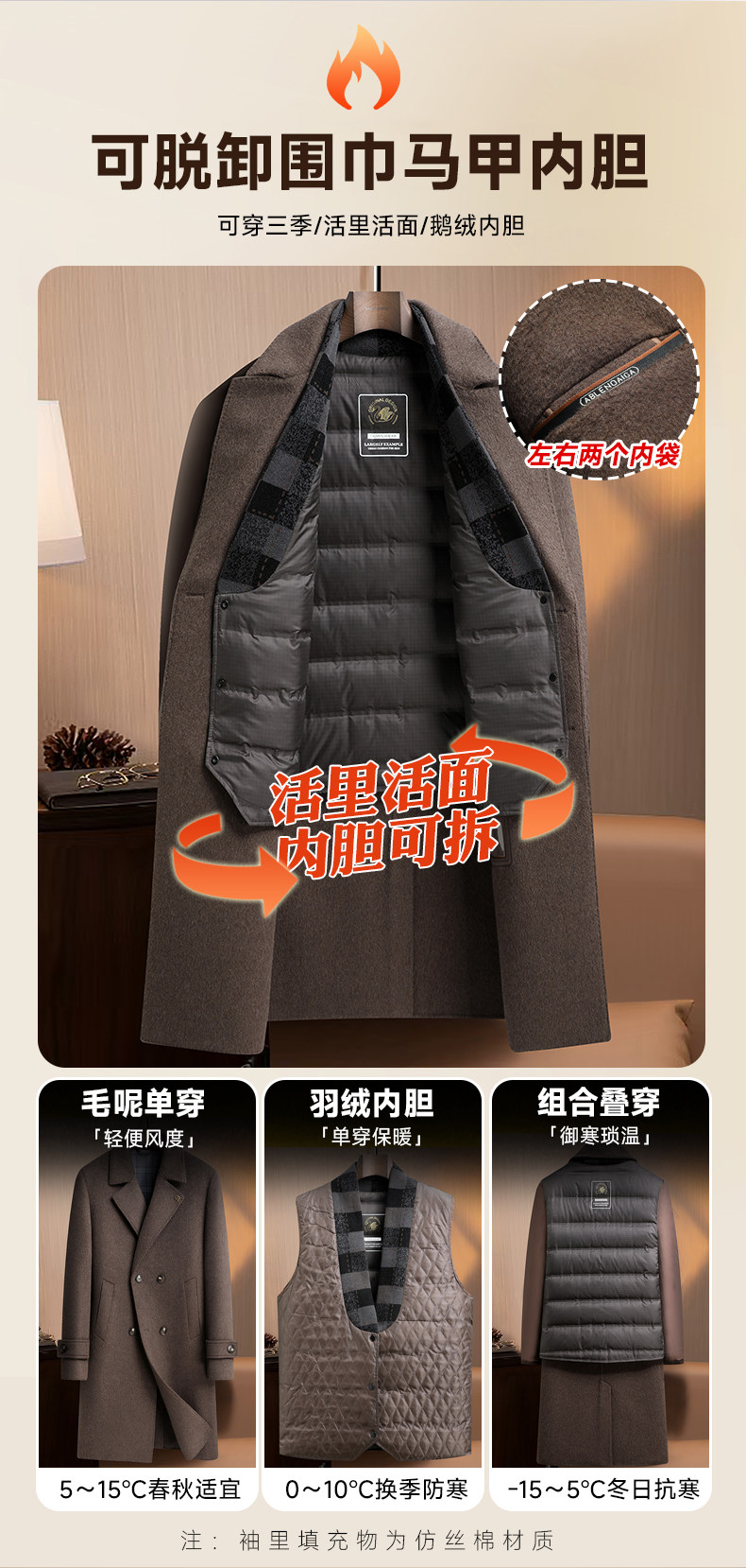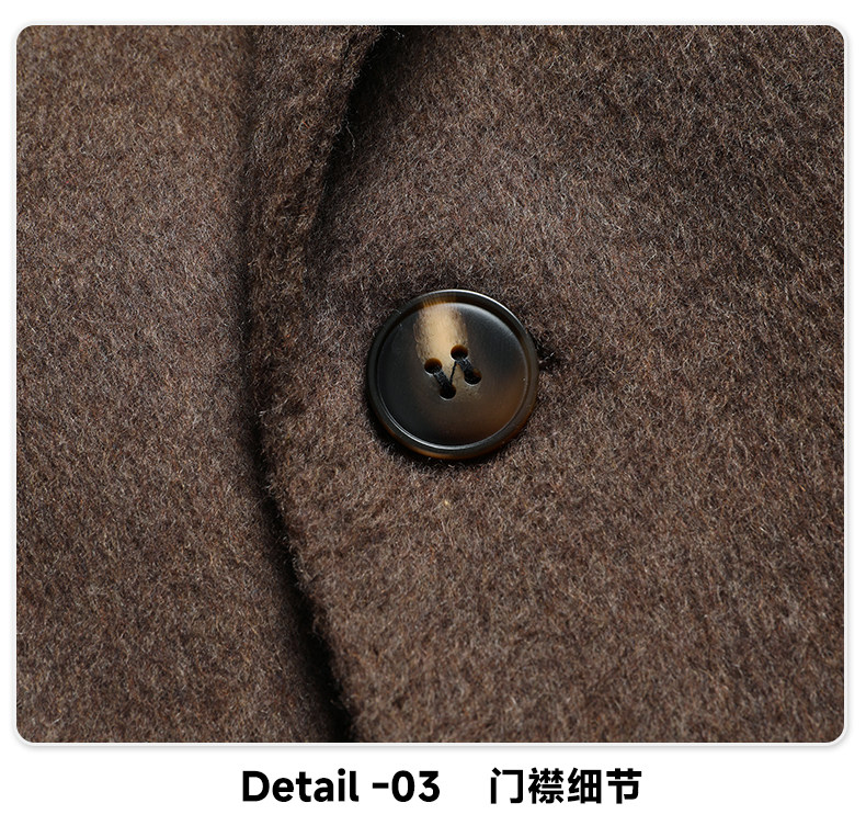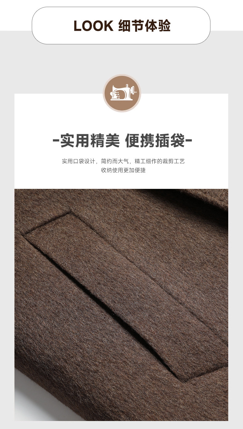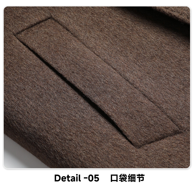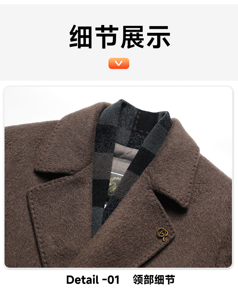 【White Goose down Lining + Cashmere】Romon Long Double-Breasted Wool Coat for Men, Double-Sided Woolen Overcoat