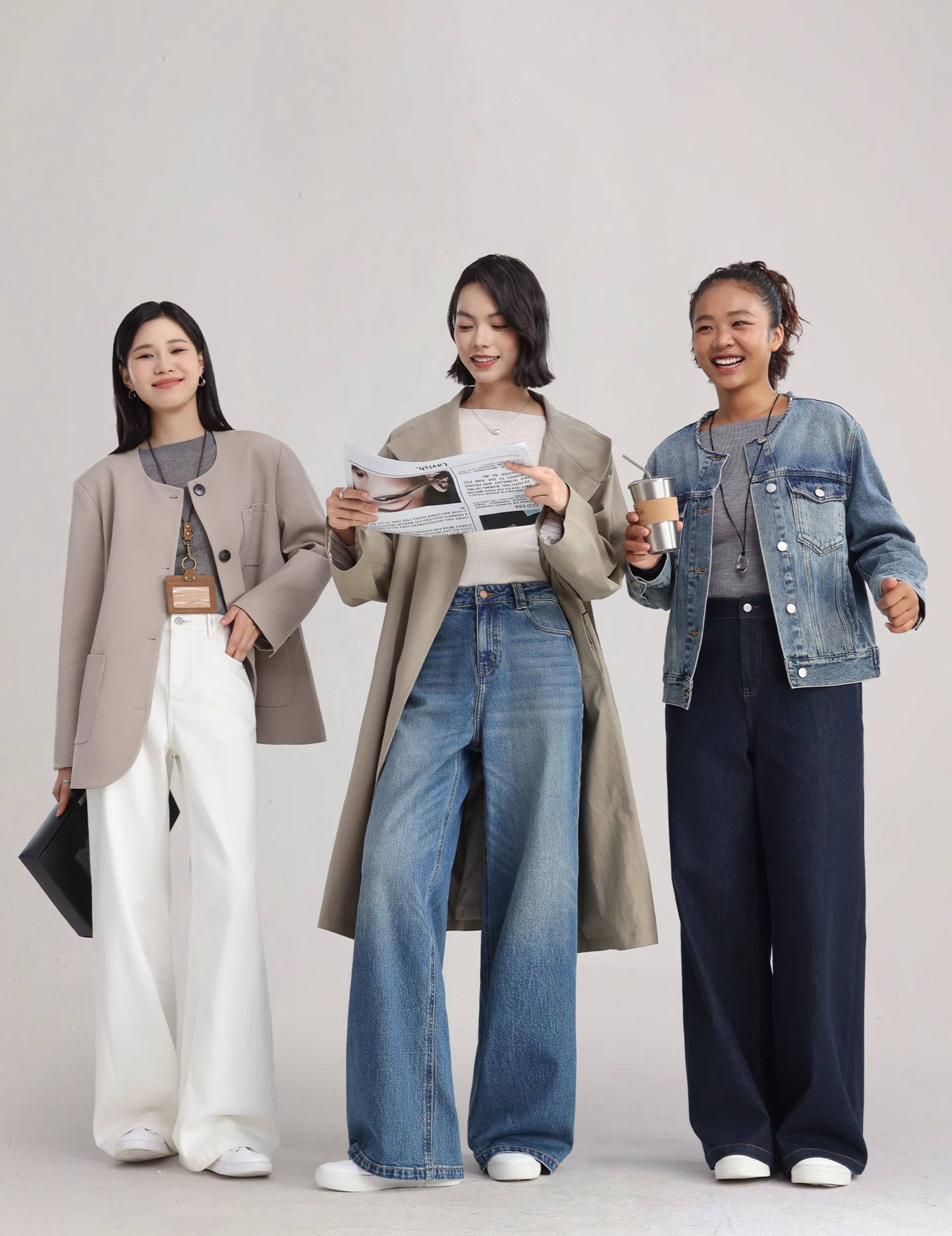 Hippie Girl Comfortable Pants | Ideal Pants 890 Wide-Leg Jeans for Women 26 Spring and Autumn New Elastic Slimming Straight-Leg Pants