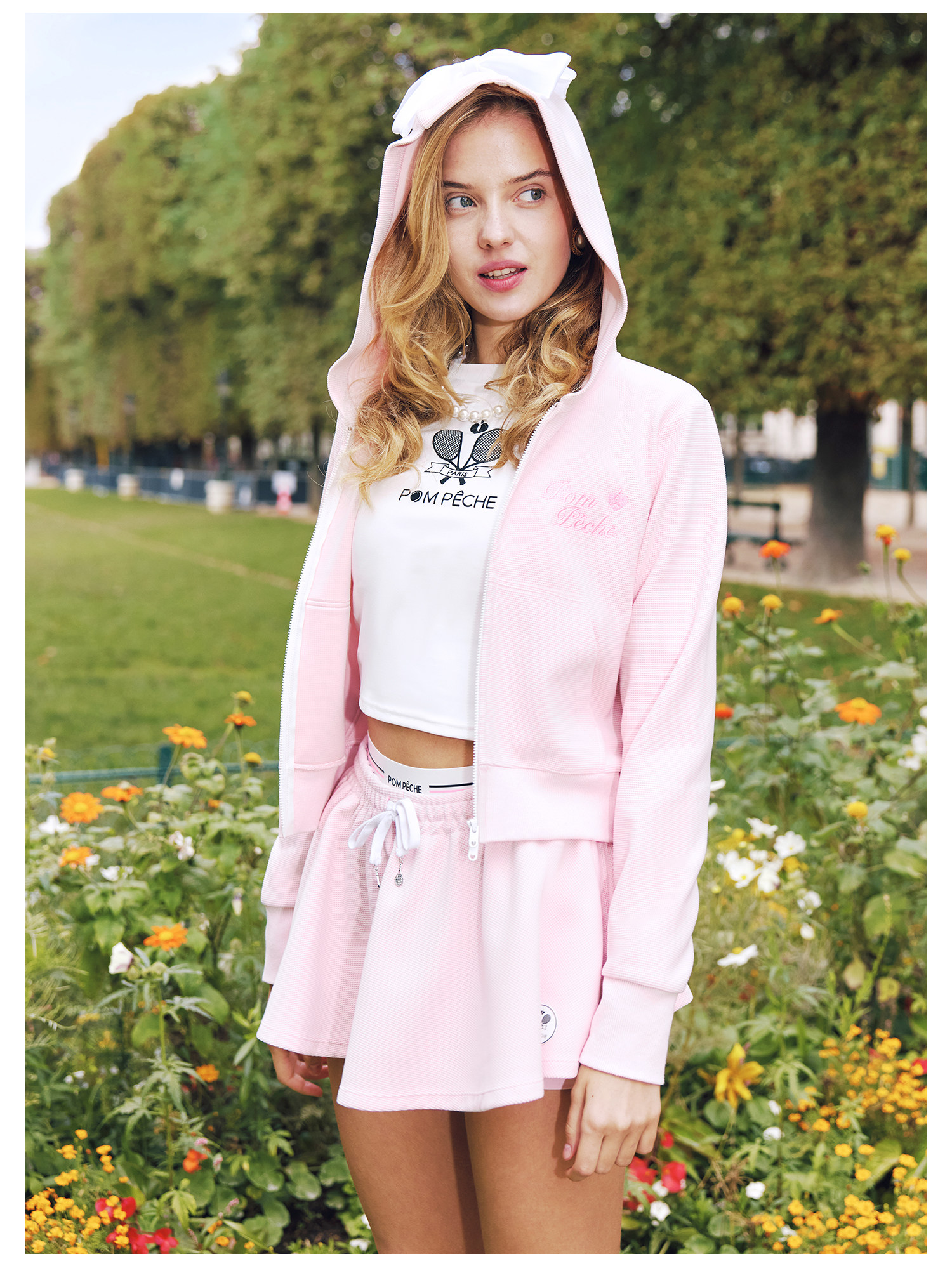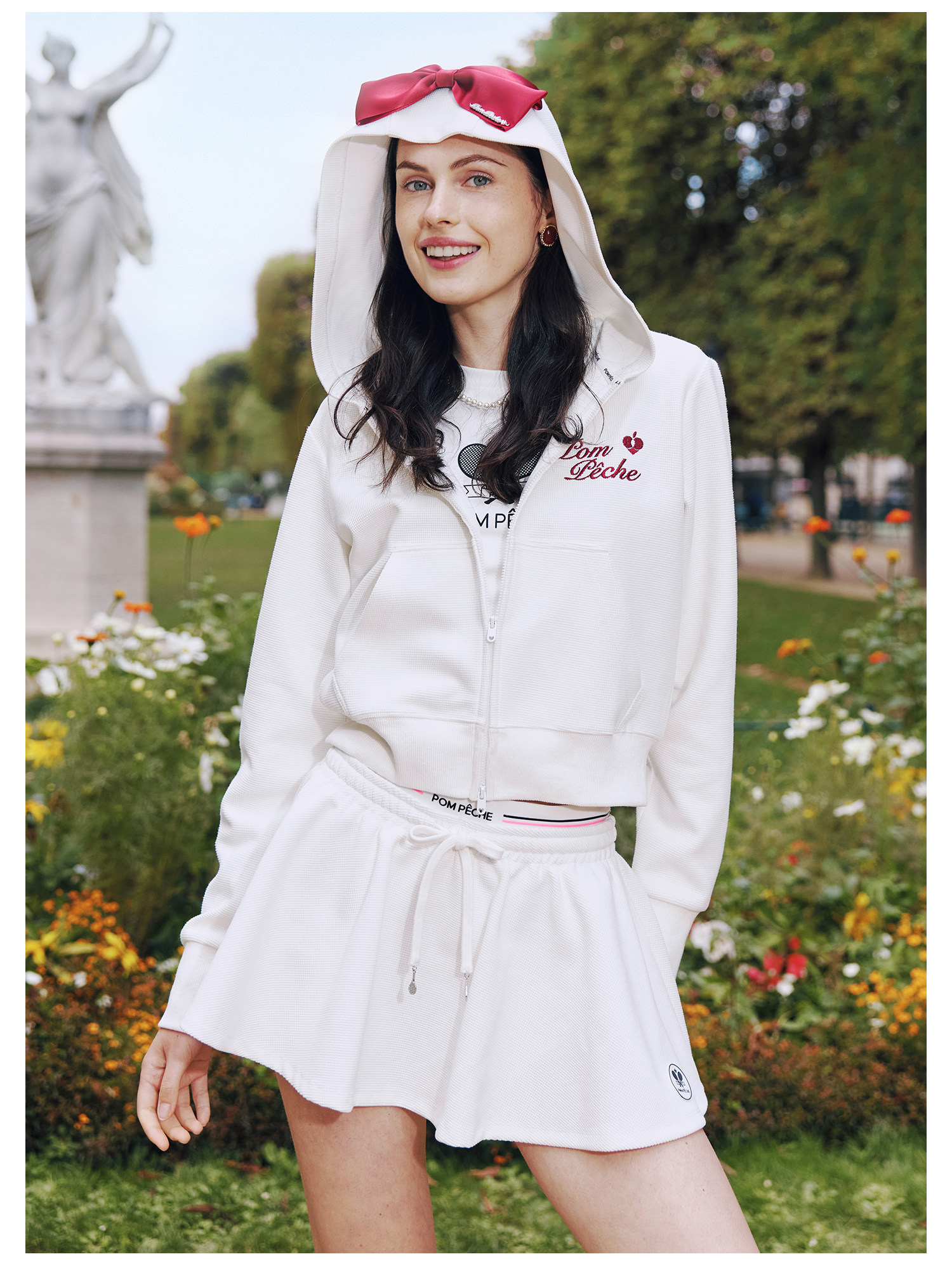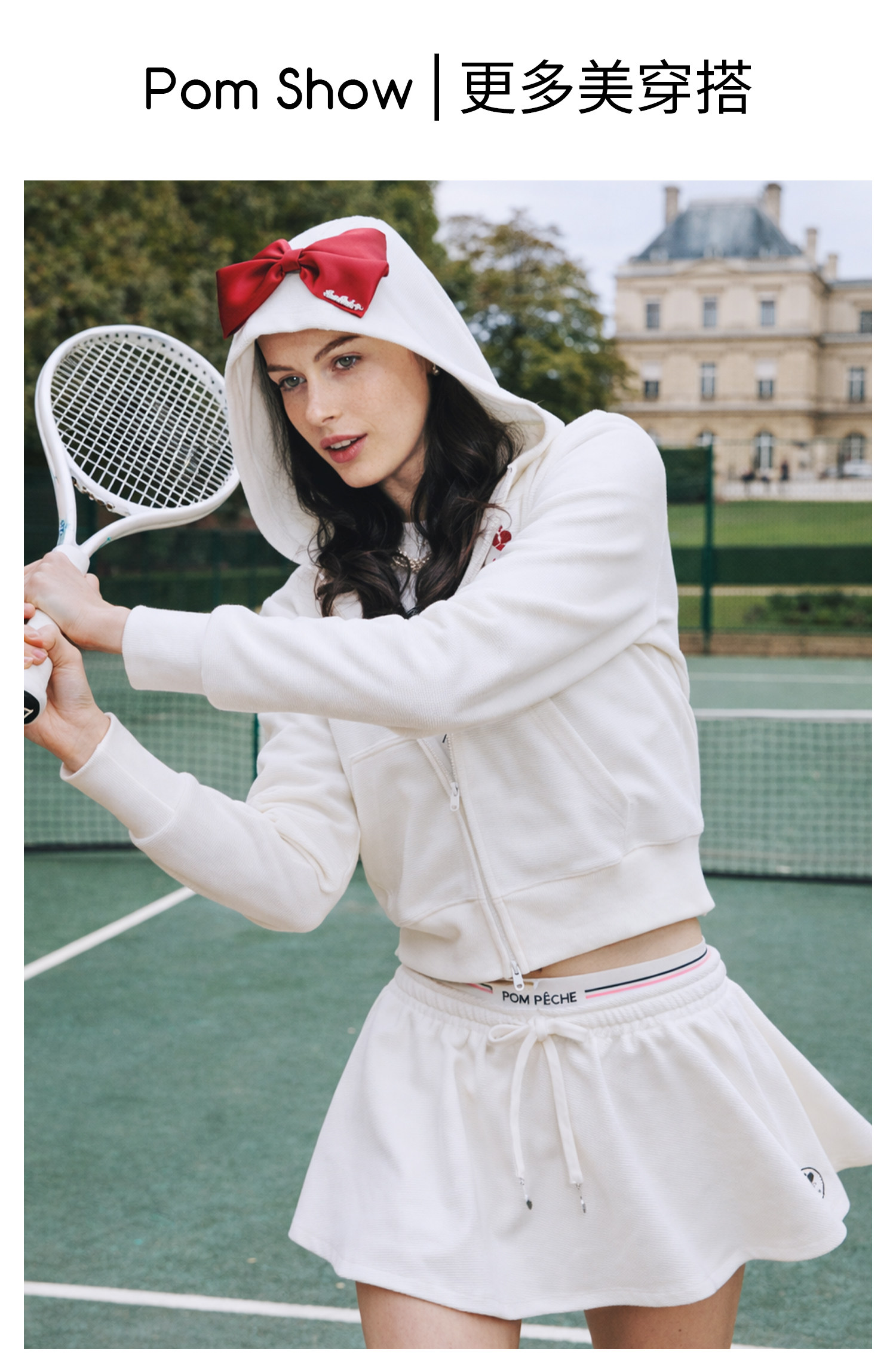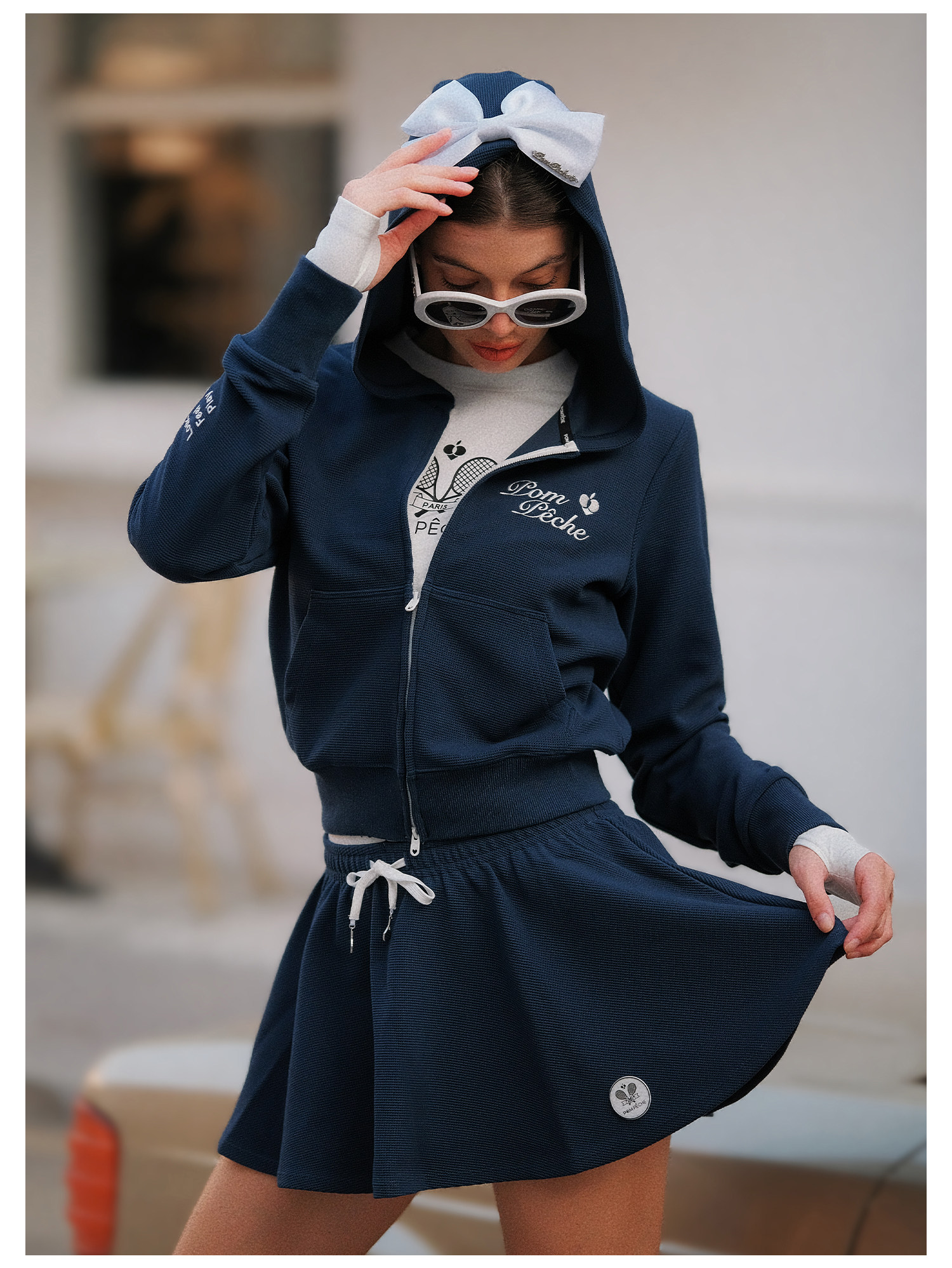 Waffle Tennis Suit Set for Women with Bow Hooded Sweatshirt Cardigan 26 Spring Sports Top Jacket Pompeche