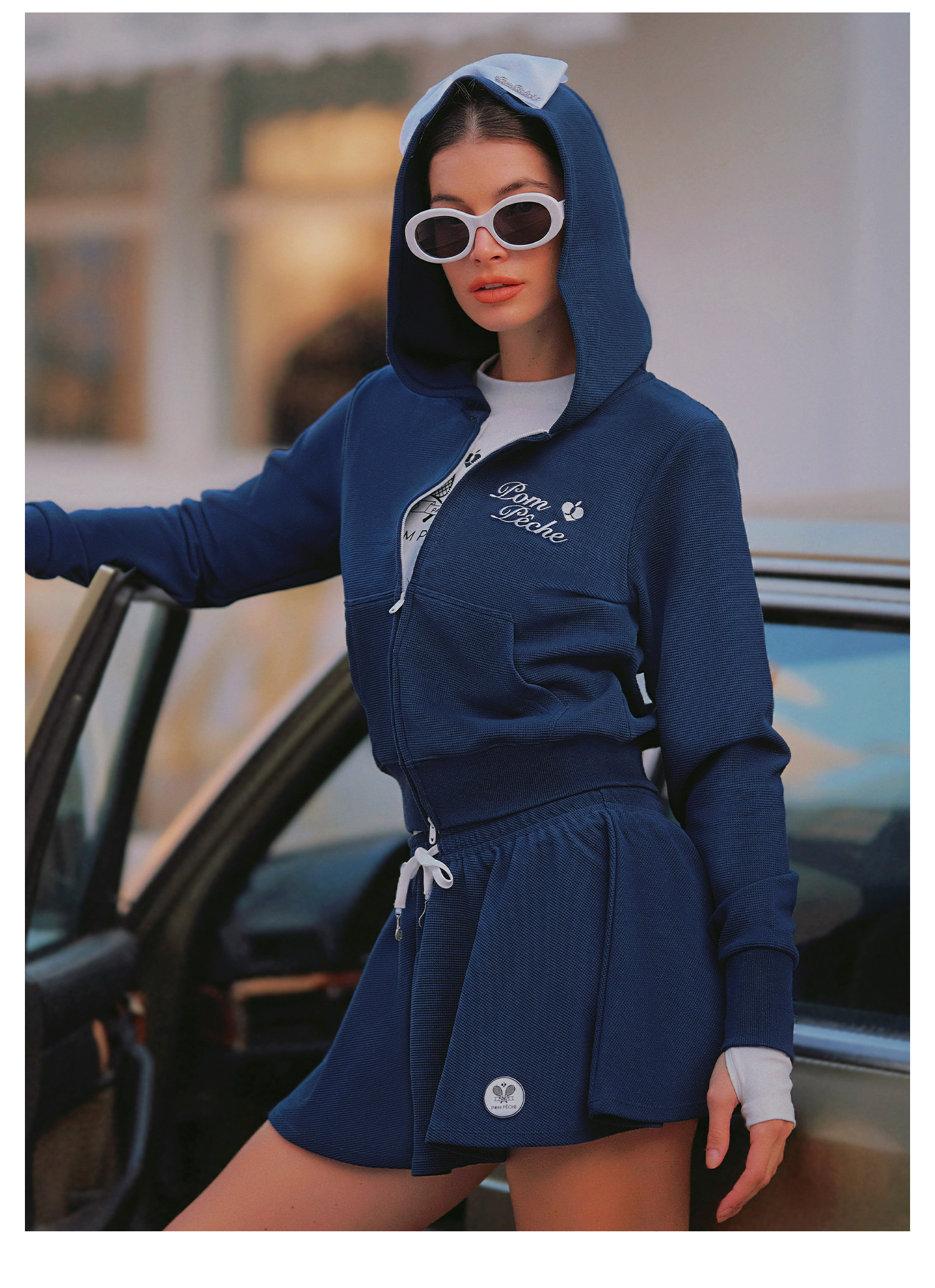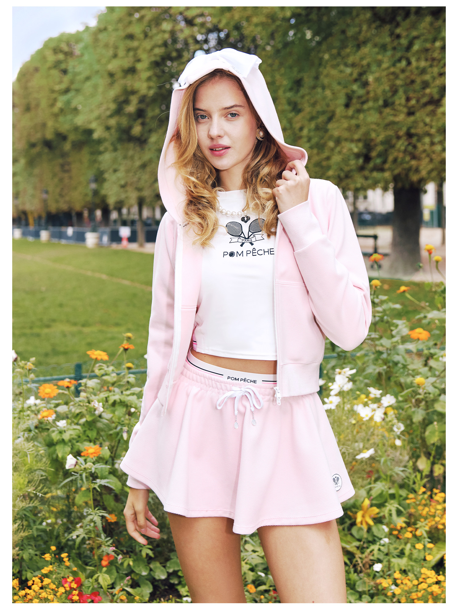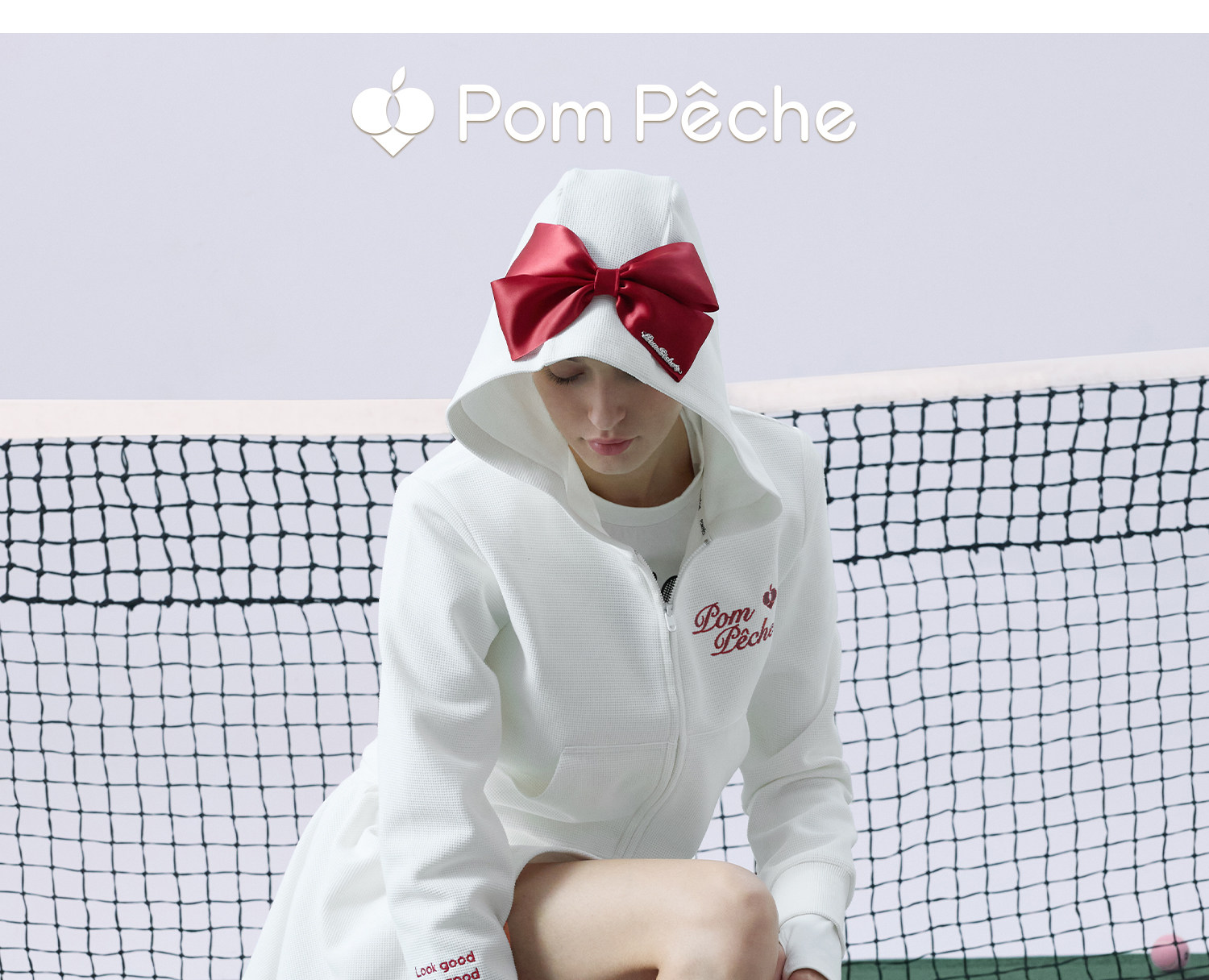 Waffle Tennis Suit Set for Women with Bow Hooded Sweatshirt Cardigan 26 Spring Sports Top Jacket Pompeche