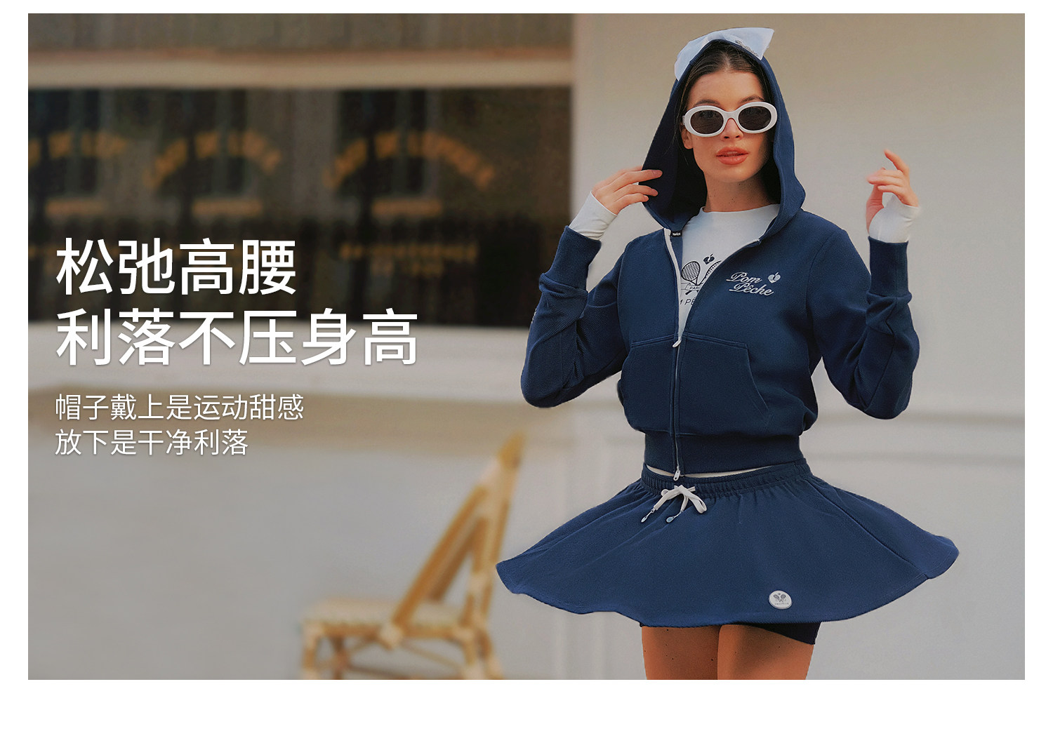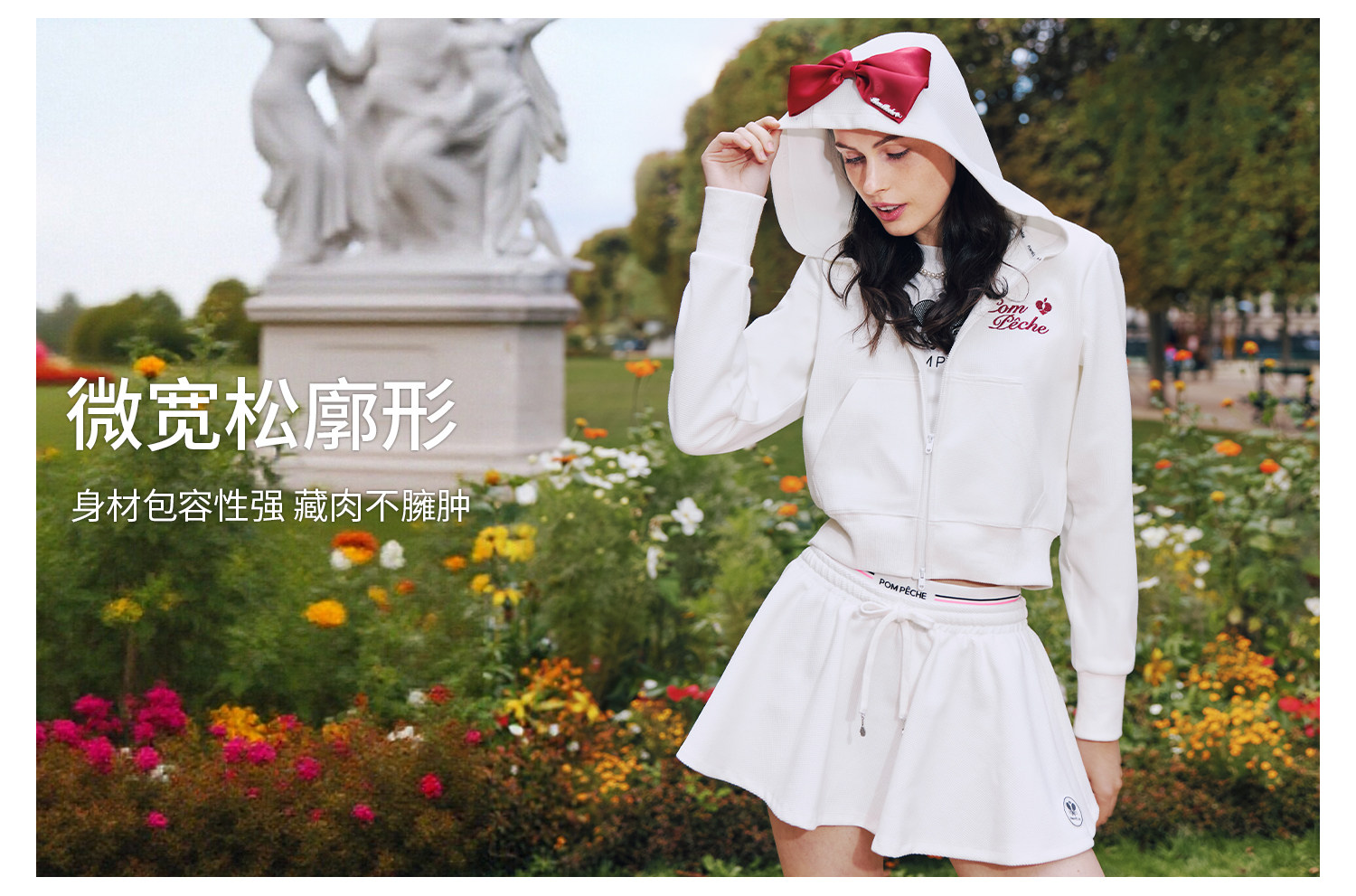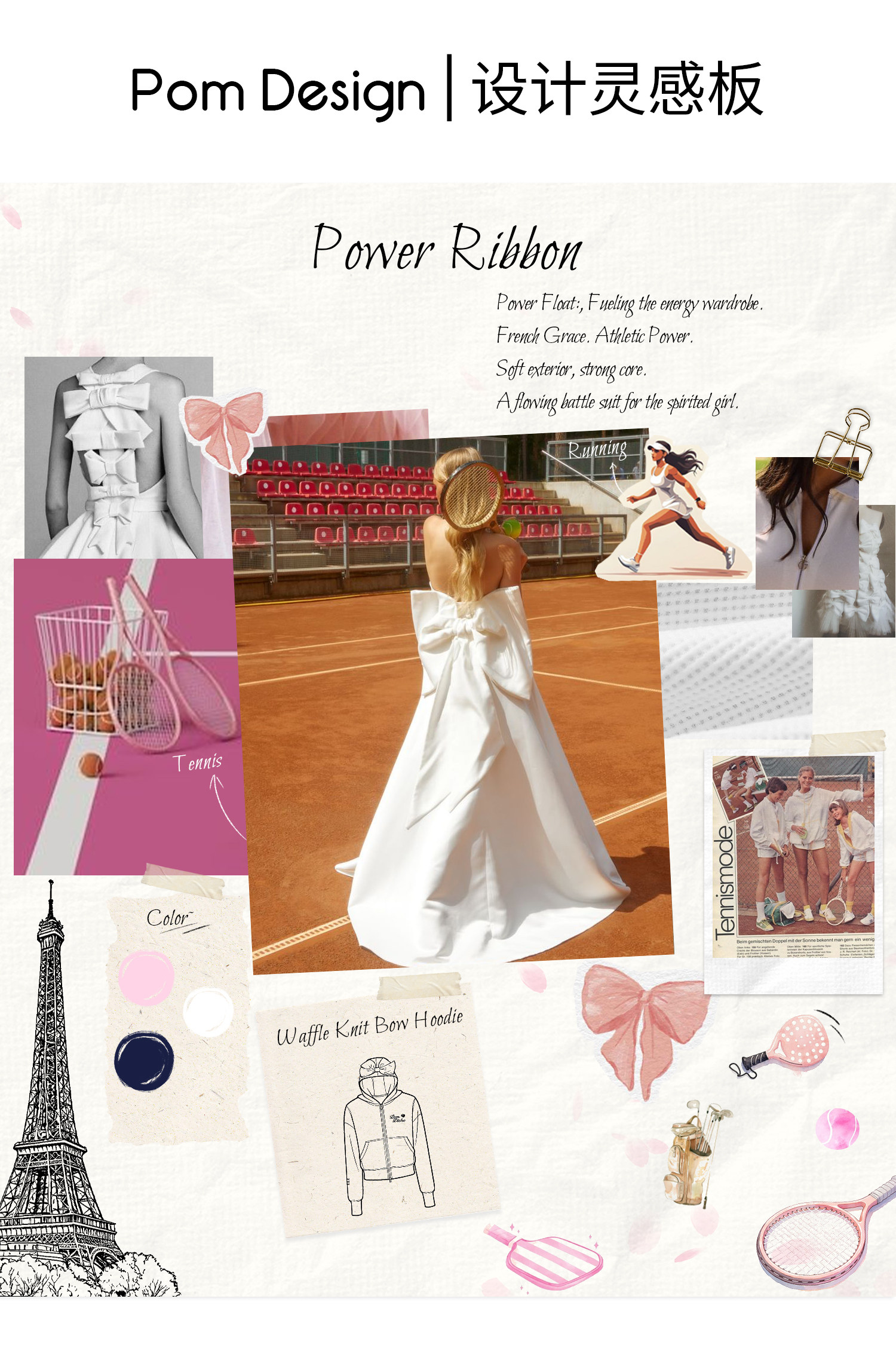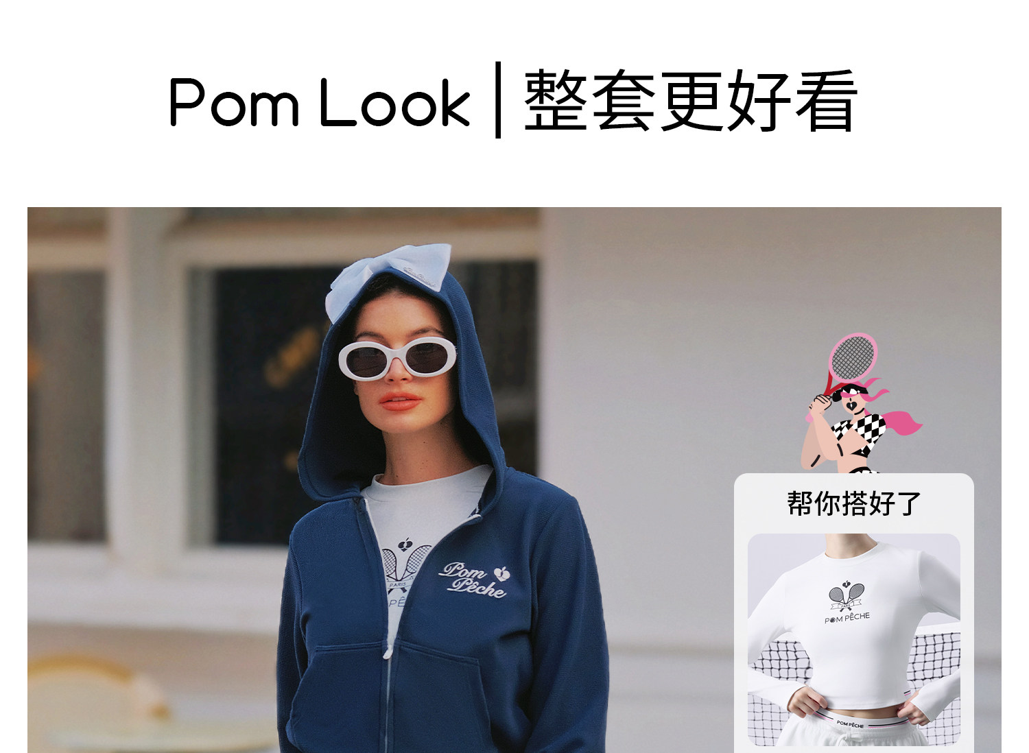 Waffle Tennis Suit Set for Women with Bow Hooded Sweatshirt Cardigan 26 Spring Sports Top Jacket Pompeche