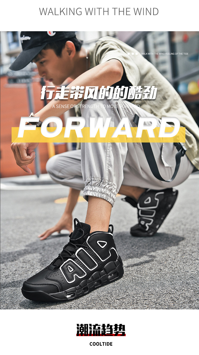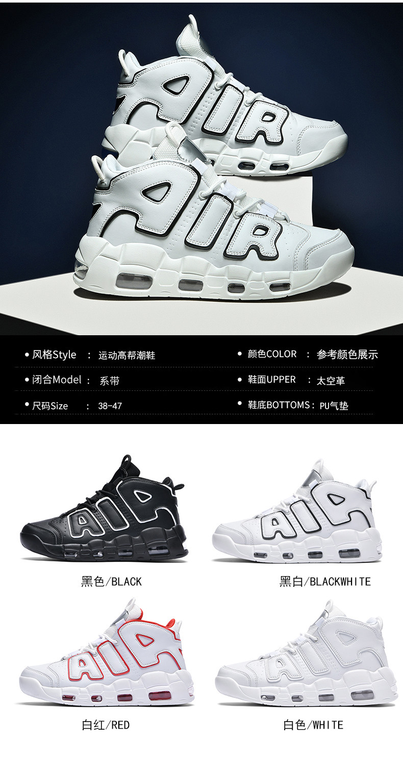 Pippen Big Air Basketball Shoes High-Top Men's Shoes Large Size 47 Height-Increasing Shock-Absorbing Youth Size 46 Phantom Mid-Top Sneakers