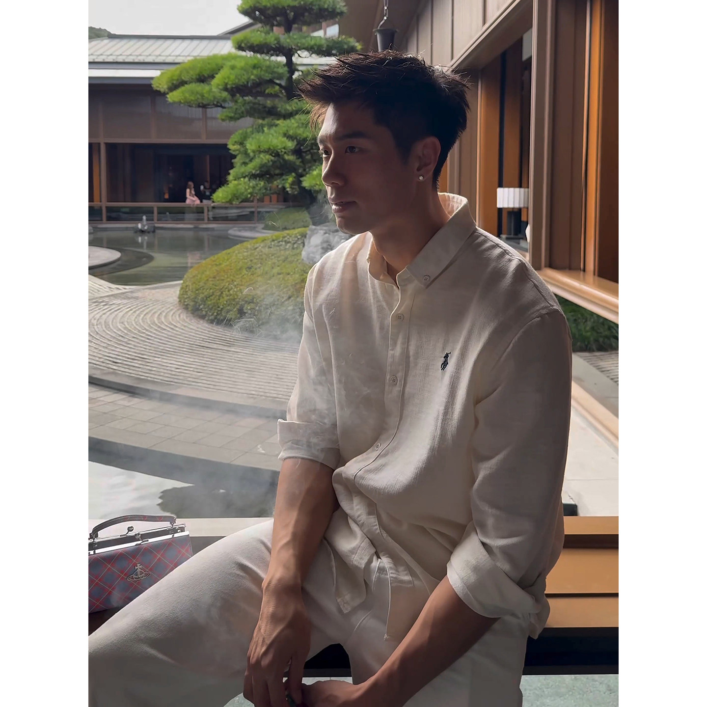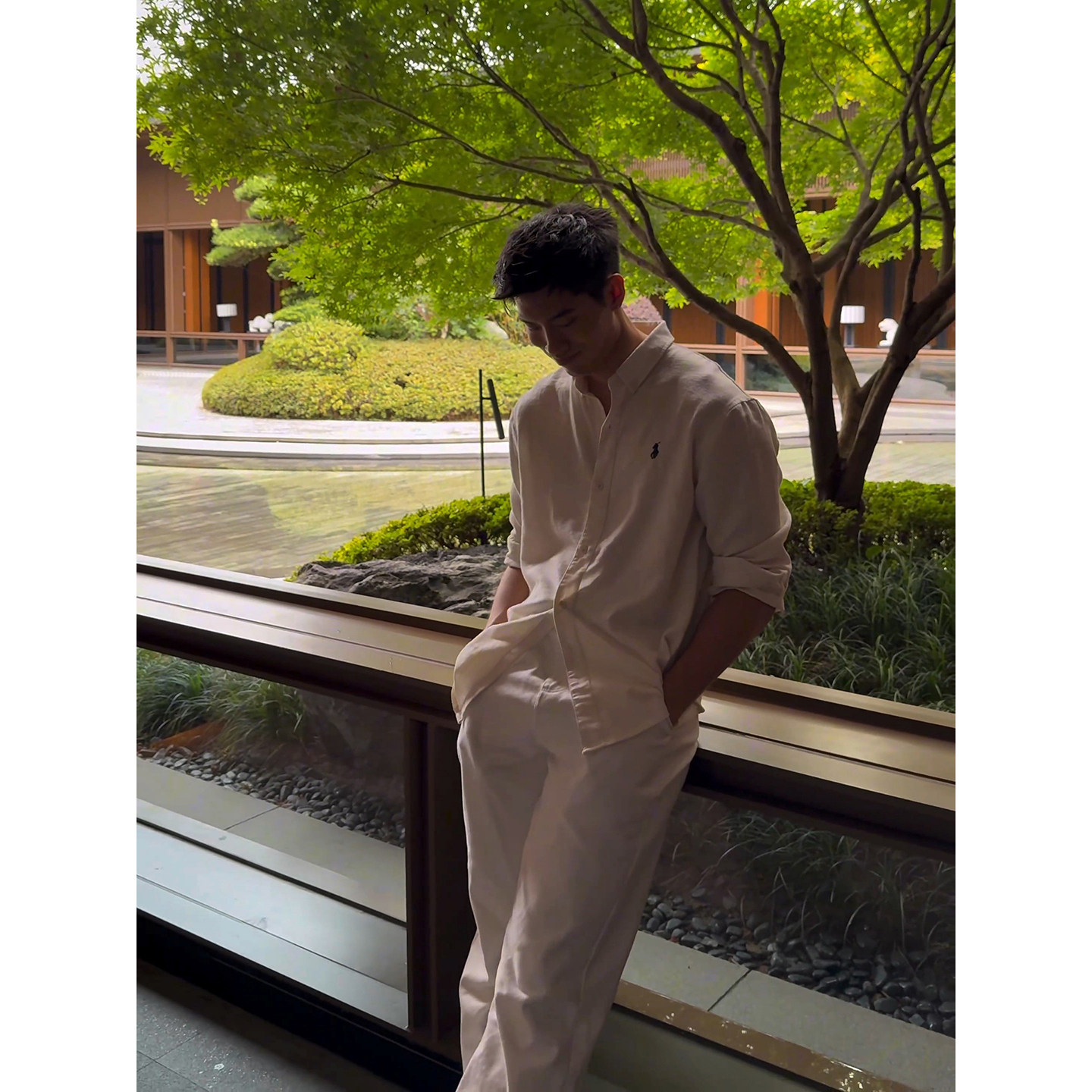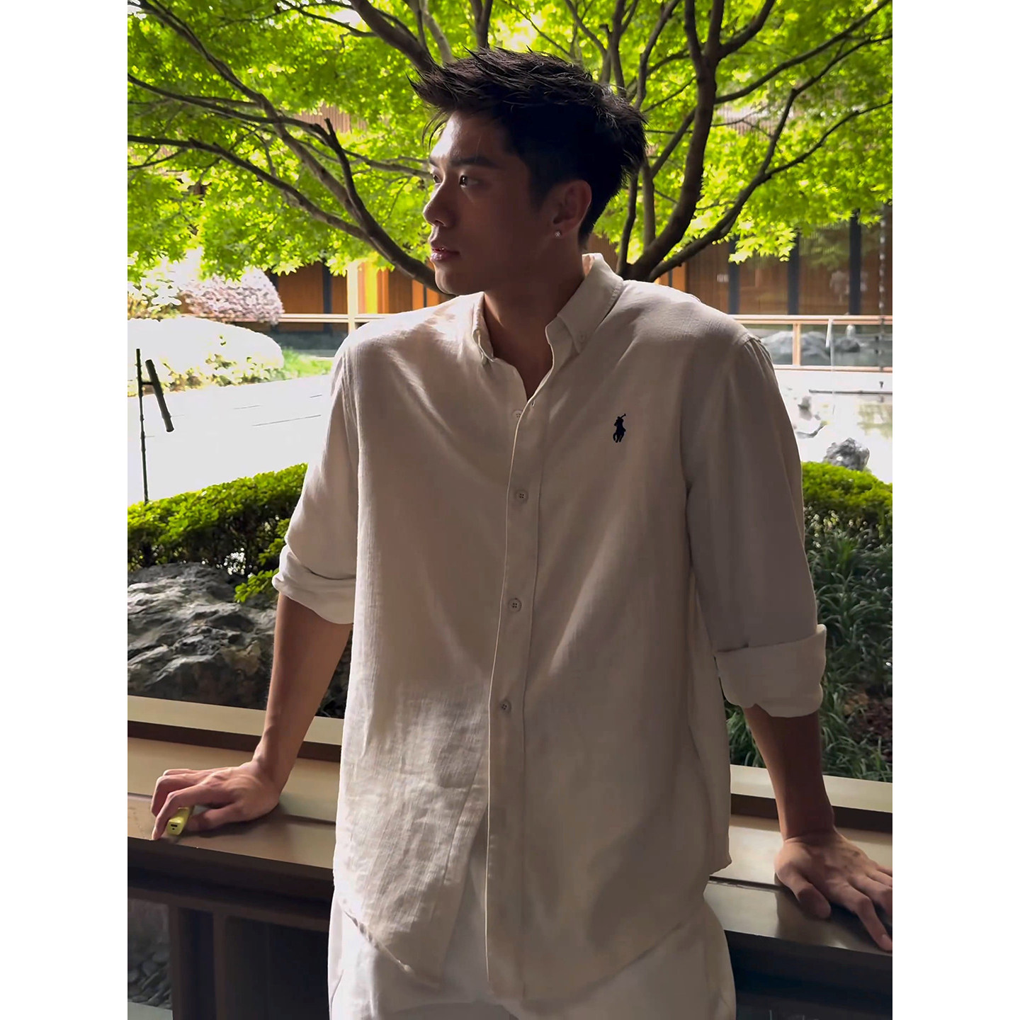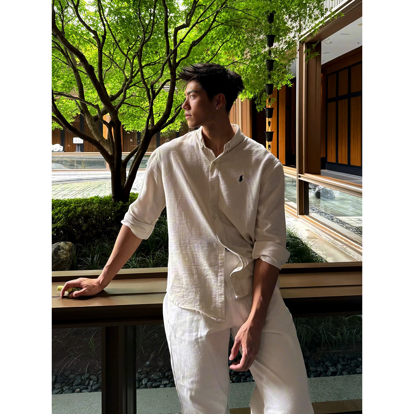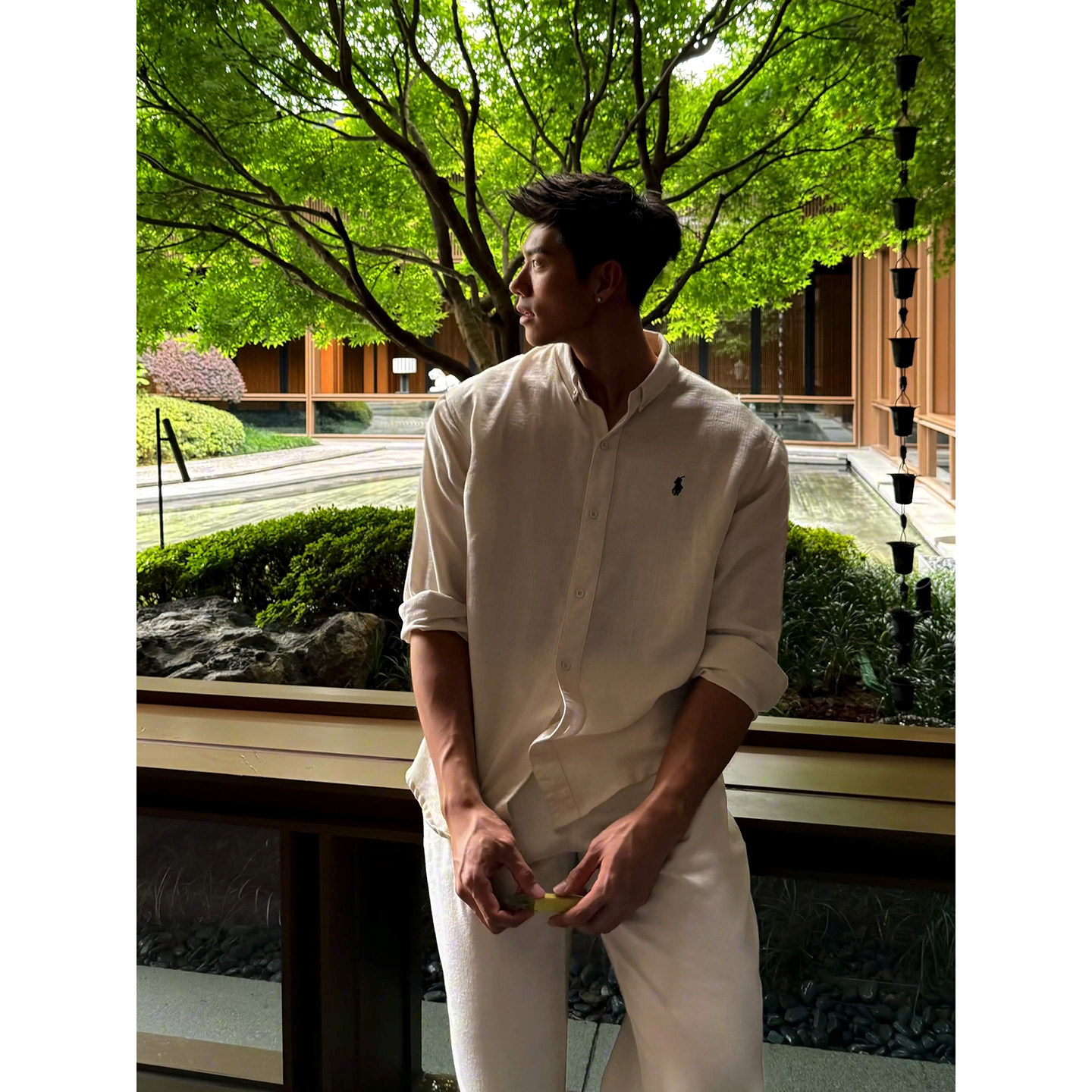 Old Money Style Tencel Linen Suit for Men, Summer Thin Breathable Relaxed Fit Sun Protection Long-Sleeve Shirt and Pants Set