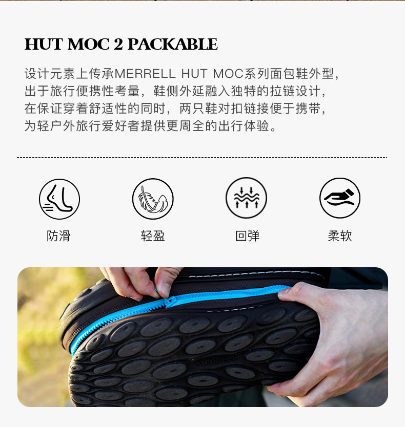 Merrell Outdoor Casual Loafers Hut Moc for Men and Women, Non-Slip, Wear-Resistant, Lightweight, Comfortable Slip-Ons