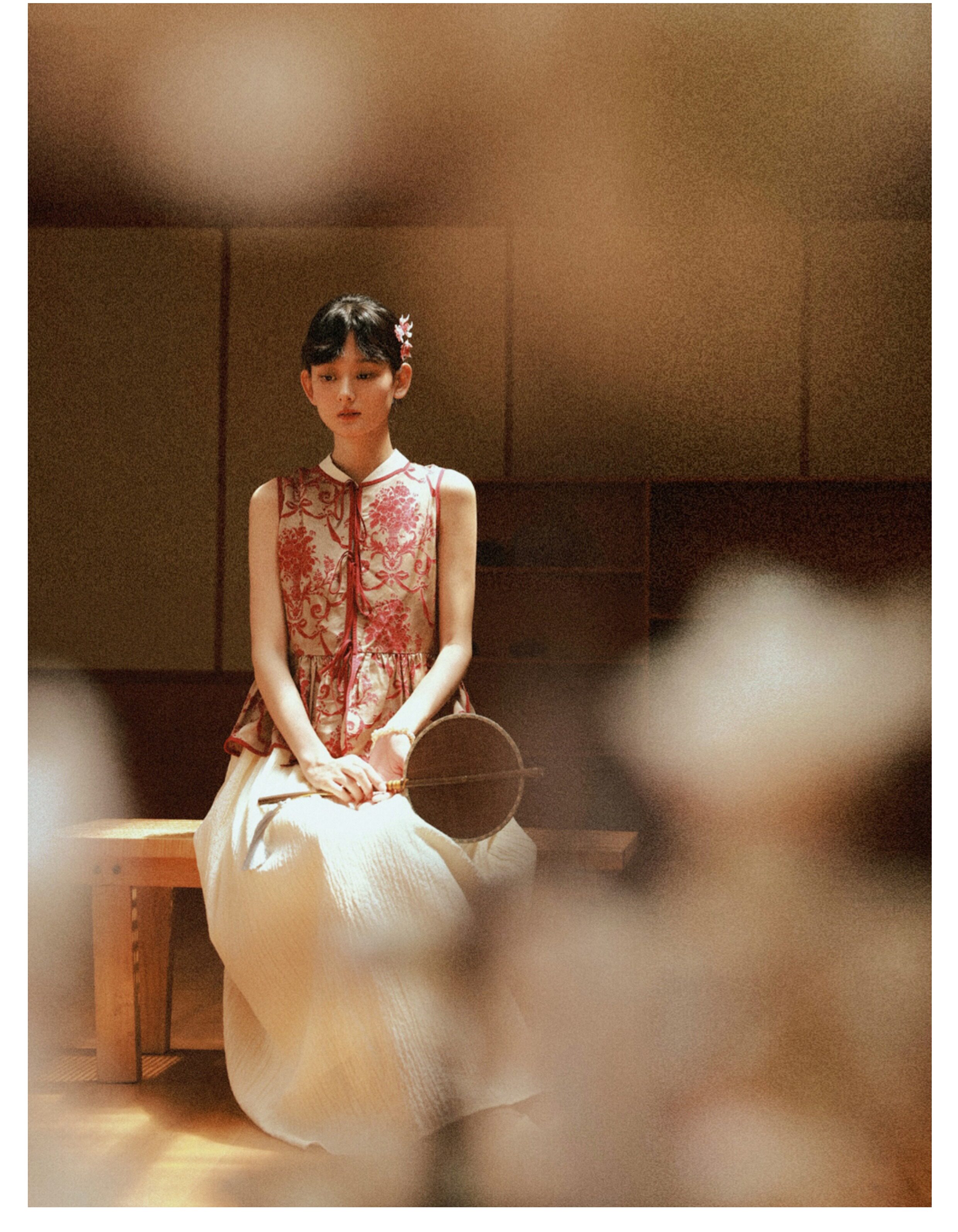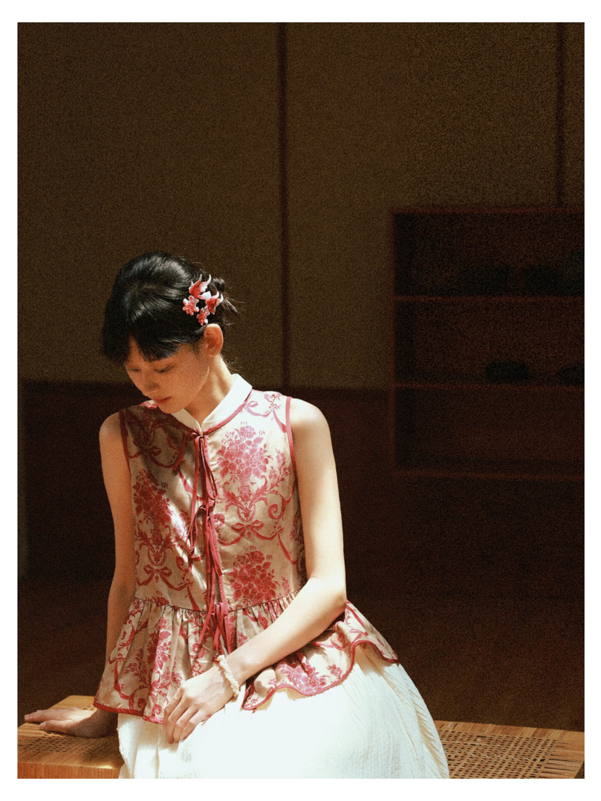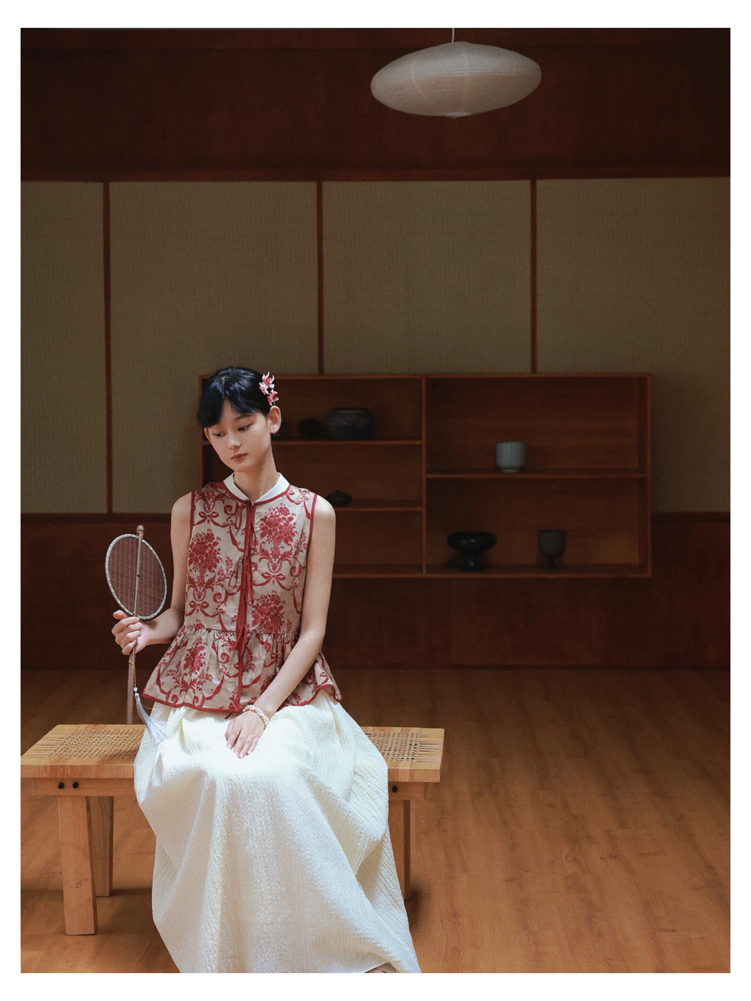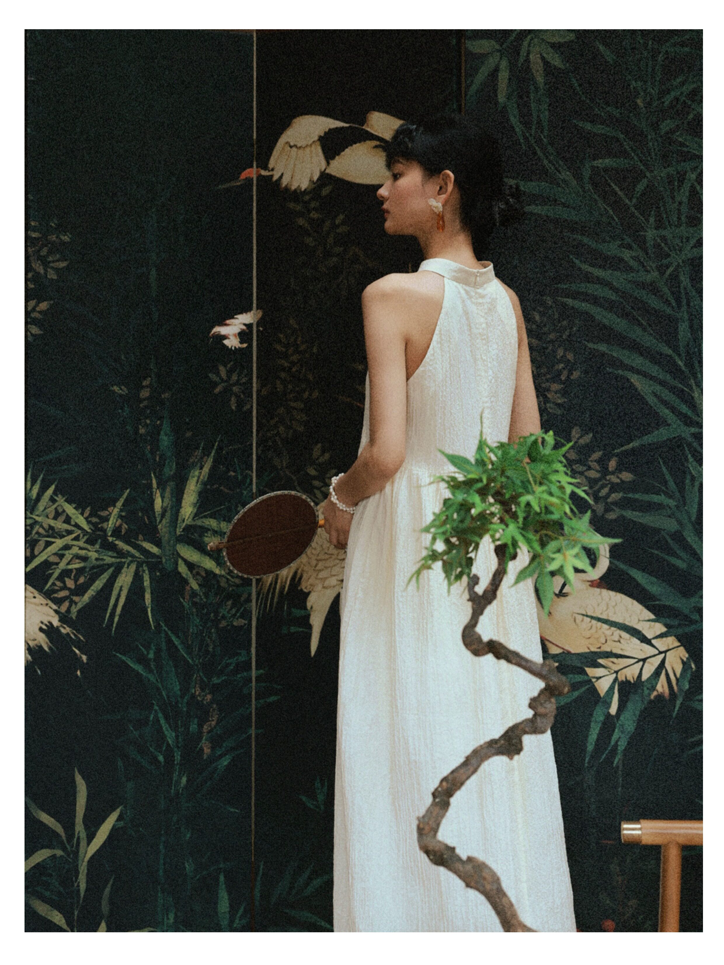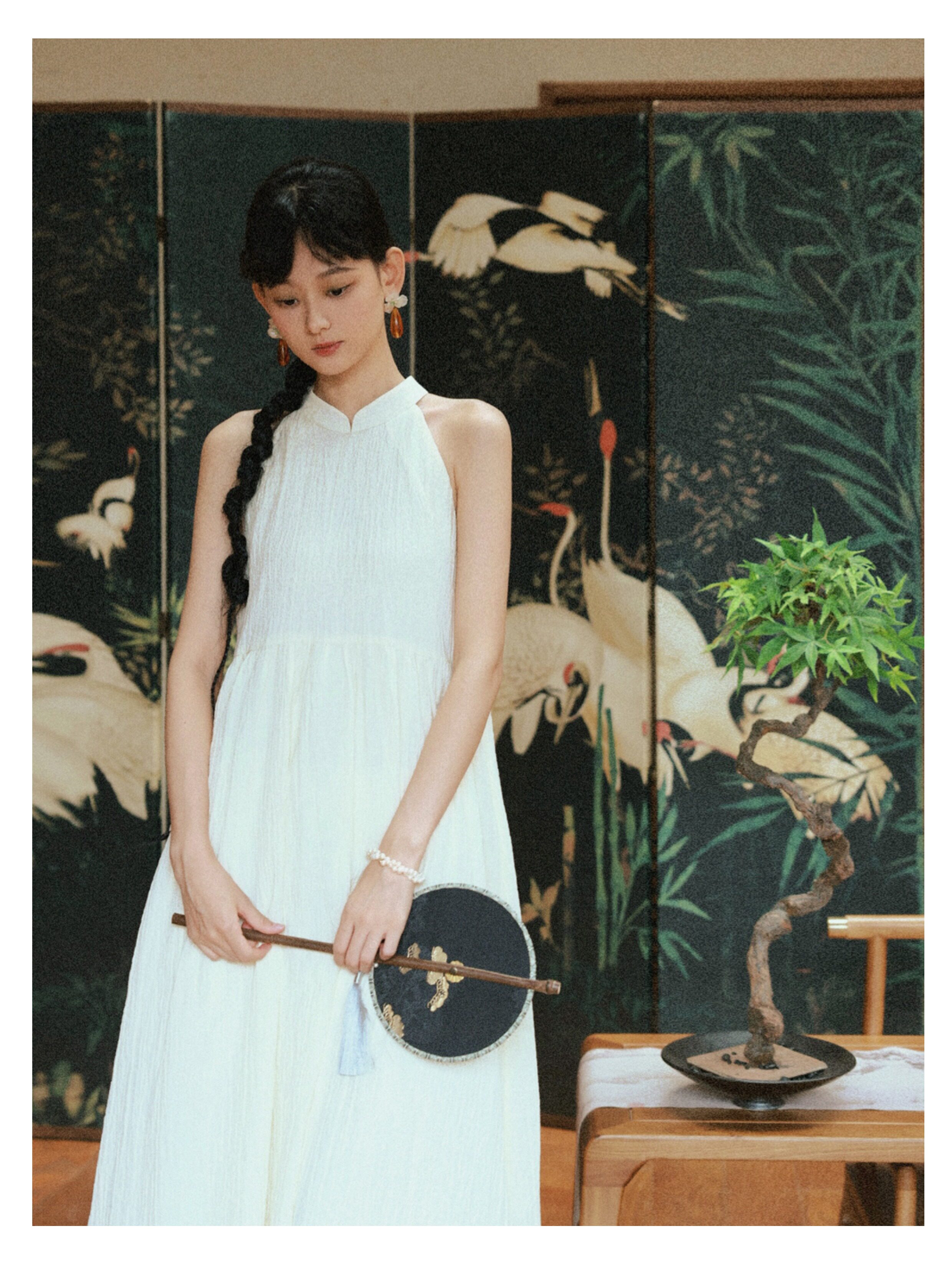 Playful Design 24A/W New Chinese Style Stand Collar Halter Neck Sleeveless Almond Light Yellow Bubble Cotton Loose Dress