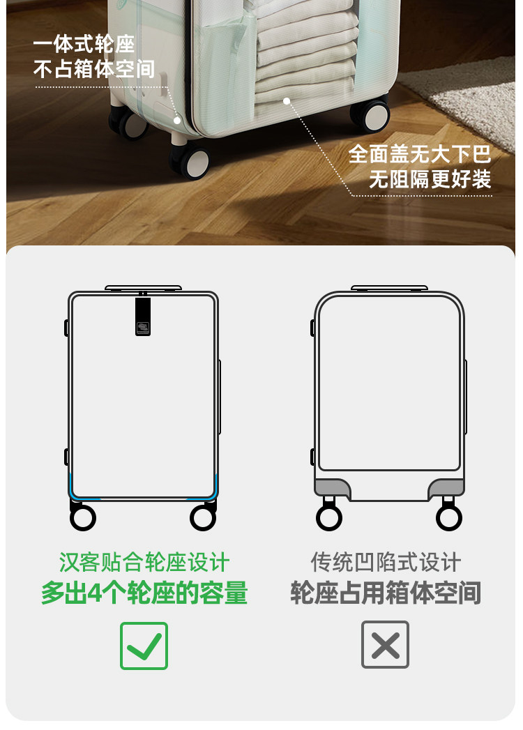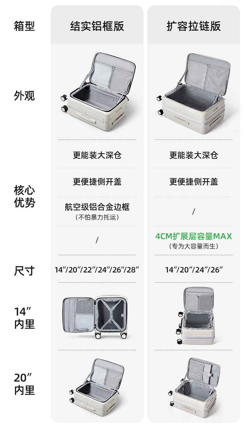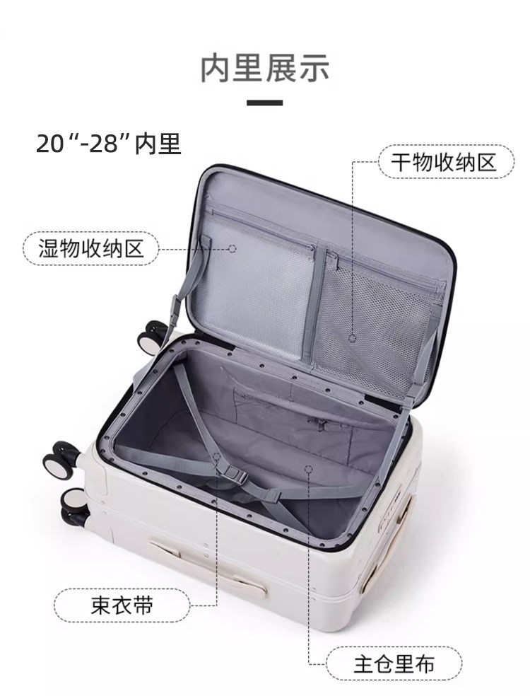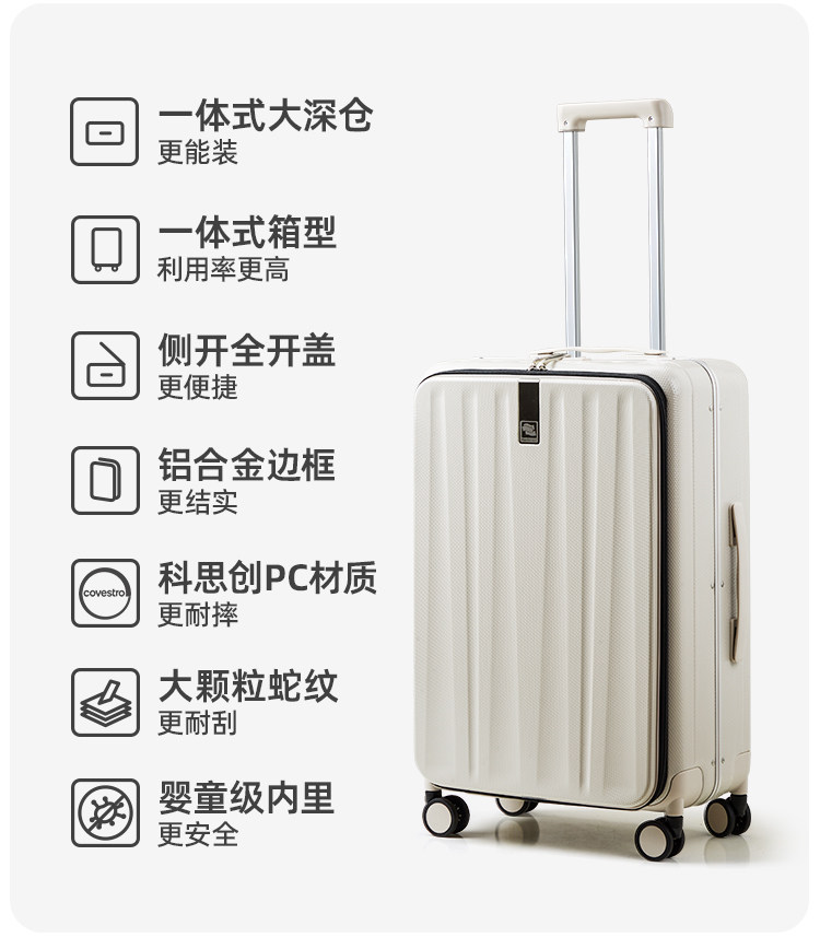 Hanke Aluminum Frame Side-Opening Carry-On Suitcase for Women 20inch Front-Opening Travel Password Lock Large Capacity Trolley Case 24