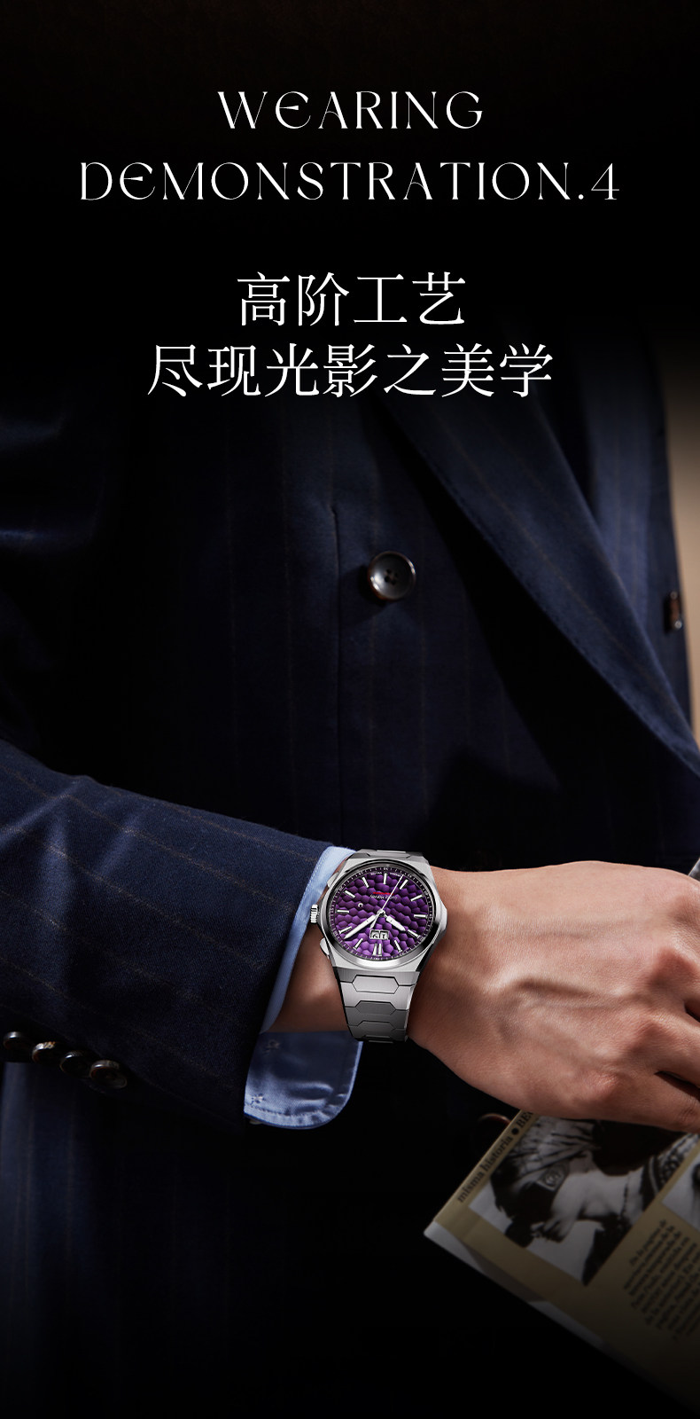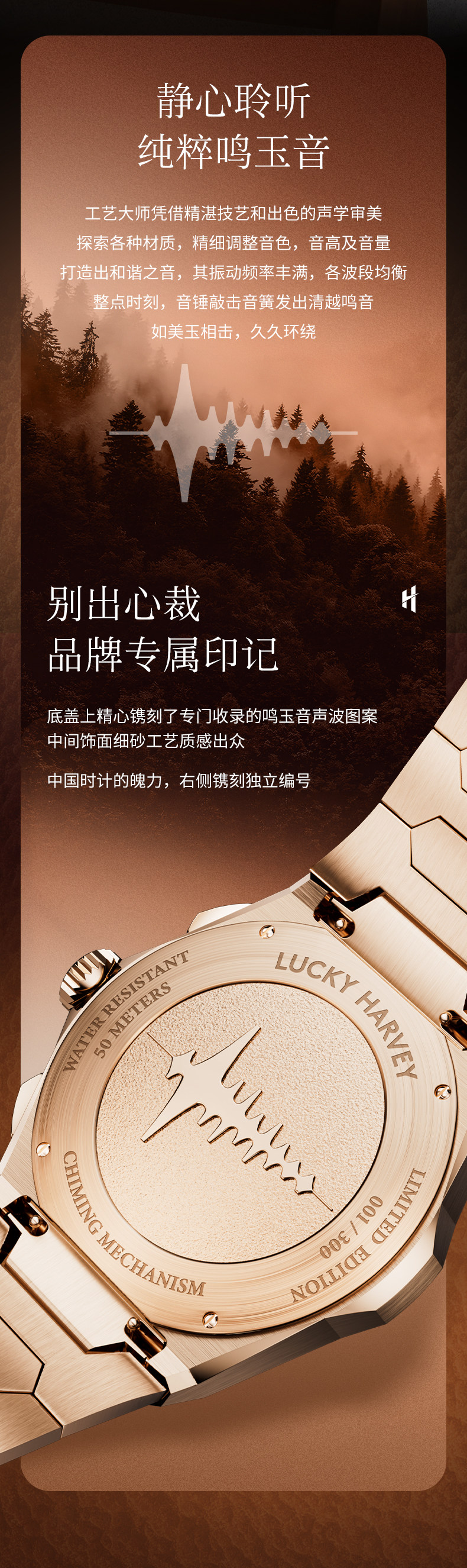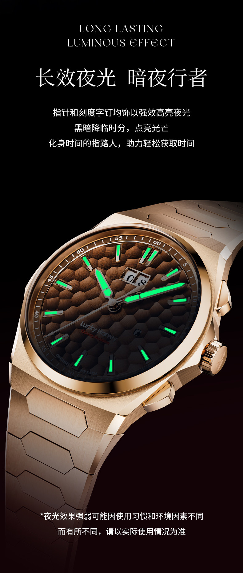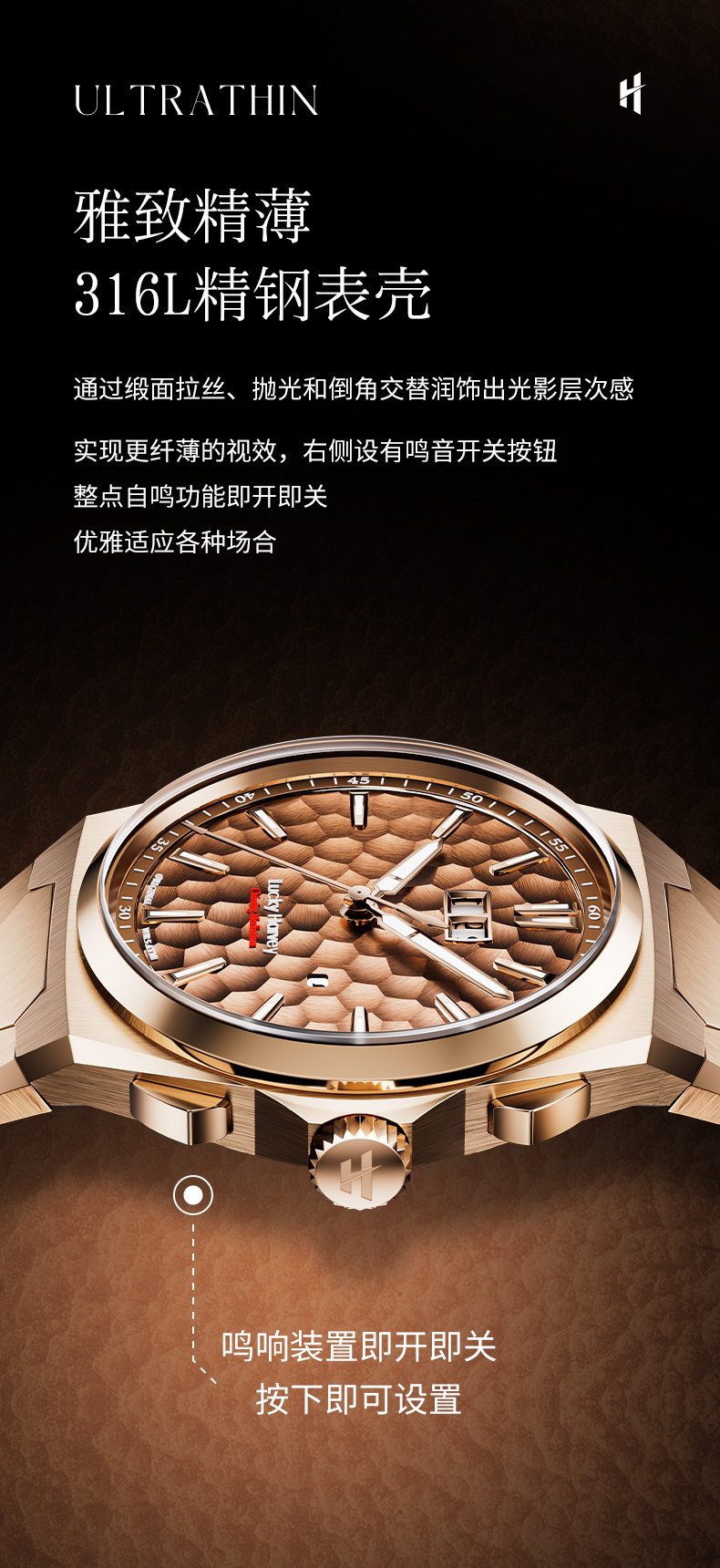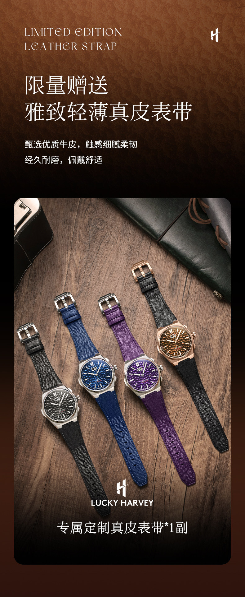 [Limited Edition] Lucky Harvey Self-Winding Series Hammered Texture Men's Watch Mechanical Watch Amber Brown