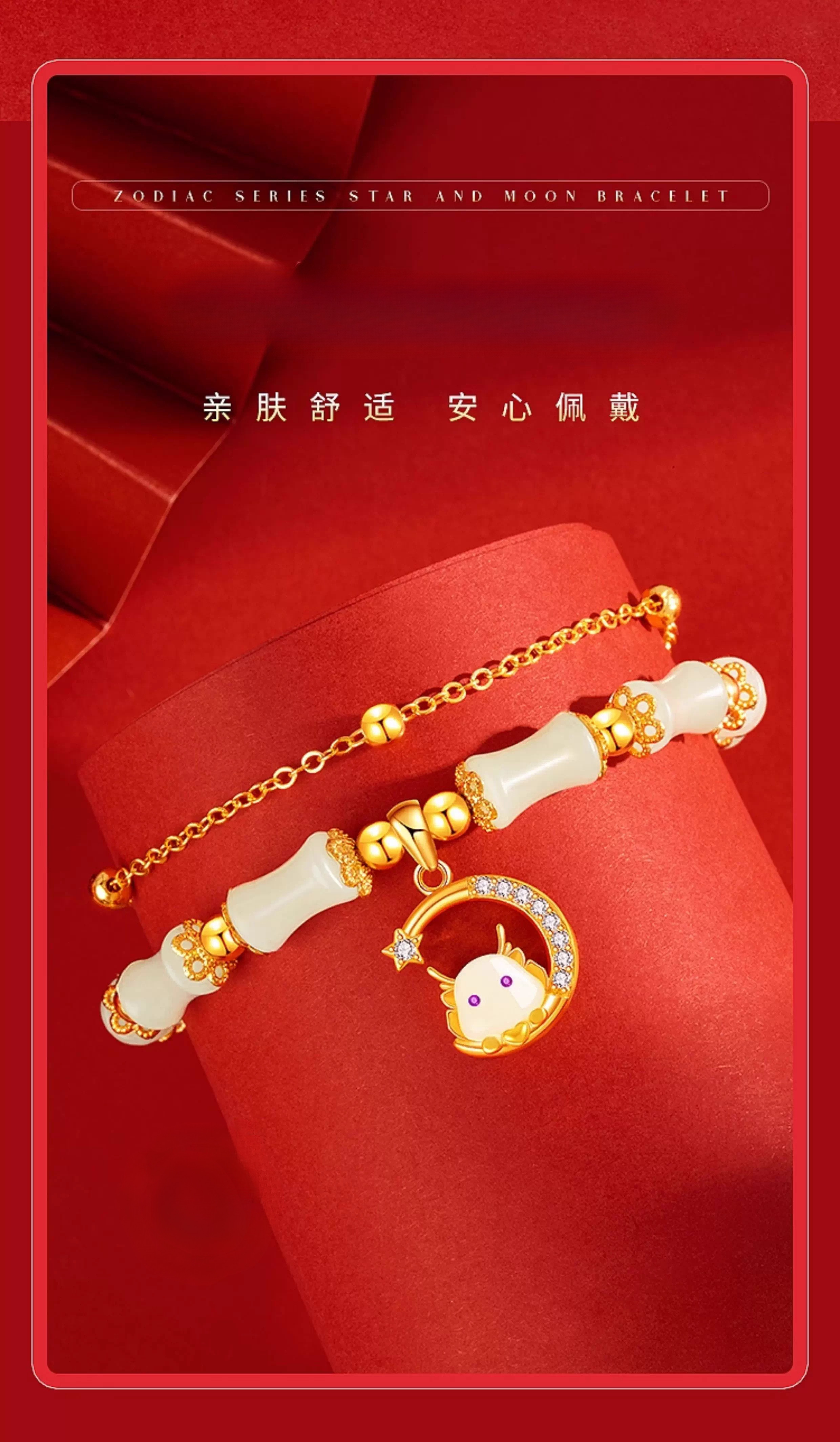 [Valentine's Day Gift] Jisifan Genuine Zodiac Birth Year Hetian Jade Bracelet for Women, Birthday Gift for Girlfriend