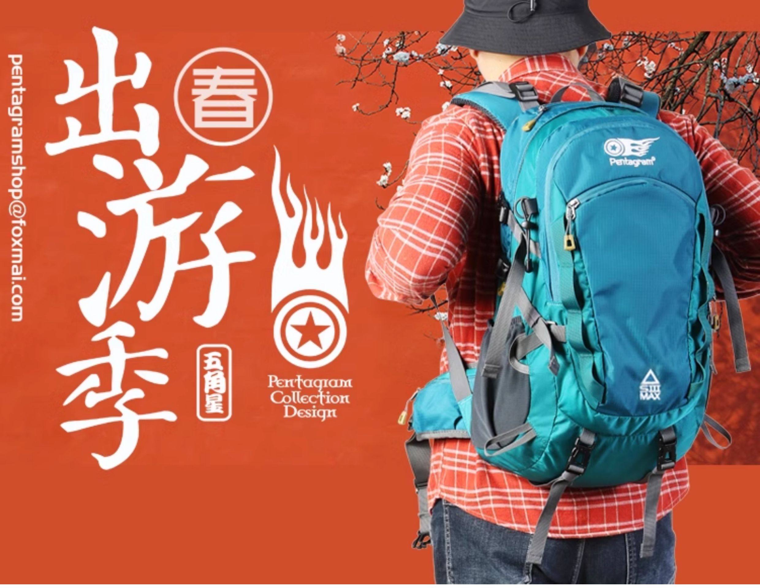Pentagram Five-Pointed Star Hiking Backpack for Men and Women, Outdoor Shoulder Bag, Portable Travel Lightweight Mountaineering Bag