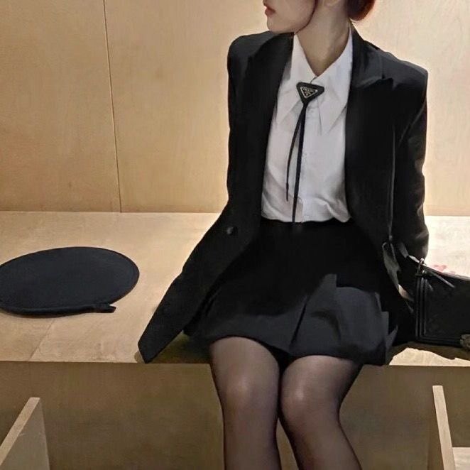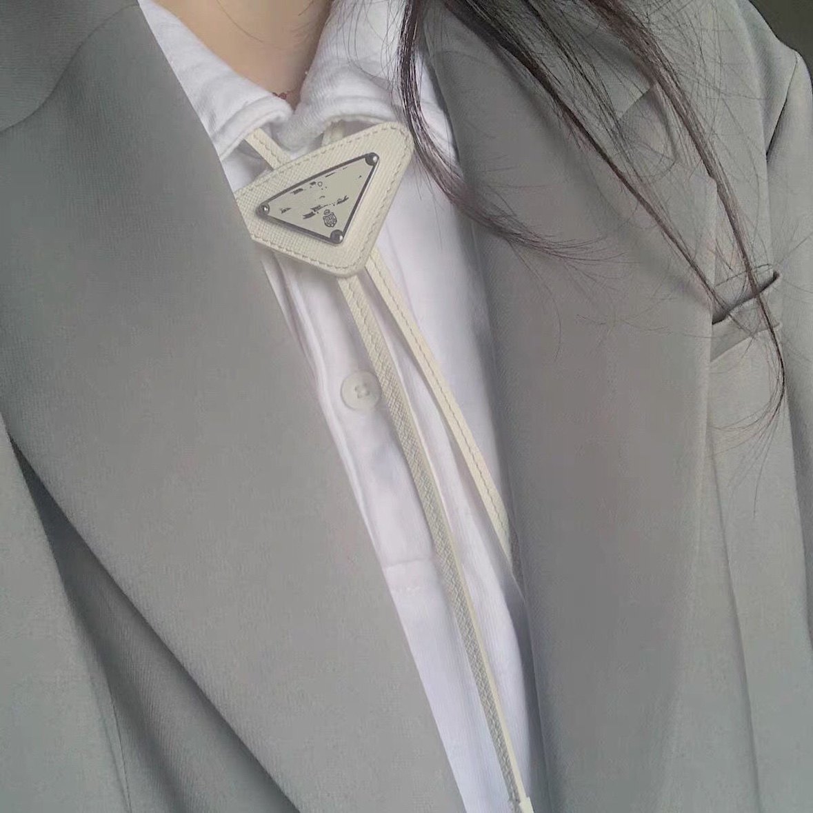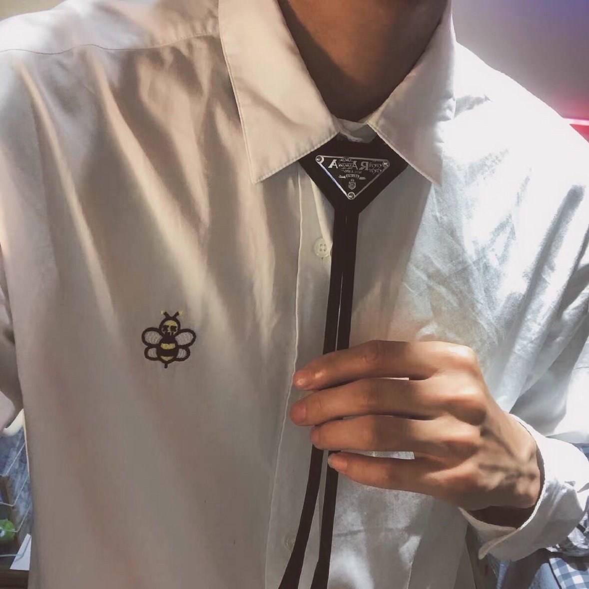 P Brand Black Inverted Triangle Tie Paired with a Shirt Bow Tie