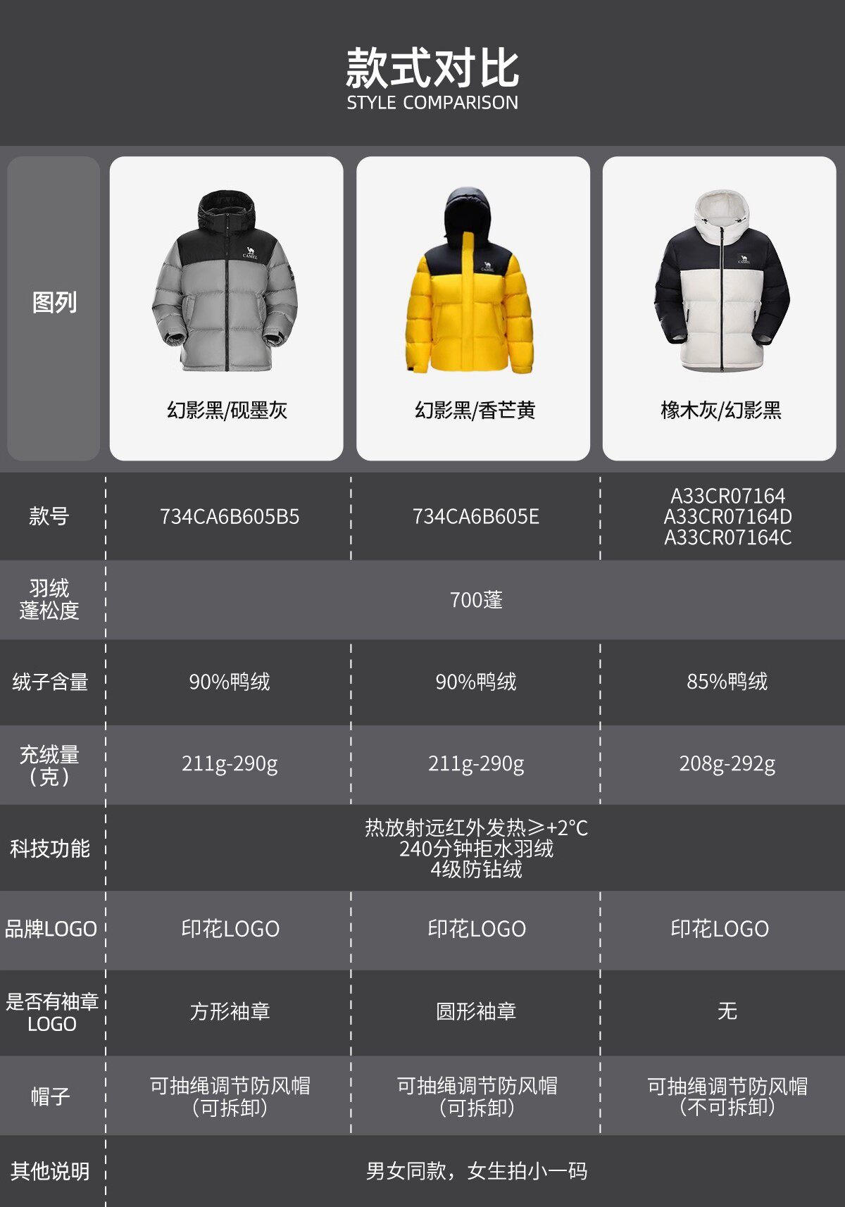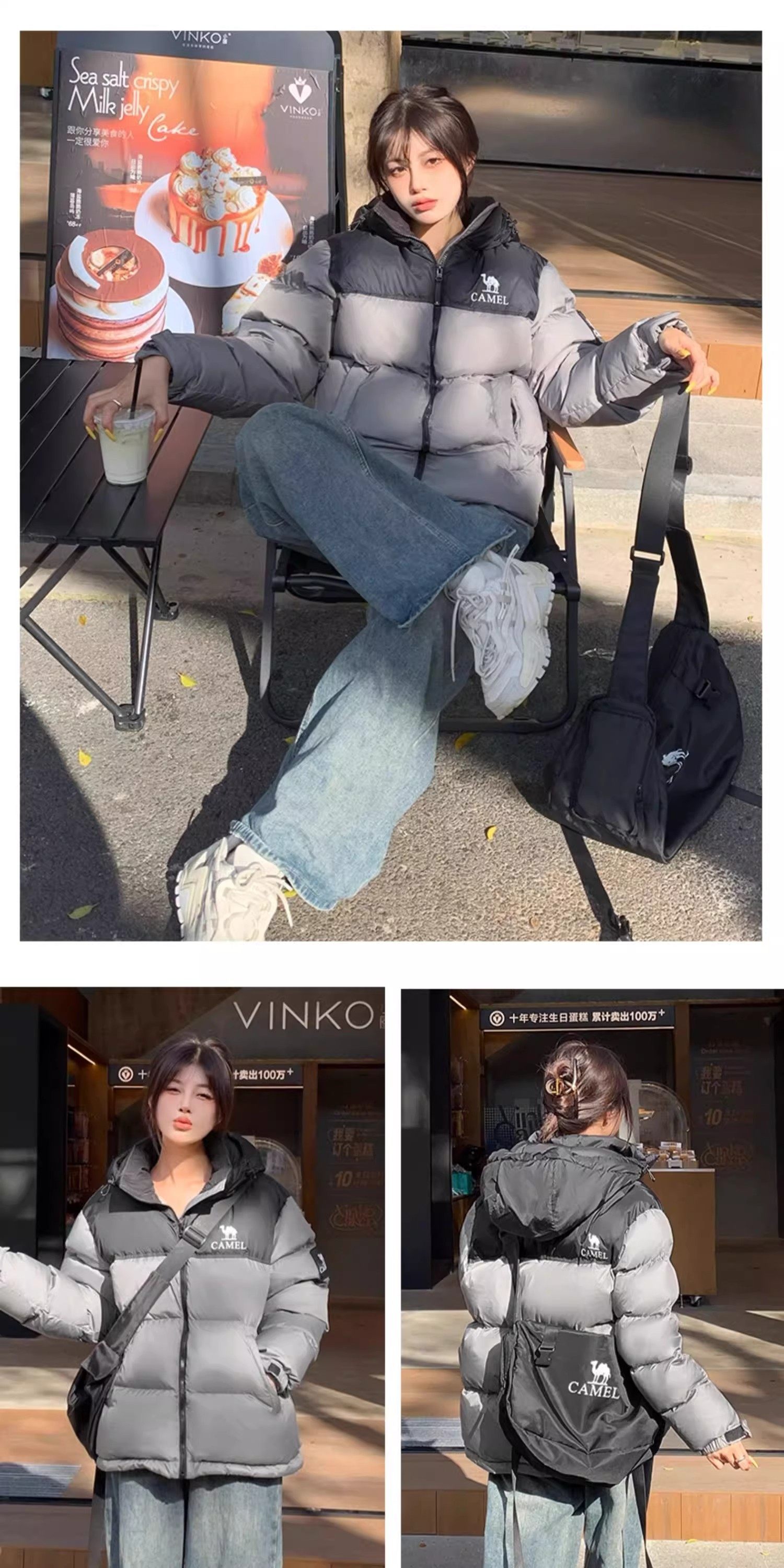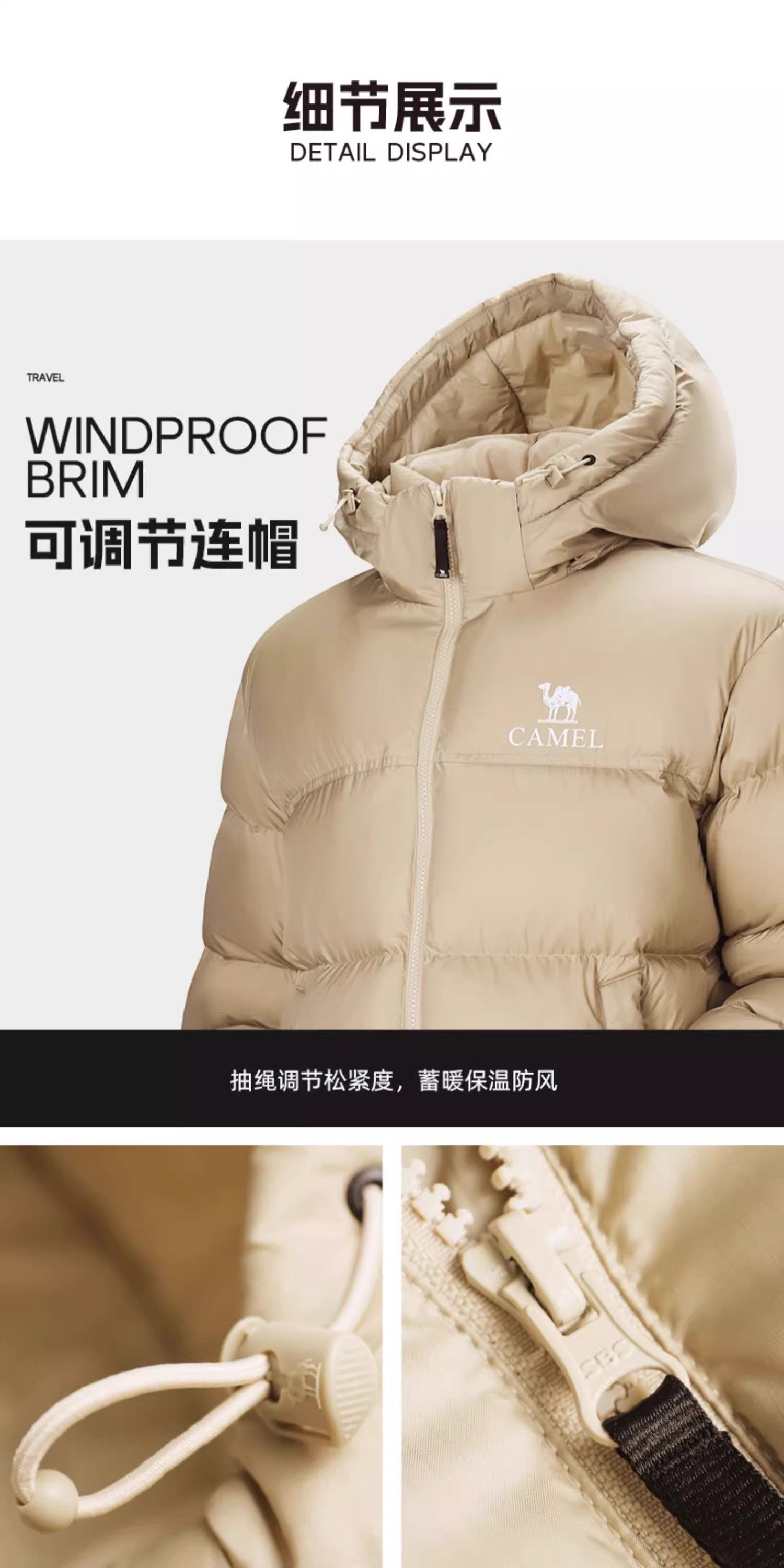 [Same Style as Dilraba Dilmurat] Camel Sports down Jacket Winter Unisex Cold-Proof Hooded down Coat Puffer Jacket