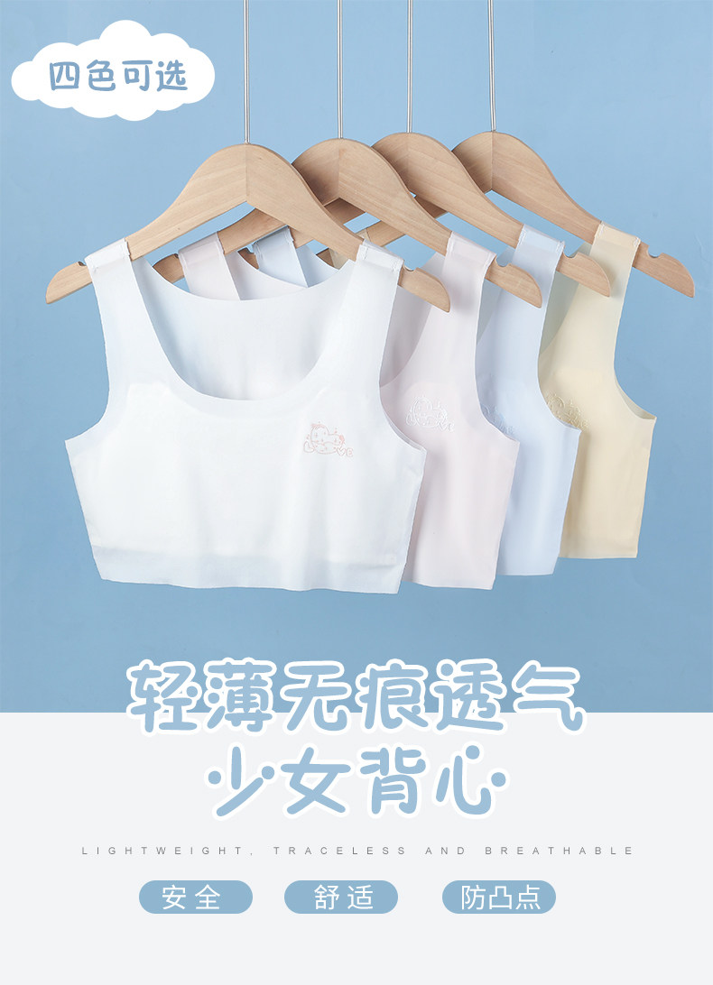 Catman Girls' Underwear for Puberty Development Period, Summer Thin Style, Young Girl Bra, Elementary and Middle School Students' Children's Vest